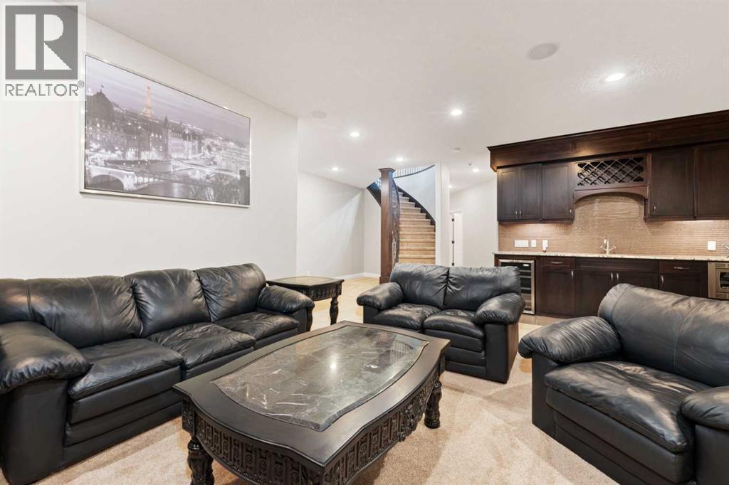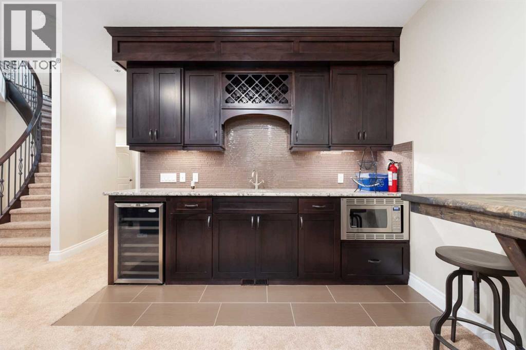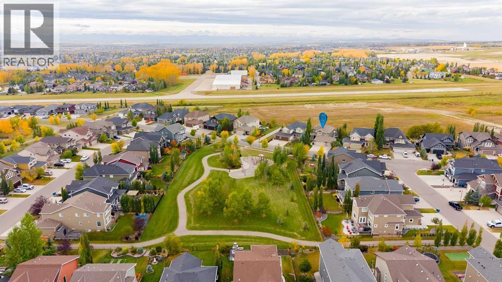 Looking for a home that has the “wow” factor the moment you step inside? This former show home in Okotoks’ highly desirable Air Ranch community delivers exactly that—and so much more. With 5 bedrooms, 3.5 bathrooms, and nearly every upgrade you could ask for, this property backs directly onto greenspace, offering a unique setting you won’t find anywhere else. It’s a rare combination of refined design and everyday comfort, all wrapped up in one incredible package. From the moment you walk in, the grand foyer makes an impression with 18’ ceilings, a sweeping spiral staircase, and natural light that fills the main floor. The layout is built for both entertaining and family living. The kitchen is every chef’s dream—featuring a Wolf gas range, Viking fridge, custom Hammersmith hood fan, and a convenient water filtration/softener system. Rich cabinetry runs floor-to-ceiling, paired with granite counters, a large island, and a walk-in pantry to keep everything organized. Throughout the main level, you’ll notice thoughtful details that set this home apart. A built-in audio system lets you enjoy music in every room. The office, tucked behind distinctive arched French doors, provides a quiet space for work or study. Even the laundry room has been elevated with granite counters to match the home’s cohesive, upscale feel. Upstairs, three generously sized bedrooms and two full bathrooms provide plenty of space for family and guests. The primary suite is the highlight—a true retreat with room for a king-sized bed and private seating area. The 5-piece ensuite feels like a spa with a granite double vanity, corner soaker tub, walk-in tiled shower, and expansive walk-in closet. The fully finished lower level is where this home really shines. With two additional bedrooms, a 3-piece bath featuring a steam shower, and a large family room complete with a cozy gas fireplace and built-in entertainment centre, there’s space for everyone. A granite-topped wet bar with sink, wine fridge, and microwave makes it easy to entertain or kick back for movie nights. You’ll also find a large finished storage area to keep everything neatly tucked away. Car enthusiasts or families with multiple vehicles will appreciate the massive heated garage, designed with both function and space in mind. Outdoors, the lifestyle continues with a screened-in covered sunroom off the kitchen eating nook, leading to a stone patio with a built-in fireplace and additional gas lines ready for your BBQ & sunroom. Surrounded by mature trees, Gemstone lights for year-round curb appeal, and serviced by an underground sprinkler system, the yard is both private and low-maintenance. Central AC adds comfort through the summer months, so you’ll enjoy this home year-round. Air Ranch is one of Okotoks’ most distinctive communities, known for its quiet streets, beautiful homes, and unique aviation history. If you’re after a property that checks every box—style, function, and location—this home has it all. Come take a look for yourself! (id:6769