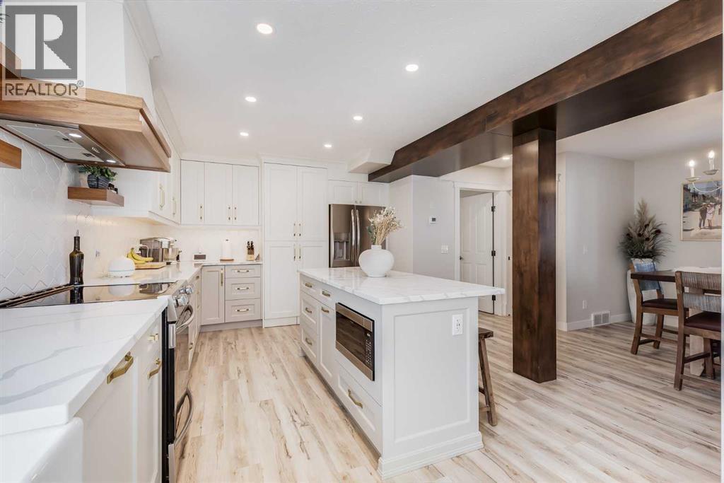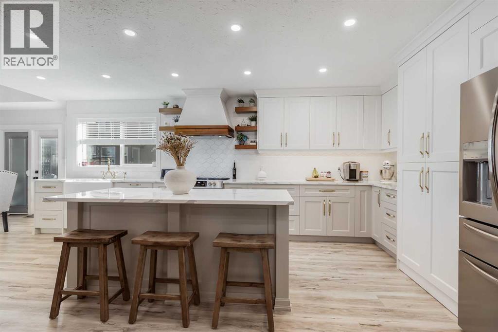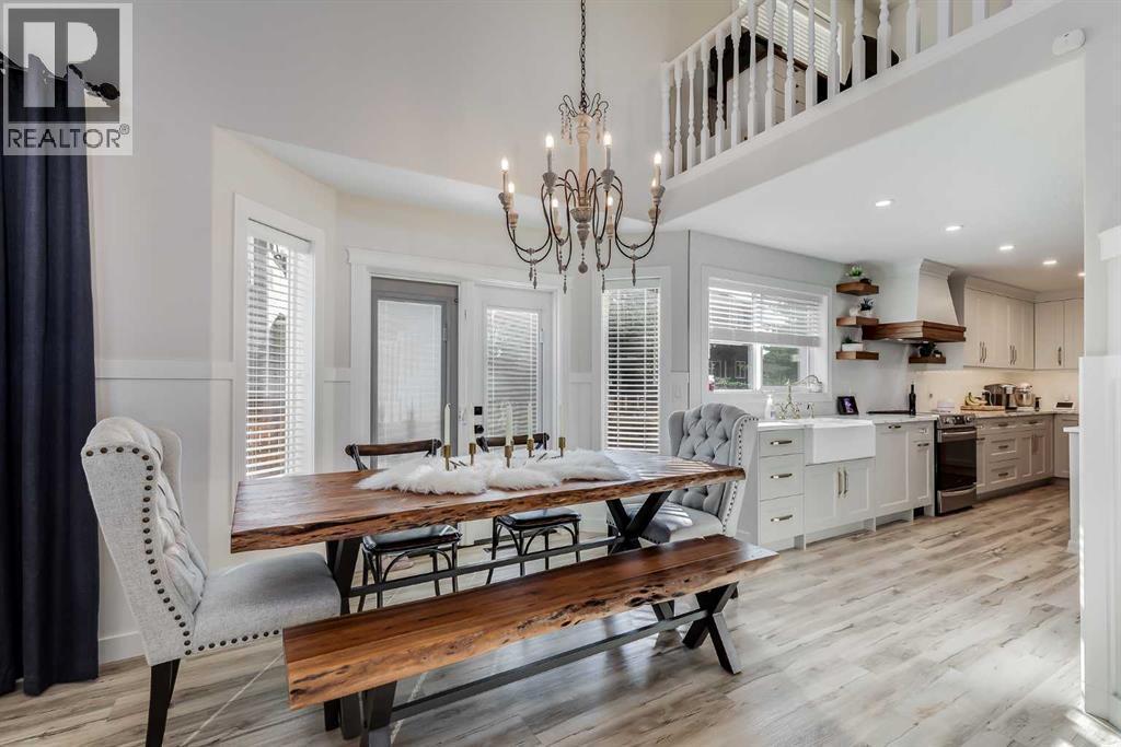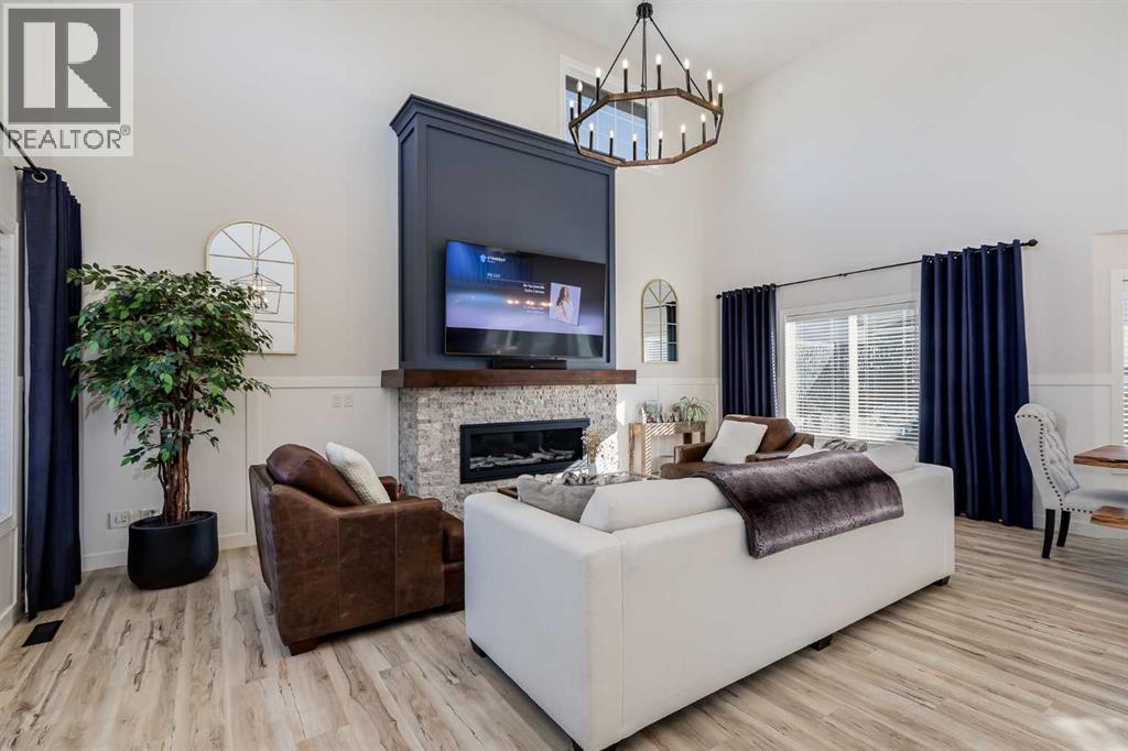 Stunningly renovated with high-end finishes throughout, this gorgeous home sits on an extra-wide pie-shaped lot at the end of a quiet cul-de-sac, just steps from Airdrie’s scenic canals. An expansive front porch sets the tone, creating a welcoming spot for morning coffee or evening relaxation watching the sunset. Inside, soaring ceilings in the living room draw the eye upward, anchored by a striking stone-surround fireplace that invites you to unwind. Extra windows flood the open floor plan with natural light, highlighting the updated flooring, designer details and neutral colour palette. The heart of the home is the outstanding chef’s kitchen, thoughtfully appointed with upgraded stainless steel appliances, full-height cabinetry, stone countertops, modern finishes and a large walk-in pantry. A central island with casual seating and an adjacent breakfast nook with patio doors make everyday living seamless, while a separate dining space with built-in serving bar is ideal for entertaining. Upstairs, a lofted flex area provides the perfect home office or study space. The elegant primary retreat includes a massive custom walk-in closet and a spa-like ensuite with dual sinks, refined finishes and an oversized multi-head shower. Two additional bedrooms and a full bath complete this level. The finished basement extends your living space with a huge recreation room, including areas for media, games and a built-in bar for convenient refreshment and snack refills. Outdoors, the backyard is designed for both play and leisure, featuring a large deck with privacy screen, a built-in firepit for endless summer nights roasting marshmallows and a wide grassy area for kids and pets to play. Parking is plentiful with a double attached insulated side-profile garage, plus an extended driveway with space for an RV or boat. The location is exceptional, offering effortless access to Airdrie’s canals with 6 km of pathways for year-round recreation including kayaking, skating and wildlife w atching. Nearby Chinook Winds Park provides playgrounds, spray park, skate park, sports courts and seasonal concessions, while golf, schools, shopping and every city amenity are close at hand. This home perfectly blends upscale design with family-friendly function in a sought-after neighbourhood surrounded by natural beauty! (id:6769
