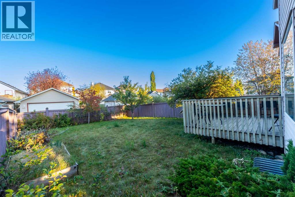 Welcome to this beautifully maintained 3-bedroom home with a fully developed basement, perfectly located on a quiet street in the highly desirable community of Rocky Ridge. The main floor features a spacious foyer and an open-concept layout filled with natural light. The kitchen offers ample cabinetry and counter space, a raised eating bar, and a seamless flow into the dining area—ideal for family meals and entertaining. The inviting living room showcases a cozy corner gas fireplace and large windows overlooking the sunny, fully landscaped backyard. From the dining area, sliding patio doors open directly onto the deck, creating a great indoor-outdoor living experience. Upstairs, you’ll find three generous bedrooms and a 4-piece main bathroom. The lower level is fully finished, offering a versatile family/rec room, a stylish 3-piece bathroom with a custom-tiled shower, a bright and functional laundry room with utility sink, cabinets, and extra counter space for home projects, plus a finished storage area. This home is completely carpet-free—finished with tile, hardwood, and vinyl throughout—making it ideal for those with allergies or pets. Enjoy the private, landscaped yard complete with deck, fence, trees, and shrubs. Available for quick possession, this move-in ready home offers the perfect opportunity to enjoy NW Calgary living at its best. (id:6769