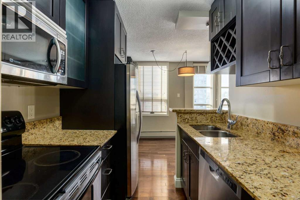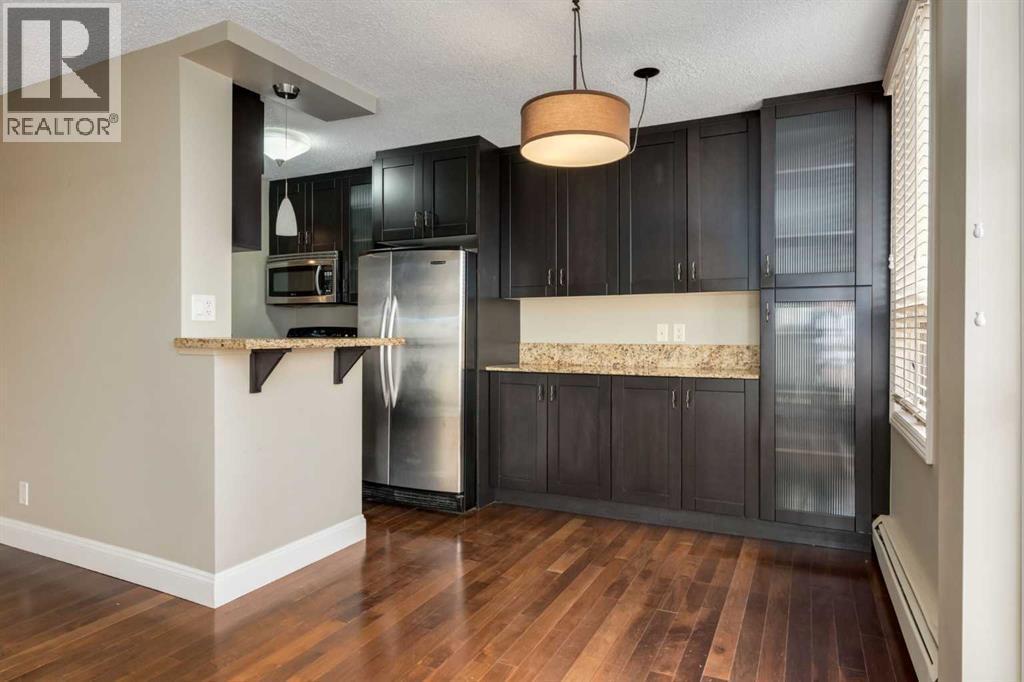 Welcome to Unit 706 at Centro733 – a beautifully updated and spacious executive one-bedroom condo that combines modern finishes with exceptional value in one of Calgary’s most vibrant neighbourhoods. Perched on the 7th floor, this home offers beautiful views over surrounding buildings through stunning floor-to-ceiling windows, filling the space with natural light and opening onto a generous private balcony—perfect for morning coffee or evening wind-downs. The kitchen is sleek and functional, featuring granite countertops, stainless steel appliances, custom cabinetry, all flowing seamlessly into the open dining area. The spacious bedroom easily fits a king-sized bed and has modern touches throughout. You’ll also enjoy the convenience of an in-unit washer/dryer combo. Centro733 is a concrete-built, secure building offering a well-equipped gym, an owner’s lounge, bicycle storage, and your own secure storage locker and assigned parking stall. Located just minutes from the shops and restaurants of 17th Avenue and within easy reach of downtown by foot or bike, this location is hard to beat. This is your opportunity to own a stylish, lock-and-leave lifestyle in the heart of Calgary. (id:6769