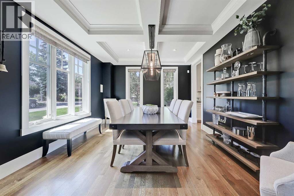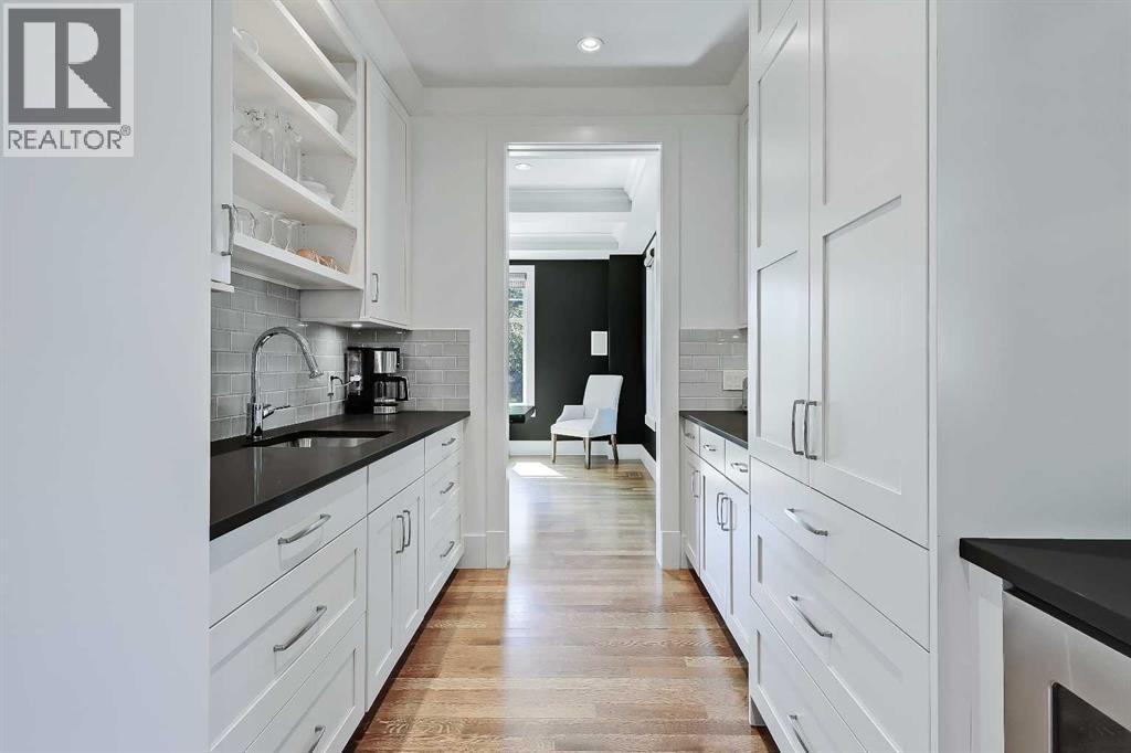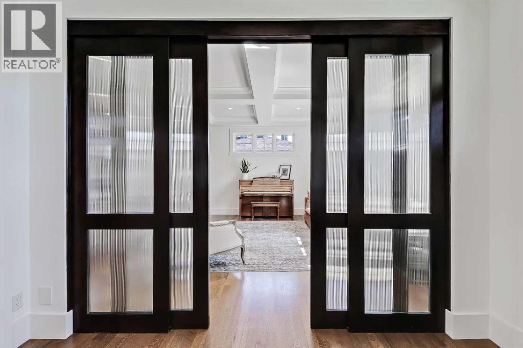 *VISIT MULTIMEDIA LINK FOR FULL DETAILS, INCLUDING IMMERSIVE 3D TOUR & FLOORPLANS!* Exquisitely crafted and set on an expansive 60’ x 100’ lot across from a tranquil greenspace in Glendale, this custom estate home offers more than 5,400 sq ft of fully developed living space with 5 bedrooms, 4.5 bathrooms, serene outdoor escapes, and an oversized, insulated/drywalled double attached rear garage. A rare offering in the inner city, this residence boasts an estimated rebuild cost exceeding $3M. The timeless façade is composed of acrylic stucco, wood shake, and cultured stone, enhanced by pitched rooflines, landscaped grounds, and exposed aggregate walks. Inside, a stained-glass front door opens to a bright foyer with site-finished hardwood, crown mouldings, and custom millwork. A front office with coffered ceilings and built-ins overlooks the greenspace, while the formal dining room boasts coffered ceilings, designer lighting, and a seamless connection to the butler’s pantry with dual beverage fridges, quartz counters, prep sink, and extensive cabinetry. The gorgeous chef’s kitchen showcases custom cabinetry with organizers, a marble-topped island, premium Thermador appliances (fridge/freezer, dual wall ovens, gas cooktop, hood fan), and an Asko dishwasher. A walk-in pantry provides extra storage, while the casual dining nook with French doors opens to the patio, allowing for easy indoor-outdoor living. The living room features a panelled wall, quartz-framed gas fireplace, oversized windows, and built-in speakers. A stylish powder room and a mudroom with built-ins complete the main level. Upstairs, four bedrooms (a rarity in the inner-city) include a front bedroom with vaulted ceiling, walk-in closet, and ensuite, plus two bedrooms sharing a Jack & Jill bath with dual sinks, marble counters, and a tiled tub/shower. The primary retreat offers vaulted ceilings, spa-inspired ensuite with heated herringbone floors, freestanding tub, steam shower, and an enormous walk-in clo set with custom built-ins. A vaulted reading nook and a well-equipped laundry room add convenience. The basement is designed for entertaining with 9’ ceilings, in-floor heating, a rec room boasting a projector and screen, and a kids’ play nook. A gym/sports room with puck board walls doubles as a 6th bedroom, while a guest bedroom and full bath complete the level. Outdoors, two aggregate patios, cedar soffit lighting, outdoor speakers, a BBQ gas line, and a zoned irrigation system enhance the fully fenced yard. Additional features include dual high-efficiency furnaces, A/C, on-demand boiler with hot water tank, Sonos system, and central vacuum. Set in Glendale, one of Calgary’s most desirable communities, this home offers estate-level living with family-friendly charm, excellent schools, parks, and quick access to downtown and major roadways. Schedule your private showing today! (id:6769