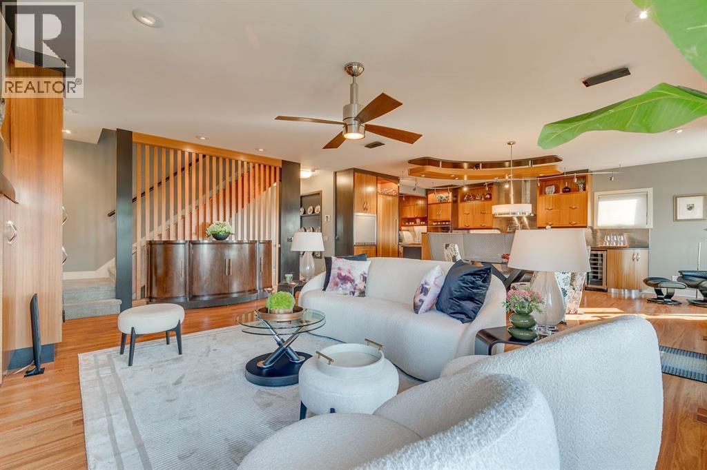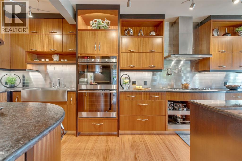 Truly one-of-a-kind! This luxurious Bridgeland masterpiece offers over 4,000 sq.ft. of custom-finished living space and a rare opportunity that sets it apart from anything else on the market. Not only does this home feature a FULLY LEGAL SUITE—it’s also registered for AIRBNB and currently generating impressive annual returns, making it both a dream residence and an incredible investment. The ADDITIONAL PRIVATE STUDIO under the garage offers even more flexibility, making it the perfect space for an at-home business such as a yoga studio, design studio, or creative workspace. From the moment you arrive, the curb appeal and architectural detail will leave a lasting impression. Inside, no expense has been spared—white mahogany floors, German veneer slate, granite with a leather finish, and rich mahogany accents showcase craftsmanship at its finest. The chef-inspired kitchen offers custom mahogany cabinetry, Fisher & Paykel appliances, stainless steel warming drawers, and separate cooking stations designed for both function and elegance.The master retreat features its own private balcony with million-dollar views, while every level of the home offers sweeping panoramas of downtown Calgary and the mountains. For those working from home, step across the beautifully landscaped yard into your private studio, complete with a stunning work area, kitchenette, office, and full bath. The lower-level suite is a true highlight—complete with a bedroom, kitchen, laundry, and private terrace—ideal for Airbnb income, extended family, or a mix of both. The backyard is a private oasis, featuring a gorgeous waterfall, full irrigation system for ease, and a spacious deck designed for entertaining—truly a space to relax and unwind—paired with a rare triple-car garage. All this, just steps from the vibrant shops, restaurants, and amenities of Bridgeland. This is more than a home—it’s a lifestyle, an income generator, and a retreat all in one. (id:6769