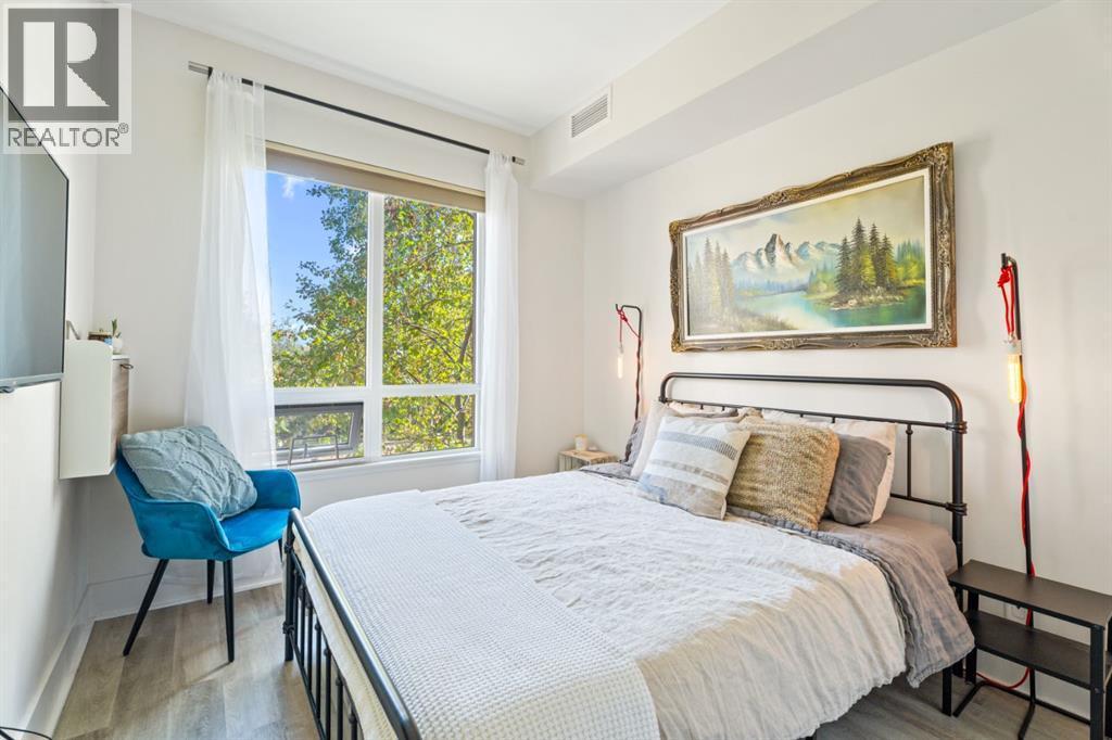 Welcome to this bright and beautifully kept 2-bed, 2-bath plus den condo offering peaceful views of the landscaped courtyard and community gardens and yes, with AC for those hot summer days. Step onto your private covered balcony to enjoy morning coffee surrounded by mature greenery—an ideal retreat from city life.The open-concept layout features a spacious living/dining area filled with natural light, a modern kitchen with stainless steel appliances and stone countertops, and a convenient breakfast bar for casual dining. The primary suite includes a walk-in closet and a full ensuite, while the second bedroom and 4-piece bath provide flexible space for guests or a home office.Additional highlights include in-suite laundry, titled underground parking, and secure storage. Building amenities feature a well-equipped fitness room, resident lounge, and beautifully maintained common areas.Situated steps from transit, shops, restaurants, and scenic walking paths, this home combines tranquility with unbeatable convenience. Whether you’re a first-time buyer, downsizer, or investor, this garden-view residence offers exceptional value and comfort. (id:6769
