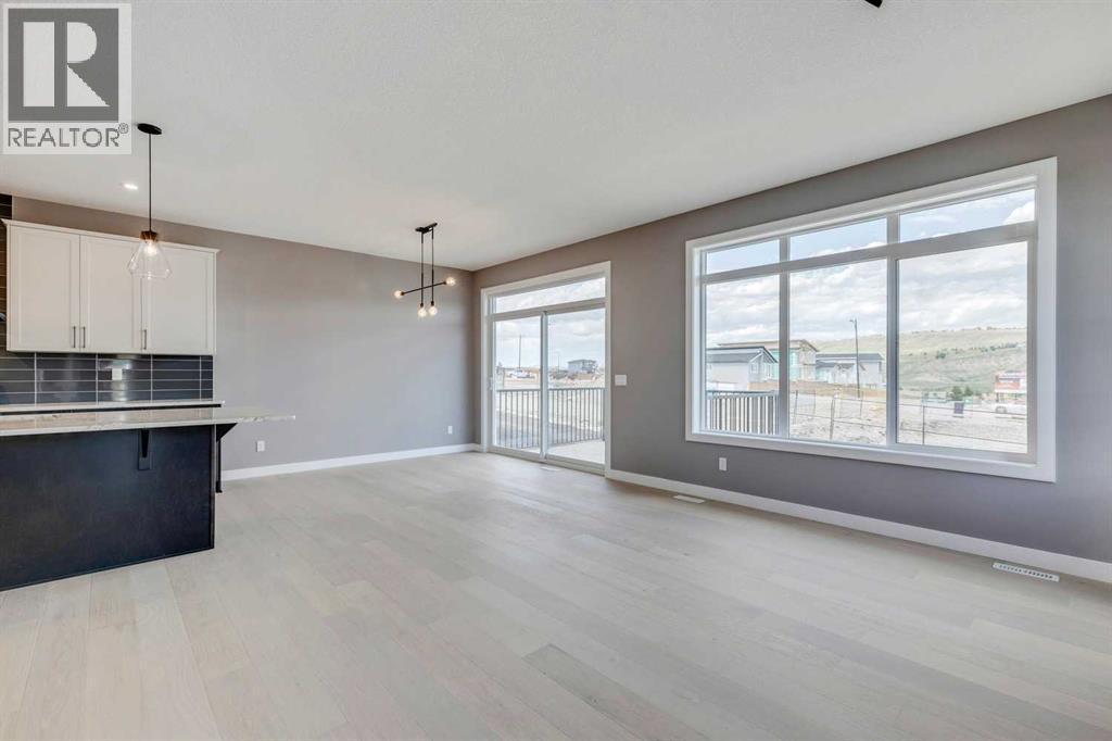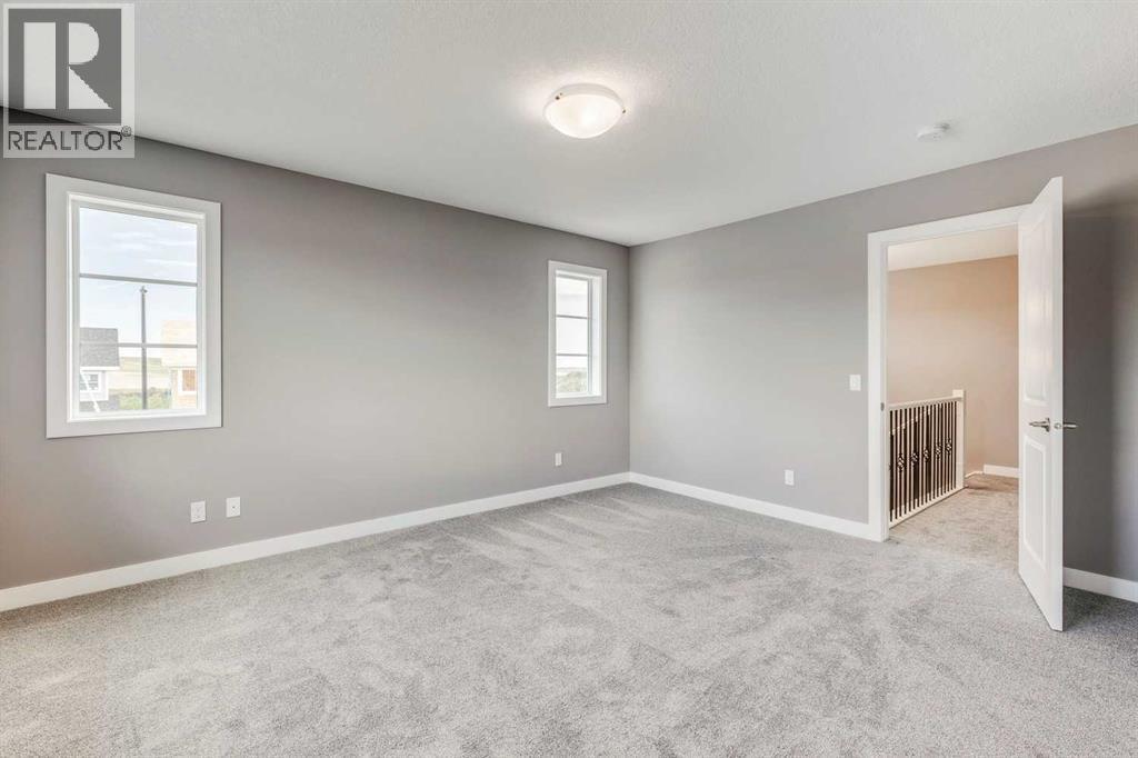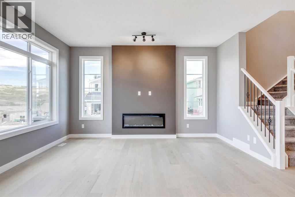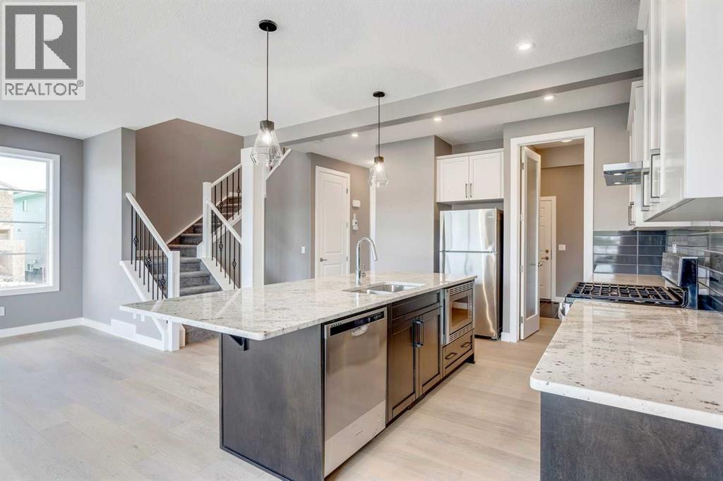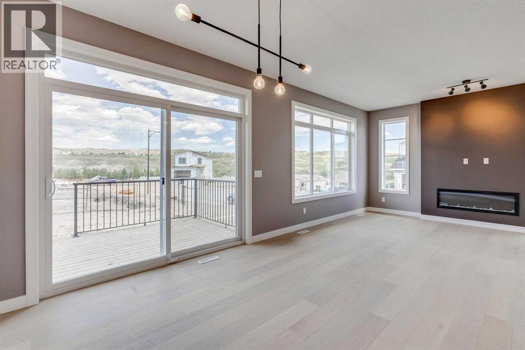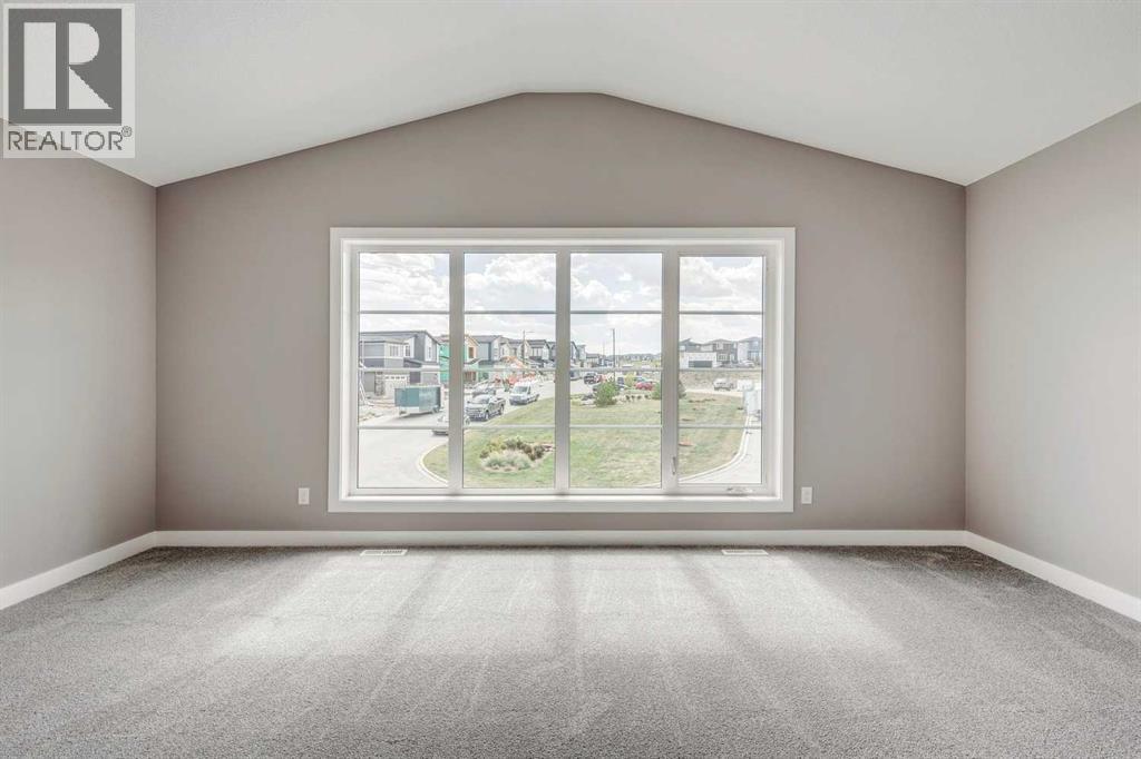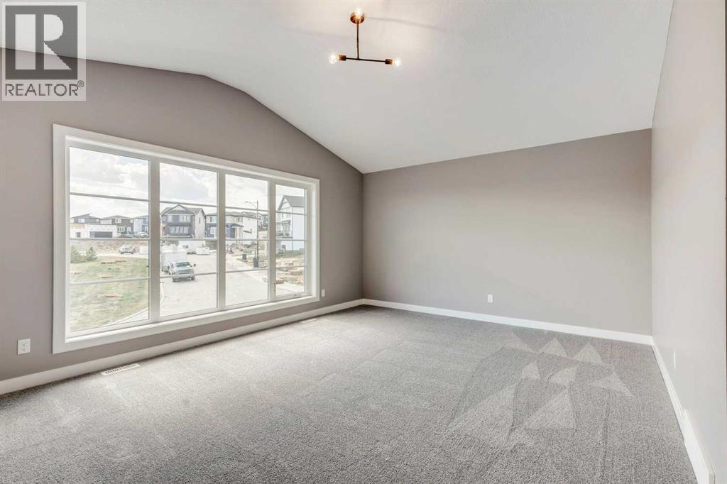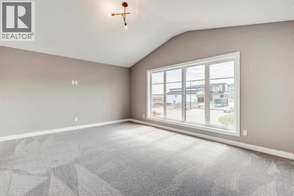 Please enjoy a virtual tour of this immaculate and beautifully designed home, ideally situated in one of Cochrane’s most convenient and sought-after neighbourhoods! Located on a large corner lot directly across from central Reindeer Park, this spacious 3-bedroom, 2.5-bath home offers over 2,000 sq ft of stylish and comfortable living space—perfect for larger or upscaling families. From the moment you step through the grand 8' front door, you'll be greeted by soaring 9' ceilings, oversized windows, and gleaming hardwood floors that flow throughout the foyer, hallway, great room, kitchen, and nook—creating a warm and elegant atmosphere. The open floor plan enhances the sense of space and flow, ideal for both everyday living and entertaining. The stunning kitchen features dual-colour quartz countertops and cabinetry, a tiled walk-through pantry connecting to the mudroom, stainless steel appliances including a self-cleaning gas range, a built-in microwave, and a dishwasher. A spacious great room anchored by a sleek Napoleon Alluravision fireplace adds a cozy yet modern touch. Upstairs, the generous master bedroom includes a luxurious 5-piece ensuite with dual quartz vanities, undermounted sinks, a deep soaker tub beneath a bright window, and an oversized tiled shower. A large, separate walk-in closet provides ample space. The upper floor also boasts a forward-facing bonus room with a dramatic two-sided vaulted ceiling, two additional good-sized bedrooms with double-door closets, a main bath with quartz countertops, and a bright upper-floor laundry room with linen storage and tiled flooring. This home sits on a quiet street in a family-friendly area, less than 5 minutes from elementary, junior high, and high schools, and under 8 minutes to grocery stores, parks, coffee shops, and restaurants. With easy access to downtown Calgary (just 40 minutes away) and the Tuscany LRT station (only 25 minutes away), convenience is at your doorstep. Beautiful, elegant, and functional—t his home has it all. Book your private showing today! (id:6769
