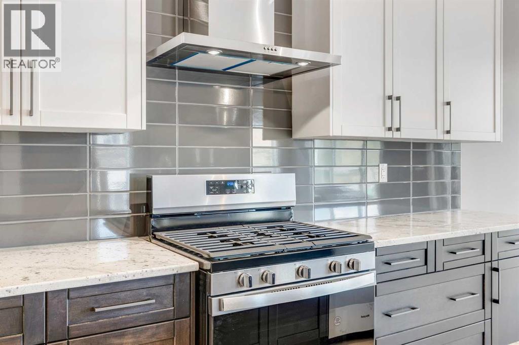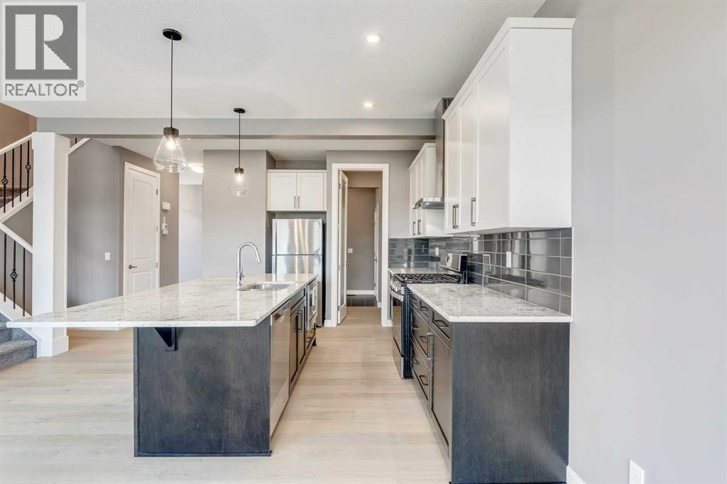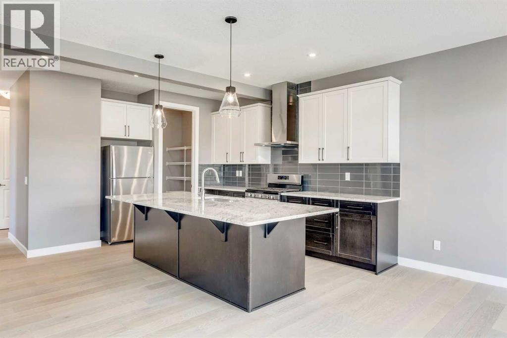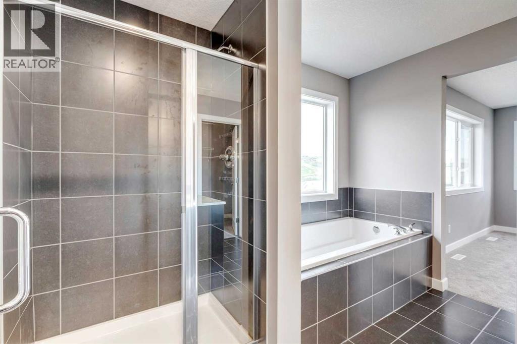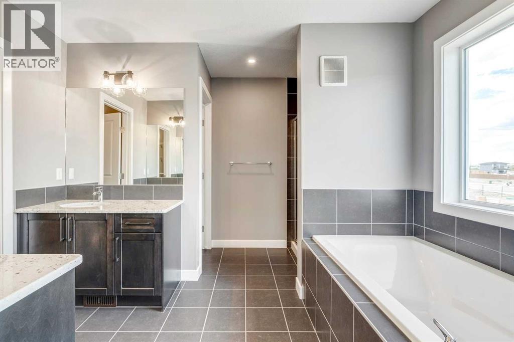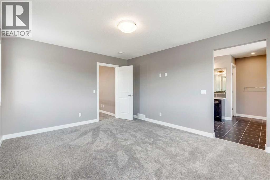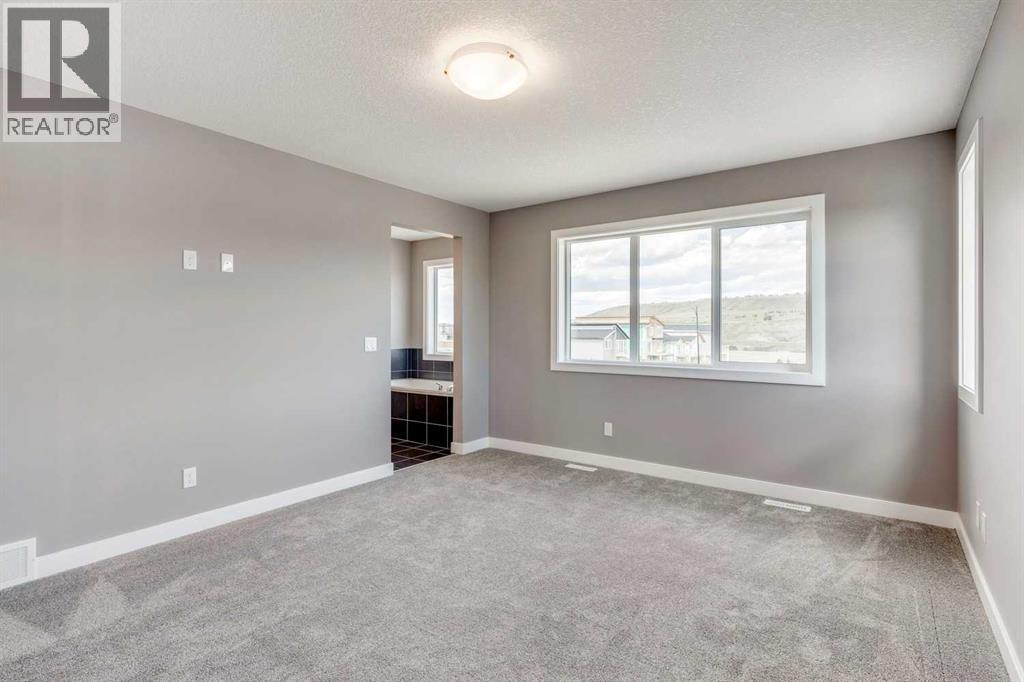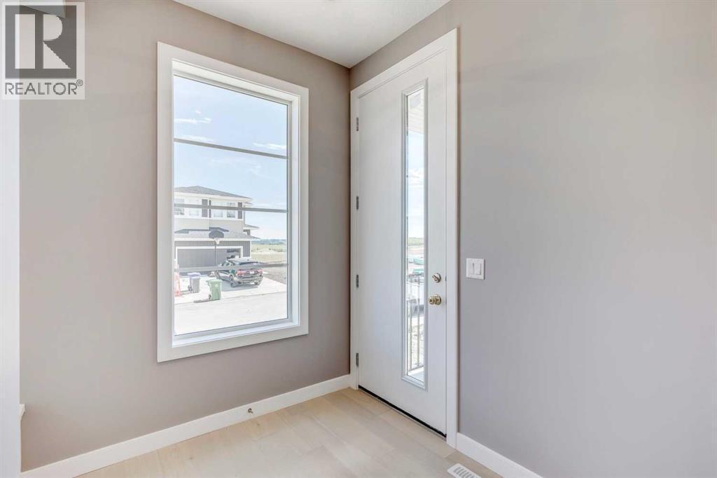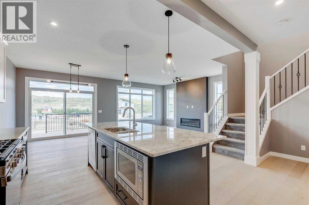 Please enjoy a virtual tour of this immaculate and beautifully designed home, ideally situated in one of Cochrane’s most convenient and sought-after neighbourhoods! Located on a large corner lot directly across from central Reindeer Park, this spacious 3-bedroom, 2.5-bath home offers over 2,000 sq ft of stylish and comfortable living space—perfect for larger or upscaling families. From the moment you step through the grand 8' front door, you'll be greeted by soaring 9' ceilings, oversized windows, and gleaming hardwood floors that flow throughout the foyer, hallway, great room, kitchen, and nook—creating a warm and elegant atmosphere. The open floor plan enhances the sense of space and flow, ideal for both everyday living and entertaining. The stunning kitchen features dual-colour quartz countertops and cabinetry, a tiled walk-through pantry connecting to the mudroom, stainless steel appliances including a self-cleaning gas range, a built-in microwave, and a dishwasher. A spacious great room anchored by a sleek Napoleon Alluravision fireplace adds a cozy yet modern touch. Upstairs, the generous master bedroom includes a luxurious 5-piece ensuite with dual quartz vanities, undermounted sinks, a deep soaker tub beneath a bright window, and an oversized tiled shower. A large, separate walk-in closet provides ample space. The upper floor also boasts a forward-facing bonus room with a dramatic two-sided vaulted ceiling, two additional good-sized bedrooms with double-door closets, a main bath with quartz countertops, and a bright upper-floor laundry room with linen storage and tiled flooring. This home sits on a quiet street in a family-friendly area, less than 5 minutes from elementary, junior high, and high schools, and under 8 minutes to grocery stores, parks, coffee shops, and restaurants. With easy access to downtown Calgary (just 40 minutes away) and the Tuscany LRT station (only 25 minutes away), convenience is at your doorstep. Beautiful, elegant, and functional—t his home has it all. Book your private showing today! (id:6769