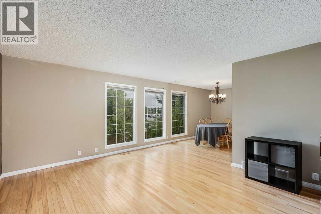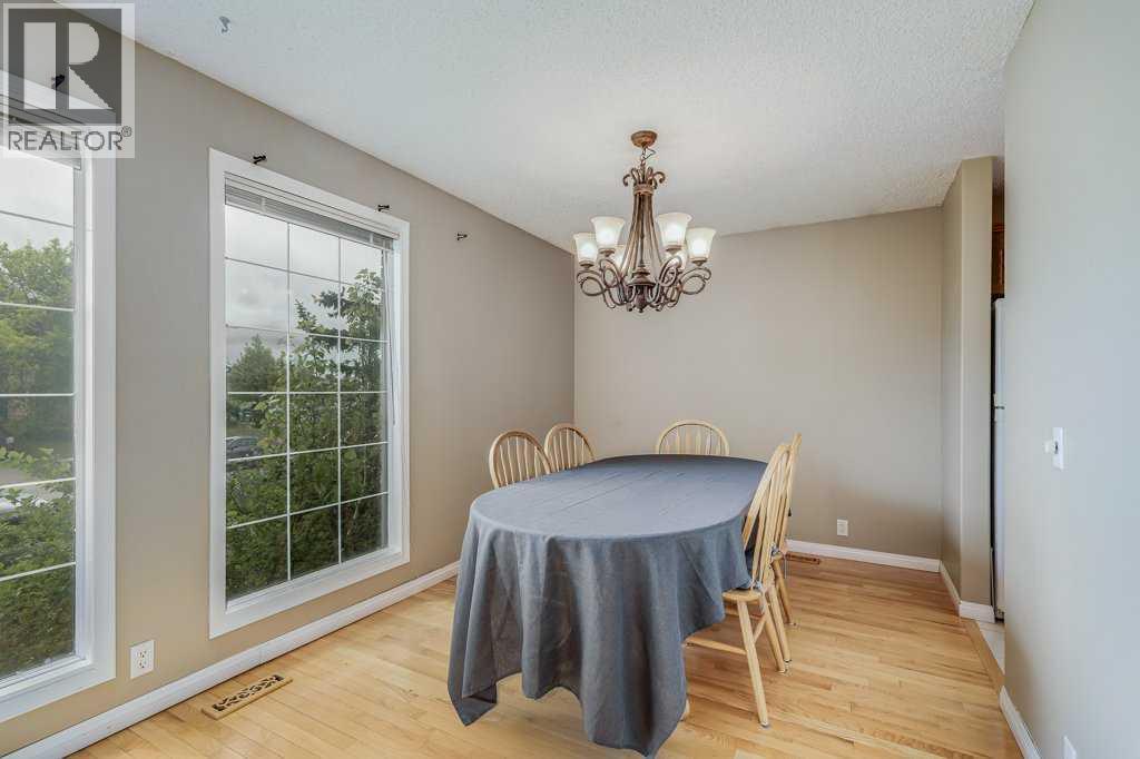 Incredibly located just 2 doors from Nose Creek Park encouraging tranquil walks on the expansive pathway that winds alongside the creek. Want something more urban? This unsurpassable location has the best of both worlds! Walk out your front door in the other direction and bam you’re on Main Street with endless shops, restaurants, services and amenities. Then come home to a private, extremely quiet sanctuary with a heated garage! This charming home is well maintained with many upgrades already completed. The roof shingles, vinyl siding, eaves troughs and downspouts on both the house and garage were replaced in 2015 plus extra insulation was added. New natural gas hot water heater (2018), Telus internet Fibre Drop installed (2019), 2 bathroom fans replaced (2019/2021) and the upper level carpet was replaced with durable laminate in 2 bedrooms and the hallway (2023). Natural light streams into the living and dining rooms from extra south-facing windows illuminating the hardwood floors and creating a bright and airy gathering and entertaining space. The kitchen is well laid out with a plethora of cabinets and drawers plus corner windows for seemingly infinite sunlight. Retreat at the end of the day to the upper level primary bedroom with its own private ensuite, no need to share with the kids! Both additional bedrooms are spacious with easy access to the 4-piece bathroom. Put your feet up and relax in front of the floor-to-ceiling brick encased fireplace in the family room. A separate flex area is great for a home office or study space. French doors lead to the backyard oasis promoting a seamless indoor/outdoor lifestyle. And there is still a fully finished basement with a huge rec room and included billiard table and shuffleboard for friendly games nights with friends and family. Enjoy casual barbeques and time spent unwinding in the backyard privately nestled behind the HEATED double detached garage with an extra long drive for loads of additional parking or an RV. St eps away from the nearly completed Multi-Use and Library Facility. Don’t miss your chance at this solid home in an unbeatable location! (id:6769