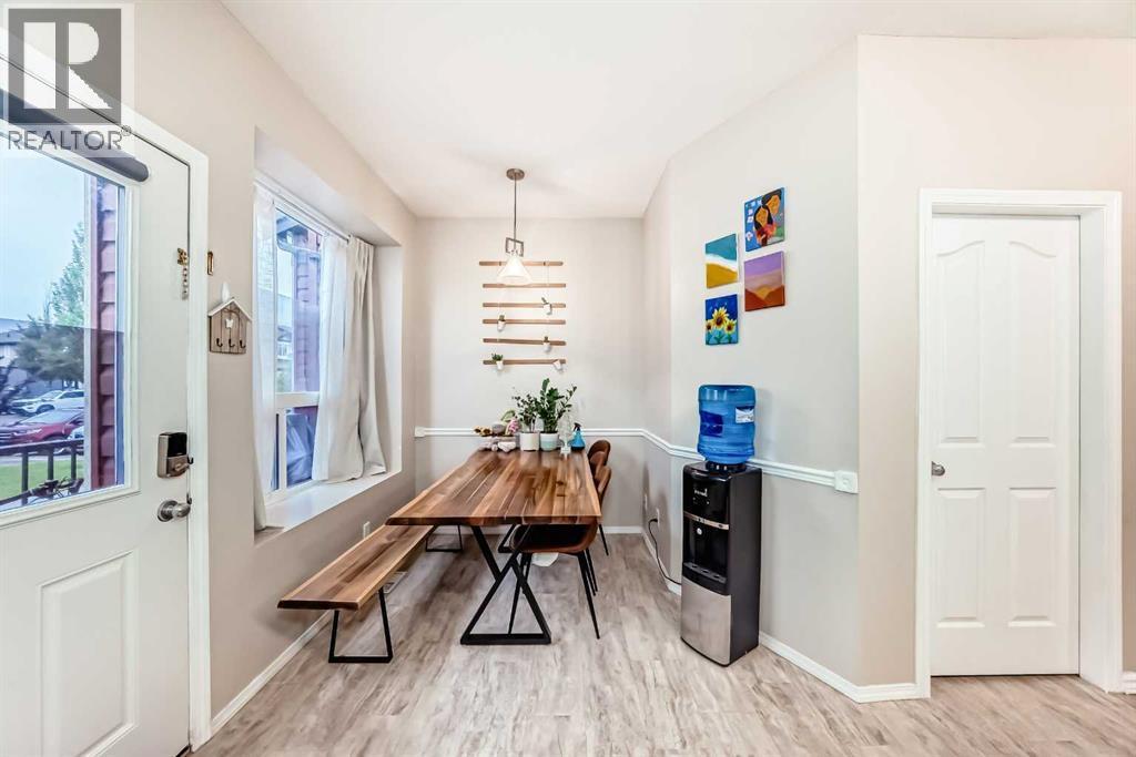 Welcome to this charming Luxstone Park Place Green townhome, where a quaint ranch-inspired exterior with a covered front porch opens to a beautifully bright and open main floor featuring nine-foot ceilings and wide-plank laminate flooring. Upstairs, the expansive primary suite boasts a walk-in closet and a Jack and Jill ensuite shared with two additional bedrooms. The basement offers endless possibilities for a wet bar, playroom, or home gym, while still providing a rough-in for another bathroom and a partially unfinished laundry area. Outside, the west-facing back deck is perfect for enjoying sunsets, and the community offers direct access to walking paths, Nose Creek Park, local shops, services, and schools, with quick routes to Calgary and westward adventures. (id:6769