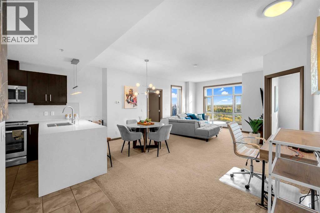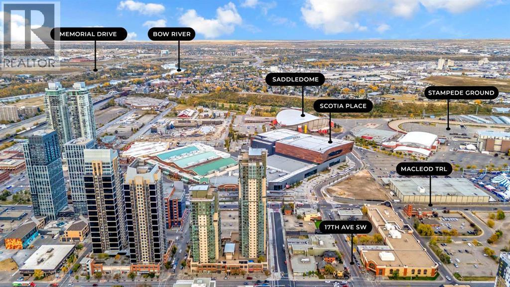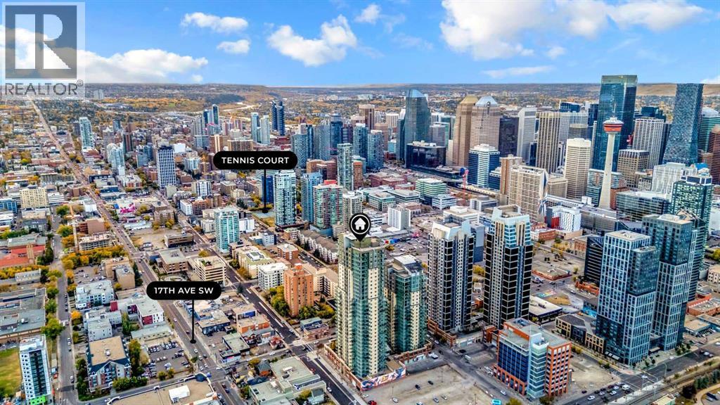 Discover this stunning upgraded and meticulously maintained 2-bedroom condo in the heart of downtown Calgary, featuring convenient central air conditioning for ultimate comfort year-round. Step inside to find a spacious and modern living environment with an open-concept layout that seamlessly connects the living room, dining area, and kitchen—perfectly designed for both everyday living and entertaining guests. With over 1,000 square feet of living space, high 9-foot ceilings, and generously sized bedrooms, this home provides a bright, airy, and welcoming atmosphere that feels both comfortable and luxurious.Every detail of this condo has been thoughtfully upgraded to create a sleek and contemporary space. The kitchen boasts beautiful white quartz countertops that extend throughout, complemented by a matching white backsplash, stainless steel appliances, and stylish designer lighting fixtures. The bathrooms feature elegant vanities, with the primary ensuite including a dual sink for added convenience. The overall aesthetic is modern and refined, with quality finishes that elevate the living experience.The primary bedroom is a true retreat, offering breathtaking south-facing vistas of the Rocky Mountains and spectacular sunsets. Natural sunlight streams in throughout the day, enhancing the sense of space and tranquility. The large walk-through closet is equipped with custom organizers, providing ample storage and easy access. The luxurious primary ensuite features a spacious 4-piece layout, making it an ideal sanctuary for relaxation and privacy.The second bedroom is equally spacious and private, complete with its own 4-piece ensuite and generous closet space, making it perfect for guests, family, or a home office. Say goodbye to laundry-day hassles with the oversized laundry room, outfitted with side-by-side washer and dryer. This generous space also offers abundant storage for linens, cleaning supplies, or seasonal items, helping keep your home organized and clutt er-free.Additional features include an underground titled parking stall and a large underground storage locker, ensuring your vehicles and belongings are safe and easily accessible. The Vetro building itself offers an exceptional lifestyle with a wide array of premium amenities. Enjoy 24/7 security and a dedicated concierge team, along with a state-of-the-art fitness center and a stylish party room—all perfect for relaxing or entertaining guests. Residents also have access to a communal outdoor patio, theatre room, and plenty of underground visitor parking for friends and family. Located just steps from Stampede Park and the vibrant core of downtown Calgary, this condo offers unbeatable convenience and lifestyle options. Whether you're heading to a game, exploring nearby restaurants and shops, or enjoying outdoor parks and walking trails, everything is within easy reach. . **SELLER IS WILLING TO INCLUDE ALL THE FURNITURE** (id:6769
