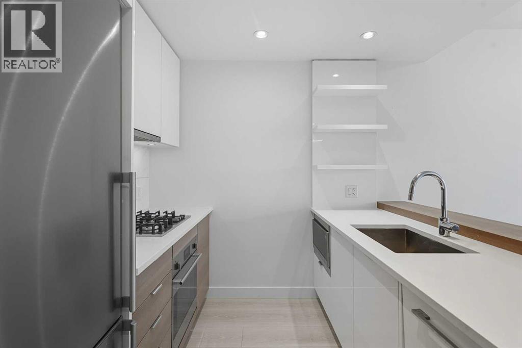 Welcome to Waterfront Parkside, where contemporary design meets an unbeatable downtown riverfront location. This 10th floor, 1 bedroom, 1 bathroom suite offers 468 sq. ft. of thoughtfully designed living space with east-facing views of the Bow River.The open layout features wide-plank flooring, quartz countertops, and a modern kitchen with stainless steel appliances including a Blomberg refrigerator and built-in oven, Fulgor gas cooktop and dishwasher, and in-suite Blomberg washer and dryer. Floor-to-ceiling windows bring in natural light, while the private balcony extends your living space and is equipped with a BBQ gas line. An assigned underground parking stall and storage unit are included.Residents of Waterfront Parkside enjoy exceptional amenities: 24-hour concierge and security, a fully equipped fitness centre, hot tub, steam room, owner’s lounge with kitchen, guest suite, and secured heated underground parkade with visitor parking.The location places you along the Bow River pathways, next to Sien Lok Park and steps from Prince’s Island Park. Downtown Calgary’s restaurants, cafés, and business district are within walking distance, with the planned Eau Claire LRT station adding future convenience and connectivity.Condo fees include gas, heat, and water.This is a fantastic opportunity to own a modern riverfront condo in one of downtown Calgary’s most desirable locations. Book a private showing with your favorite Realtor® today! (id:6769
