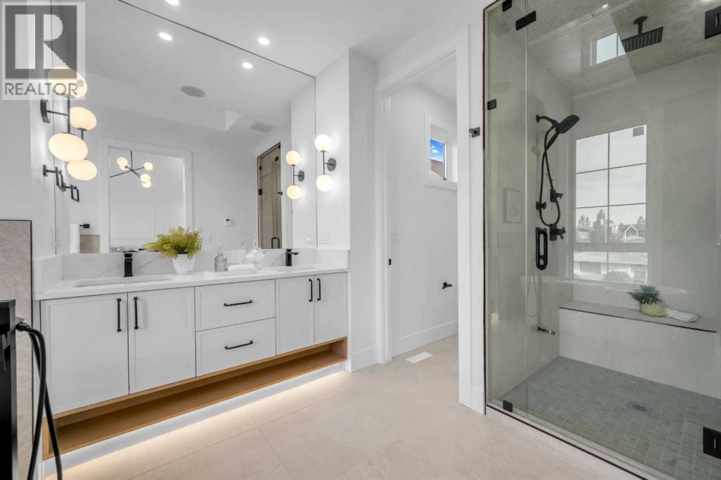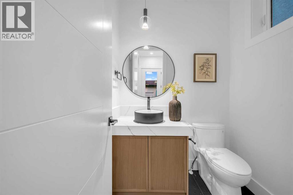 **THE BUYER STILL HAS THE OPTION TO MODIFY THE FLOOR PLANS FOR THE UPPER LEVEL AND BASEMENT. ADDITIONALLY, THE BUYER CAN CHOOSE TO REMOVE THE LEGAL SUITE AND OPT INTO FAMILY ROOM, GYM, AND A ONE-BEDROOM BASEMENT, OR CUSTOMIZE THE LAYOUT ACCORDING TO THEIR PREFERENCES.** Welcome to this exquisite, newly built luxury infill located in the highly sought-after inner-city community of Banff Trail. Offering over 3,000 sq ft of meticulously designed living space, this stunning home features 5 bedrooms, 4.5 bathrooms, and a legal 2-bedroom basement suite with a private entrance and separate laundry—perfect for extended family, guests, or rental income.The main floor showcases an open-concept layout with engineered hardwood flooring throughout, blending elegance with functionality. The spacious dining area features a striking custom feature wall, setting the tone for upscale entertaining. The heart of the home is the expansive gourmet kitchen, complete with a long central island, premium cabinetry, sleek quartz countertops, and high-end stainless steel appliances. A pocket office enclosed with a stylish glass wall offers a quiet and modern workspace, ideal for working from home. The inviting living room centers around a beautifully designed electric fireplace, creating a cozy ambiance year-round. A well-appointed 2-piece powder room and a large mudroom with built-in storage and custom millwork provide practical convenience.Upstairs, you'll find three generously sized bedrooms, each with ample closet space. Two secondary bedrooms include ensuite access, and the primary retreat features a spa-inspired 5-piece ensuite with dual sinks, a standalone shower roughed-in for a steam unit, and a large walk-in closet. A full laundry room with storage and counter space completes the upper level.The fully developed basement offers incredible flexibility with a 2-bedroom legal suite that includes a full kitchen, separate laundry, and private entrance—perfect for multigenerational l iving or added revenue potential.Outside, enjoy a fully landscaped backyard, with a deck and privacy wall thoughtfully installed between the neighboring homes, ensuring a private and peaceful outdoor space.Ideally located close to the University of Calgary, SAIT, top-rated schools, parks, public transit, and major routes, this home combines urban convenience with high-end finishes and smart design. (id:6769