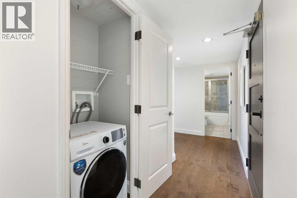 ELECTRICITY INCLUDED | STORAGE UNIT | GYM AND PARTY ROOM | WALK TO 17TH AVE | Centro 733 is a perfect location to enjoy the many nearby green spaces, walk to the bow river or pop over to trendy and vibrant 17th Ave for great food and entertainment. This 2-bedroom, 1 bathroom home offers an open floor plan featuring modern finishes such as hardwood floors, contemporary trim package, granite counter tops and stainless-steel appliances. In the kitchen you will enjoy stylish cabinetry with glass doors, an eat up bar and loads of storage for all your kitchen gadgets. The dining area allows for a dining table big enough for all your family gatherings. Both bedrooms are large enough for a queen bed. The bathroom boasts a large vanity, great for storage, a modern glass sink, tile surround in the shower with glass shower doors. This fabulous unit also comes with in suite laundry, a parking stall, gym, party room and the condo fees include electricity. (id:6769