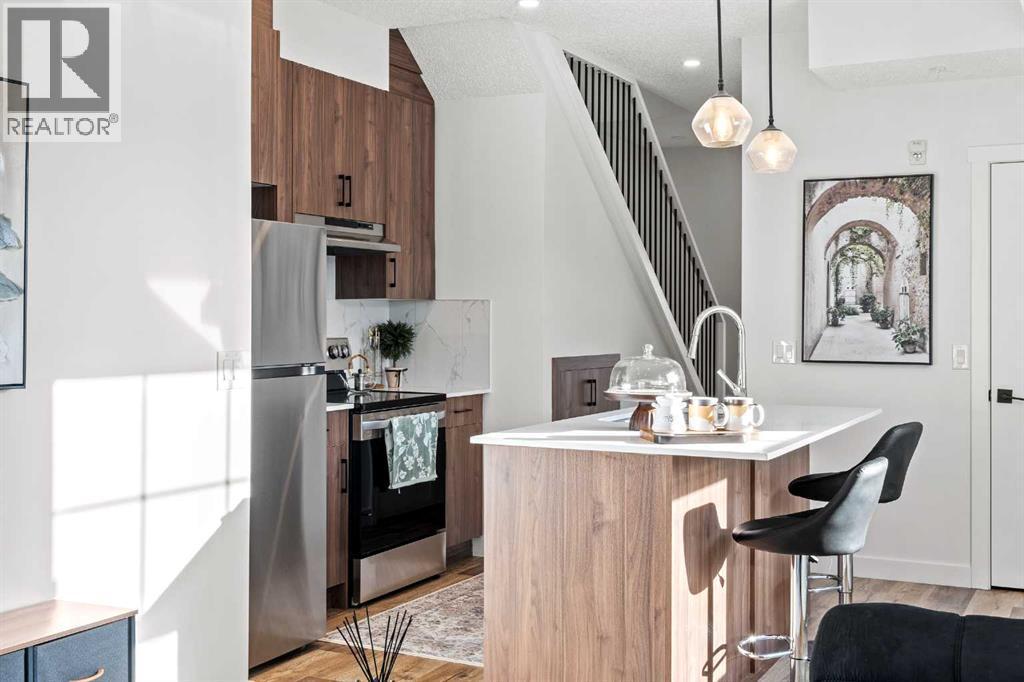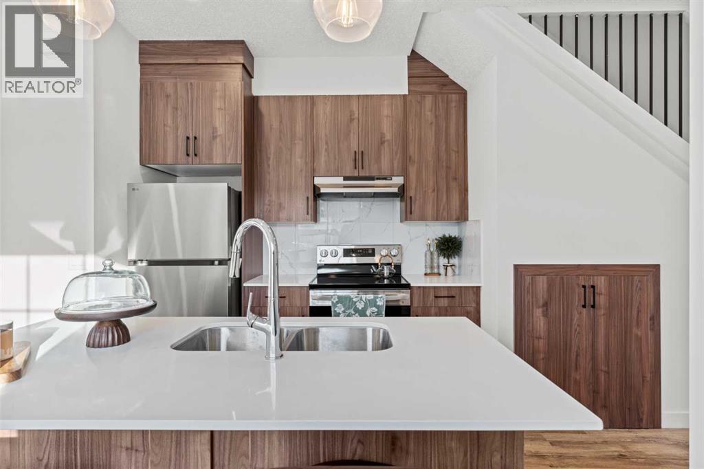 Discover the perfect balance of modern elegance and relaxed living in this stunning home, thoughtfully designed for comfort, connection, and outdoor enjoyment. Located in one of Cochrane’s most desirable new communities, this property offers a rare chance with quick access to the Rocky Mountains and all the amenities of the growing Greystone development. Step inside and you’ll be welcomed by a bright, open-concept layout featuring 9-foot ceilings and luxury wide-plank flooring throughout. The gourmet kitchen is beautifully equipped with quartz countertops, soft-close cabinetry, premium stainless steel appliances, and a spacious island perfect for casual dining or entertaining. The home features three bedrooms and two full bathrooms, each designed with modern fixtures, stone tile floors, and matching quartz vanities. Your convenience continues with a single attached garage and an additional parking pad, providing plenty of room for family and guests. Enjoy peaceful mornings on your private deck overlooking the water, or take advantage of the brand-new pickleball courts just across the street. Meandering garden pathways, green spaces, and local parks make it easy to unwind outdoors and stay active year-round. Perfectly situated within walking distance to Ocgrow’s Greystone Place Retail Centre, you’ll have access to restaurants, cafés, shops, and the upcoming flagship Co-op grocery store — everything you need right at your doorstep. Plus, with Spray Lakes Sports Centre minutes away and the Rockies within reach, adventure and leisure are always nearby. Be part of Cochrane’s fastest-growing community and experience a lifestyle where modern design meets natural beauty — live, work, and play - welcome home to Greystone. (id:6769