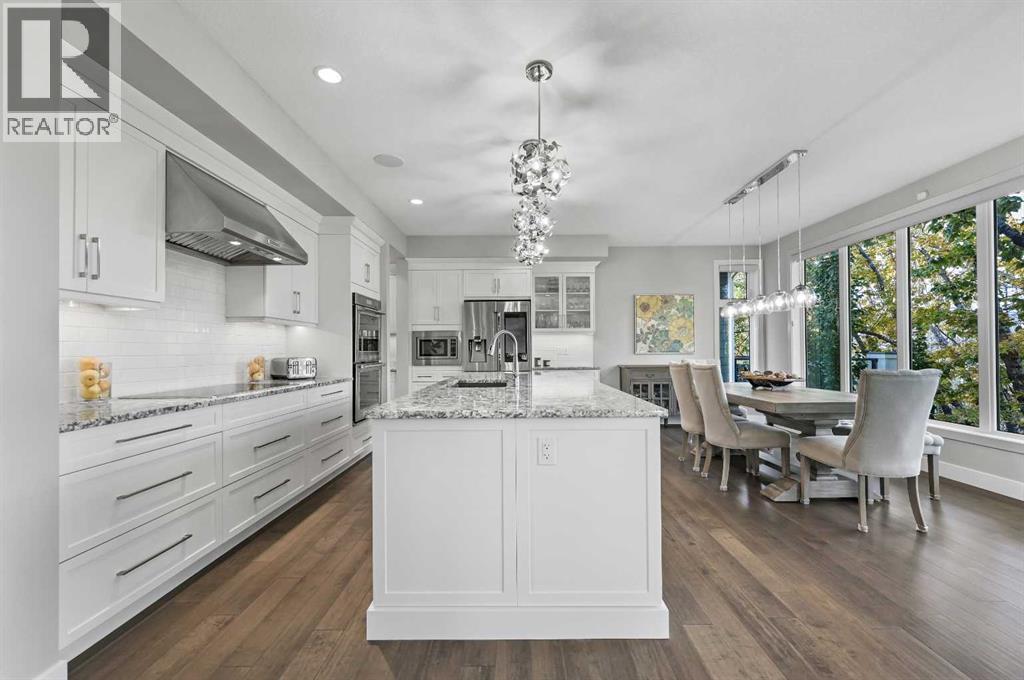 Welcome to this exceptional estate home crafted by Lupi Homes, ideally located in the highly sought-after community of Rock Lake Estates. Enveloped by mature trees, this residence offers over 4,000 sq ft of refined living space, where timeless design meets peaceful, nature-filled views and the quiet charm of the nearby lake. Step inside to soaring 9-foot ceilings, expansive windows, and timeless finishes. The main floor unfolds with a bright living room, framed by large picture windows that showcase serene views of the surrounding trees and glimpses of the lake beyond, flowing seamlessly into a spacious dining area ideal for entertaining. The chef’s kitchen impresses granite countertops, a massive central island, and premium appliances—including a built-in KitchenAid induction cooktop, built-in stainless steel hood fan, double wall ovens and microwave, Samsung smart refrigerator and a Frigidaire Gallery upright freezer. Thoughtful storage includes a walk-in and prep pantry, both with custom shelving and a built-in spice rack. Completing the main level are a private office, a 2-piece bath, and a well-designed mudroom with built-in bench and cabinetry. Upstairs, a welcoming family room and bonus area provide space to unwind. The primary suite offers a luxurious retreat with a spa-inspired 5-piece ensuite featuring heated floors, quartz counters, and a curbless tiled shower. Two additional bedrooms each include built-in benches and share access to a charming “secret room” hidden between them— perfect for play, additional bedroom, or nanny space. Both bedrooms have their own ensuite, with one offering dual access from the bedroom and main living area for added convenience. The fully developed lower level continues the elegant feel, offering a spacious recreation area with built-in wet bar and Marvel bar fridge, an exercise room, a fourth bedroom, a 3-piece bath, and abundant storage. A separate entrance leads to the private covered patio and west-facing backyard—an idea l setting for relaxing evenings surrounded by mature trees and natural scenery. Throughout the home, custom built-ins add both beauty and practicality—from vanities and closets to shelving and pantry organization. The garage is roughed for heat and plumbing for a future dog wash, with epoxy flooring for a polished finish. Additional highlights include two furnaces (one with a new motor), Ecobee smart thermostats, a roughed-in speaker and central vacuum system, and a modern security setup. Nestled within Rock Lake Estates in Rocky Ridge, this home offers a perfect balance of natural beauty and urban convenience. Everyday essentials, cafés, and restaurants are just five minutes away at Royal Oak Centre. Families will value the proximity to highly rated schools, including William D. Pratt and Royal Oak School, both under ten minutes from the home. For recreation, the YMCA is only a short drive, featuring a full aquatic centre, fitness facilities, and year-round programs. (id:6769