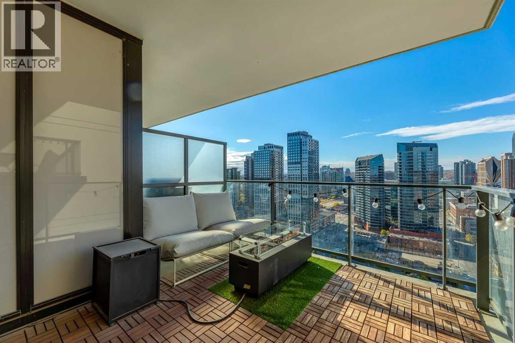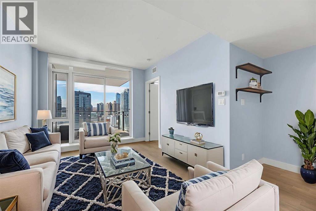 Welcome to The Guardian, one of Calgary’s premier high-rise addresses in the heart of the Beltline — where modern design meets unbeatable downtown convenience. This bright and stylish 1-bedroom, 1-bathroom condo offers over 500 sq. ft. of well-planned living space, ideal for young professionals, first-time buyers, or anyone who loves being close to the action. Step inside and you’ll find an open-concept layout with sleek laminate flooring, a bright neutral palette, and floor-to-ceiling windows that frame incredible views of the downtown skyline and Stampede Park. The kitchen features designer white cabinetry, quartz countertops, stainless steel appliances, and a central island that’s perfect for casual dining or entertaining friends. The living area flows easily out to a private balcony with a gas line for BBQs — the perfect spot to unwind and take in those big-city views. The bedroom is spacious and filled with natural light, complete with a walk-through closet and easy access to a stylish 4-piece bathroom. In-suite laundry and titled underground parking add everyday convenience. Living at The Guardian means more than just a great condo — it’s a lifestyle. Enjoy top-notch building amenities including a state-of-the-art fitness centre, owner’s lounge and social room, concierge service, workshop, and secure bike storage. Whether you’re hosting friends in the lounge, getting a workout in before work, or heading out to explore, everything you need is right here. If you’re looking for a well-designed condo in a building that offers it all — from unbeatable amenities to one of the best downtown locations — The Guardian delivers. Steps from the Stampede, Saddledome, 17th Ave, and the city’s best dining and entertainment, this is urban living done right. Schedule your private showing today and experience it for yourself. (id:6769