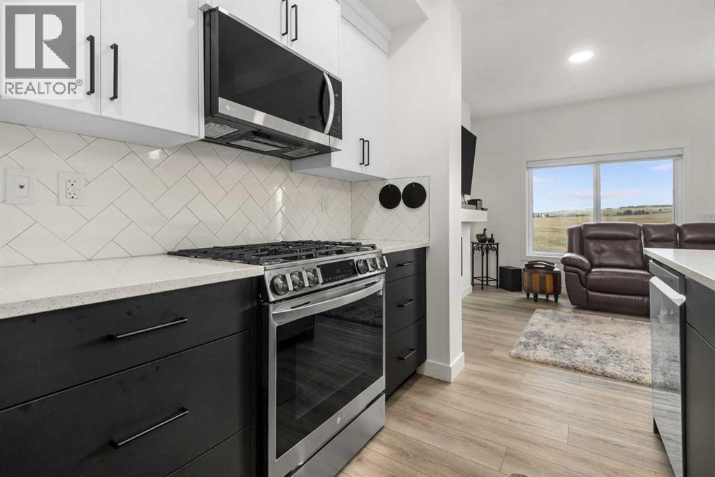 NO NEIGHBORS BEHIND - BACKING ONTO PARKS & RECREATION AREA - STUNNING MOUNTAIN VIEWS - FULLY FINISHED WALKOUT - OVER 2,200 SF - DOUBLE ATTACHED GARAGE - VACANT FOR QUICK POSSESSION... Experience elevated living in this meticulously crafted modern semi detached home, backing onto proposed park & recreation space offering over 2,200 sq ft of beautifully developed living space, stunning mountain views, walk-out finished basement, 3 spacious bedrooms, 3 bathrooms, and striking 9-foot ceilings throughout. With architectural details that balance sophistication and function, this home delivers comfort, style, and unbeatable value. As you step inside, you're welcomed by a bright, open-concept main floor—ideal for both daily life and entertaining. The chef-inspired kitchen is a true centerpiece, featuring elegant quartz countertops, stainless steel appliances, a gas range, and a generous central island perfect for prepping, dining, and gathering. The adjacent living room is anchored by a beautiful electric fireplace and is bathed in natural light thanks to oversized windows that frame unobstructed views of the mountains and open plains. Step out onto the private back deck to spectacular mountain views to the west and open fields to the north, perfect for BBQs or quiet evenings soaking in the scenery. Upstairs, the home continues to impress with a stunning bonus room showcasing soaring ceilings and custom-built-in cabinetry—perfect as a home office, lounge, or creative space. The expansive primary suite offers a tranquil retreat, complete with a sleek 3-piece ensuite and a large walk-in closet. Two additional well-sized bedrooms and a full bathroom offer comfort and flexibility for family or guests. The fully developed walkout basement adds incredible versatility to this home, with large windows, a stylish wet bar with a full size fridge, and custom cabinetry, it's the ideal space for a home theater, guest suite, or secondary living area. The walkout design opens to a privat e grade-level concrete patio and fully fenced yard. A large furnace/storage room offers additional practicality, with the option of adding a bathroom with rough in plumbing. Location is key, heritage hills offer an abundance of green space walking/bike paths and close proximity to schools, parks and all amenities with easy access to highway 1A leading you to the mountains in less than an hour. You're going to love this home, perfectly blending modern elegance with functional design and breathtaking views, this home is ready to impress. Book your viewing today! (id:6769