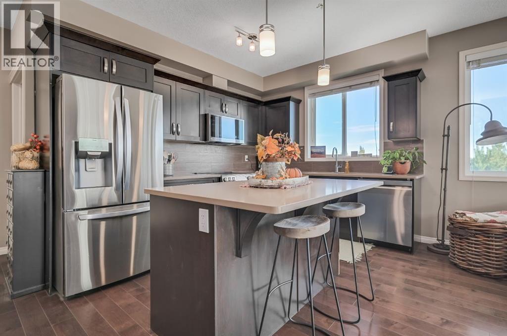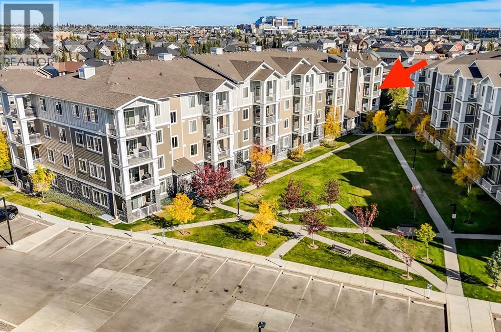 Welcome to this beautifully appointed South facing corner condo in the heart of Cranston! This 2 bedroom, 2 bathroom + den home offers nearly 1000 sq ft of thoughtfully designed living space, perfect for professionals, downsizers, or investors.The modern kitchen is truly the heart of the home. Featuring new stainless steel appliances, stone countertops, and a generous island ideal for entertaining or casual dining. The open concept layout flows effortlessly into the dining area and bright living room, where sliding doors lead to a large, covered patio overlooking the quiet courtyard making it the perfect space for your morning coffee. The patio is complete with a BBQ gas line making it perfect for summer evenings. The primary suite boasts a spacious walk through closet with custom built in shelving, leading into a well appointed ensuite bathroom. The second bedroom and main bath are on the opposite side of the condo making it ideal for guests or roommates. The den offers the perfect work from home setup, creative space, or extra storage. Enjoy secure, heated underground parking and an assigned storage unit directly in front of your parking space. Located close to shopping centres, the South Health Campus, Seton YMCA, and an abundance of walking and biking trails with stunning natural views, this home offers the perfect balance of comfort, convenience, and lifestyle.Don’t miss your chance to own in one of Calgary’s most desirable communities! (id:6769