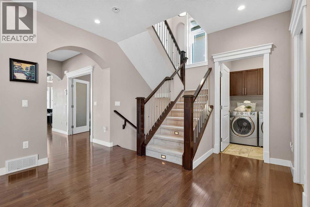 This stunning two-story residence offers over 3,800 sq. ft. of beautifully developed living space, perfectly designed for comfort and functionality. Backing onto Nose Creek - a beautiful tranquil natural setting, the east-facing backyard welcomes peaceful morning sunshine and provides a serene backdrop to everyday living. Step inside and be greeted by soaring ceilings and an abundance of natural light that enhances the elegant open layout. The main floor features a formal living and dining room—ideal for gatherings—along with a versatile flex room that can be used as a home office or study. The gourmet kitchen is a true showpiece, featuring granite countertops, a centre island, and stainless steel built-in appliances. The living room is warm and inviting, anchored by a cozy fireplace framed with beautiful built-in shelving and complemented by rich hardwood floors. Upstairs, the expansive primary suite offers a luxurious retreat with a spa-inspired ensuite, dual sinks, and a spacious walk-in closet. Two additional bedrooms and a large bonus room provide plenty of space for family and relaxation.The fully developed walkout basement is thoughtfully designed with two bedrooms, a full bathroom, and a complete kitchen — perfect for extended family or guests. This exceptional home offers easy access to major roads, nearby amenities, and scenic walking paths, making it an ideal blend of comfort, convenience, and natural beauty. Bonus Features: CENTRAL AC, NEW ROOF and NEW EAVESTROUGH ***VIRTUAL TOUR AVAILABLE*** (id:6769