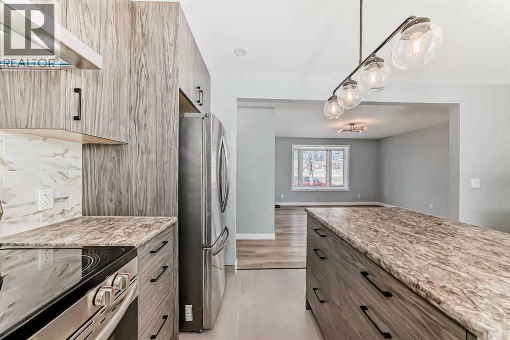 Beautifully Renovated Bungalow in Acadia – Across from a Park and Schools! This remodeled bungalow is ideally located directly across from a large west-facing park and within walking distance to schools in the desirable community of Acadia. Step inside to a spacious living room featuring bay windows that fill the space with natural light and offer picturesque park views. The main floor boasts new luxury vinyl plank and tile flooring throughout. The modernized kitchen showcases brand-new countertops, cabinetry, backsplash, lighting, and appliances—perfect for any home chef. Down the hall, you'll find a fully renovated 4-piece bathroom with granite countertops, along with three generously sized bedrooms, each updated with new flooring and lighting. The entire main floor has been freshly painted and is move-in ready. Just off the dining area, enjoy a bright and cozy sunroom overlooking the private backyard—an ideal spot to relax. A separate side entrance provides access to the developed basement, offering great potential for future plans. The developed downstairs area features a large family room (great space for a media room or home fitness options), a bedroom, another full bathroom, and ample storage. The spacious laundry/mechanical room includes an extra sink for added convenience. Additional upgrades include CENTRAL AIR CONDITIONING, a TANKLESS HOT WATER SYSTEM, a HIGH-EFFICIENCY FURNACE, a NEW ELECTRICAL PANEL, 6K worth of new HUNTER DOUGLAS blinds and full asbestos remediation for peace of mind. The backyard is a true retreat with a massive maintenance-free deck, a charming custom-built western-style shed, and a stone water pond. The front exterior features stylish faux stacked stone, poured concrete walkway, and front steps. The OVERSIZED INSULATED & HEATED DOUBLE GARAGE is a dream for any hobbyist or mechanic, complete with 220V wiring and NEW high-efficiency garage doors. Plus, there's convenient RV parking with a large vehicle gate—ideal for storing your outd oor toys. Don’t miss out on this turnkey gem—call today to schedule your private showing! (id:6769
