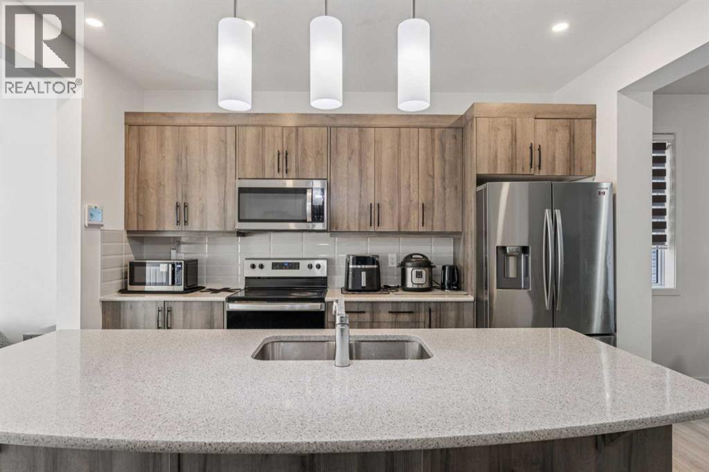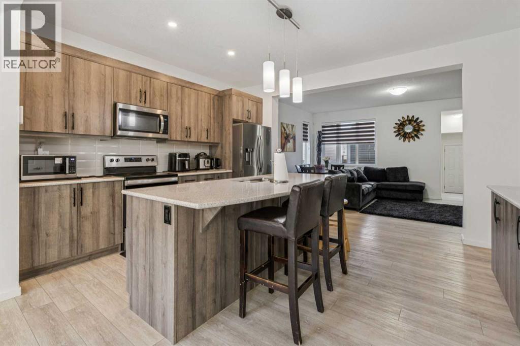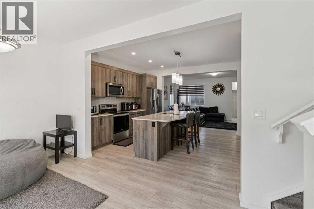 Stylish Duplex with Finished Walk-Up Basement in Carrington NW!Discover this beautifully maintained duplex in the sought-after community of Carrington NW. Where elegant design meets everyday convenience. Featuring 3+1 bedrooms, this home offers a perfect blend of style, comfort, and functionality.Step inside to find 9 knockdown ceilings, a bright open-concept main floor, and a spacious living and dining area ideal for entertaining. The chef-inspired kitchen is the heart of the home, showcasing custom soft-close cabinetry, quartz countertops, a large dining space, pantry, and premium appliances including a microwave and refrigerator — all designed to make cooking and gathering a joy.Upstairs, you’ll find three well-sized bedrooms, including an elegant primary suite complete with a walk-in closet and elegantly appointed ensuite. The convenient ample second-floor laundry makes daily living that much easier.Downstairs, the fully finished walk-up basement offers incredible flexibility — featuring a private suite with a spacious bedroom, modern bathroom, compact kitchen, and large family area — perfect for guests, extended family, or a mortgage helper.Enjoy the comfort of a finished, oversized rear attached garage, ideal for winter parking and extra storage.Located in Carrington NW, you’re just minutes from Stoney Trail, playgrounds, schools, shops, and everyday amenities — plus, only 15 minutes to the airport and 6 minutes to major shopping centers.This home has been lovingly cared for and possession is negotiable. Don’t miss your chance — book your private showing today and fall in love with your new home in Carrington! (id:6769