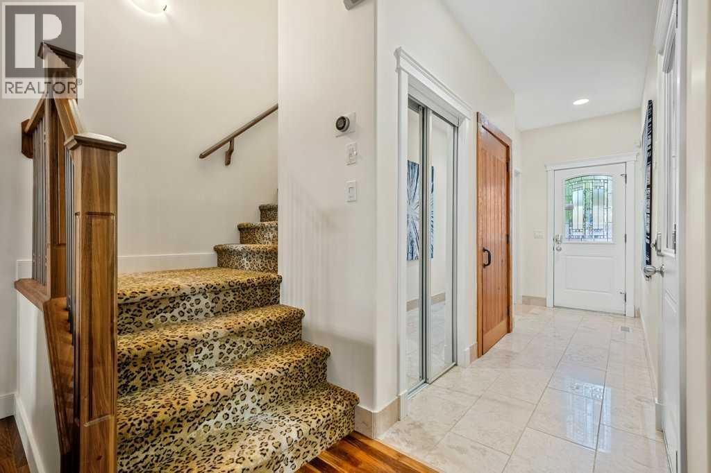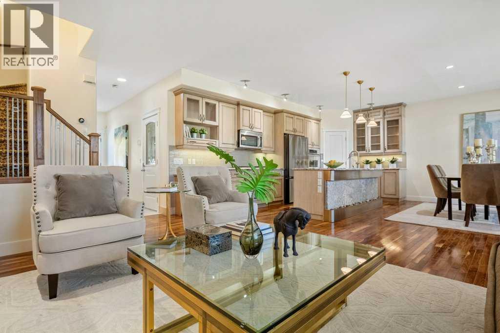 One-of-a-Kind Townhouse in Garrison Woods – No Condo Fees!Price just reduced.Welcome to this exceptional 3-storey townhouse, ideally located in the heart of the vibrant Garrison Woods community. Positioned directly on a park and adjacent to the Lycée international de Calgary French school, this home offers the perfect blend of style, comfort, and convenience – with no condo fees!Extensively upgraded Interior: The middle unit has been thoroughly upgraded with high-end finishes and thoughtful touches throughout. A Chef’s Kitchen: Marble countertops, classic subway tile backsplash, gas cooktop, built-in oven, New French door refrigerator, corner pantry, and roll-out drawers in all cupboards. A unique, freshly serviced water feature enhances the island. The livingr oom has dark satined hardwood floors and a marble-faced gas fireplace to give you a cozy spacious layout.A spacious dining room provides a great space for hosting and entertaining. Oversized Primary Suite 17x17 with private balcony overlooking the park. The large walk-in closet includes custom built-ins. A Spa-Inspired Ensuite with Marble galore; countertops, marble-surround jetted tub, and custom shelving. Two Additional large Bedrooms with newer carpet and premium 10 lb. underlay for a soft, cozy feel. Convenient second floor Laundry: Newer front-load washer/dryer with additional built-ins for storage. The third floor makes a versatile Bonus Room with lots of built ins and dormers. This floor is accessed via a unique eclectic door and leads to this Egyptian-themed room. Another Marble finished bathroom, Built-in desk (ideal for home office), extensive closets and built-ins. Potential for a fourth bedroom or primary suite. The lower level is finished with fir from a grain elevator with a 10 foot long steam shower, built in bookcases, a walk in closet, and storage. The Furnace and Hot water are Newer with a shut off for the H20. tank. Lighting: Upgraded fixtures including elegant island pendan ts and recessed lighting.Security: Roll shutters on main, garage, and second-floor windows – ideal for travel security. Also includes an alarm system. Double Attached Garage: Upgraded with interior roll shutter, tile flooring, decorative tile walls, and hot/cold water access. Low Maintenance Exterior; no grass to cut, just sweep the front porch and trim the hedge! All three units in this triplex received a new hail-resistant roof just a month ago.Quiet, park-facing location, Walkable to Marda Loop shops, restaurants, Easy access via Flanders AveNearby schools include Lycée international de Calgary and Masters AcademyThis unique townhouse offers rare features not often seen in the market. Whether you're a growing family, a professional couple, or looking for an executive-style retreat, this home delivers unmatched quality and value in Garrison Woods. (id:6769