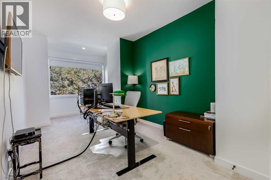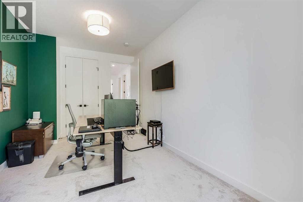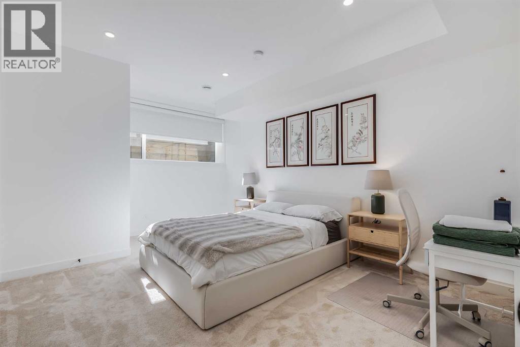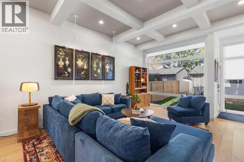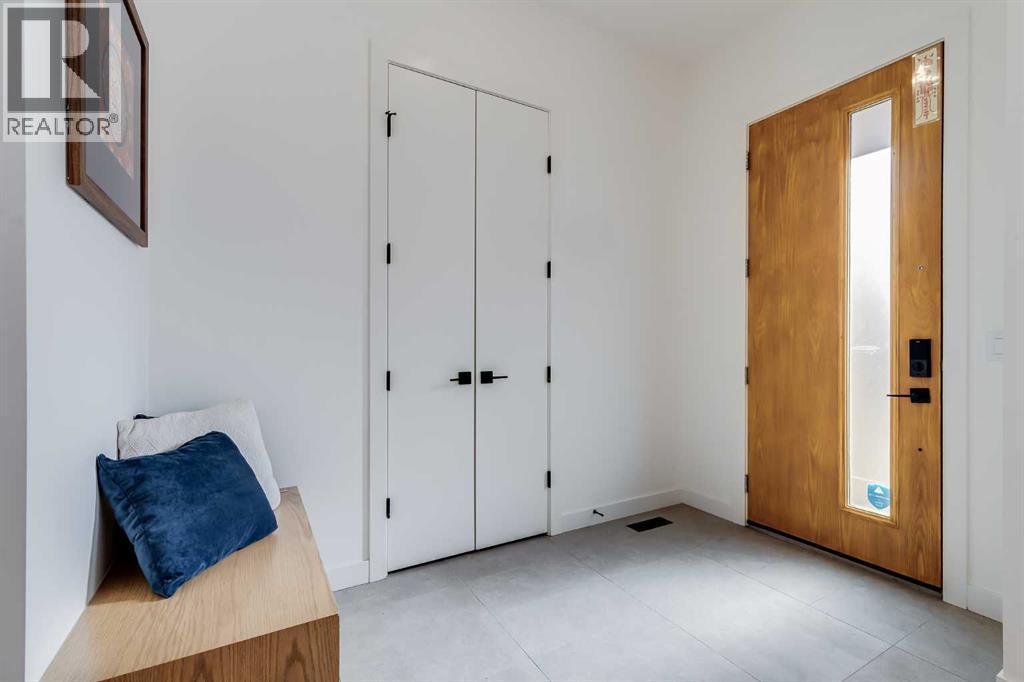 Located in the highly sought-after community of West Hillhurst, this exceptional two-storey home offers over 3,100 square feet of developed living area that blends refined luxury with timeless European-inspired design. Custom-built by Deanmark in 2023, every detail reflects superior craftsmanship and quality materials. With four bedrooms and three and a half bathrooms, this residence delivers both sophistication and functionality for modern family living.The inviting foyer sets the tone with tile flooring and a built-in bench, while wide-plank engineered hardwood extends seamlessly throughout the rest of the main level. Ten-foot ceilings and eight-foot solid core doors enhance the sense of height and elegance, while large windows fill the home with natural light. The open-concept layout connects the kitchen, dining, and living areas, creating an ideal setting for everyday living and entertaining alike. The kitchen is a showpiece, featuring sleek white cabinetry, quartz countertops, a massive waterfall island with seating, and premium Fisher & Paykel stainless steel appliances, including a gas cooktop. Ample storage and workspace make it as functional as it is beautiful. The adjacent dining area easily accommodates family gatherings, while the living room exudes warmth with its linear gas fireplace, tile surround, custom built-in display shelves, and coffered ceiling. A stylish two-piece powder room with a stone pedestal sink finishes the main floor. Upstairs, nine-foot ceilings and thoughtful design create a calm retreat. The primary suite is a luxurious escape, featuring soft carpeting, a spacious walk-in closet with custom shelving, and a spa-like ensuite with heated tile floors, dual sinks, a soaker tub, and an oversized shower. Two additional bedrooms, a four-piece bathroom, and a convenient laundry room round out the upper level. The fully developed basement features 9’4” ceilings, oversized windows, and a bright, open layout. A large recreation room with a sle ek wet bar, complete with sink, beverage fridge, and wine display, creates an inviting space for entertaining. A guest bedroom, three-piece bathroom with steam shower, and dedicated storage add functionality. Outside, the backyard offers a concrete patio and grass area leading to a double detached garage with alley access. Hunter Douglas blinds and central air conditioning add year-round comfort. West Hillhurst is one of Calgary’s most desirable inner-city neighbourhoods, known for its blend of family-friendly charm and urban accessibility. You’re within walking distance to the vibrant shops, cafés, and restaurants of Kensington, offering an unmatched lifestyle. Families will appreciate being just a 15-minute walk from both Queen Elizabeth Schools. Nearby parks and the Bow River pathways provide endless opportunities to enjoy the outdoors, while commuting is effortless with easy access to major roadways and transit. Check out the 3D tour for a closer look! (id:6769