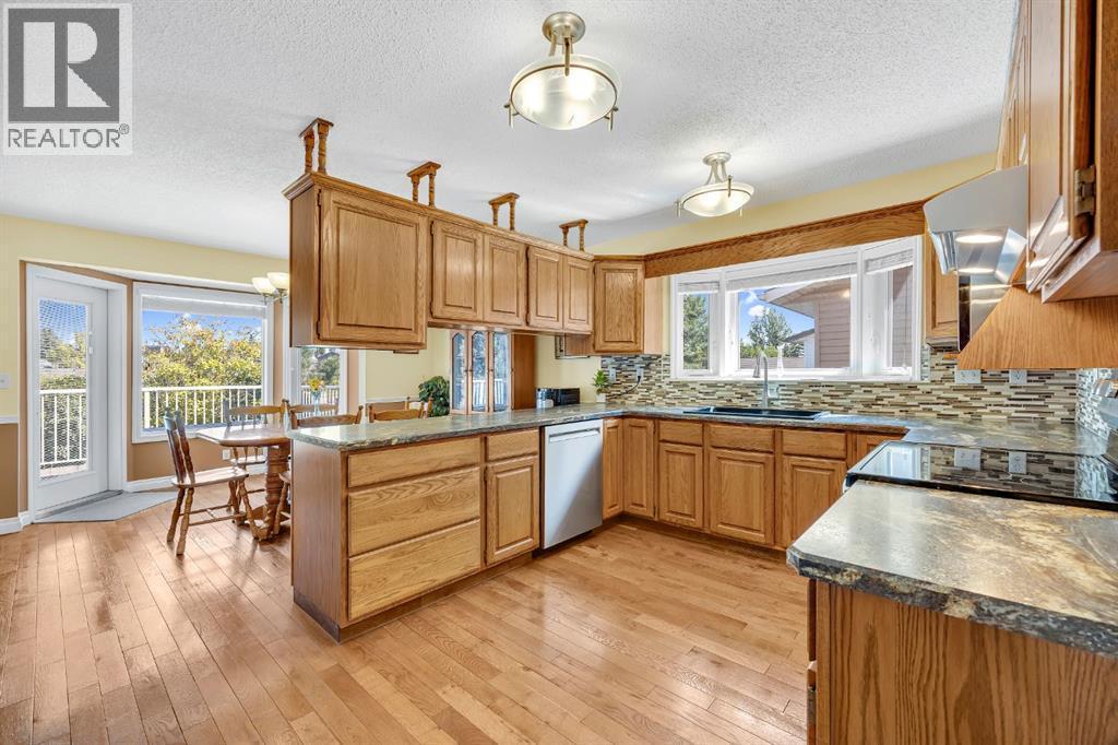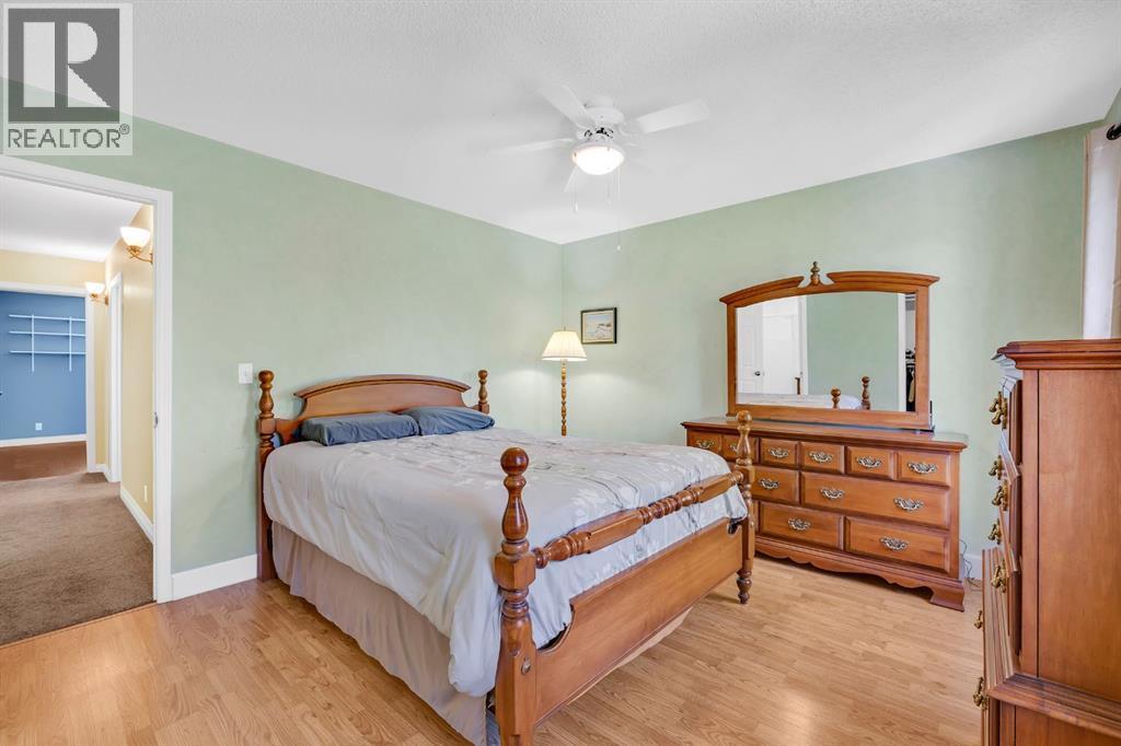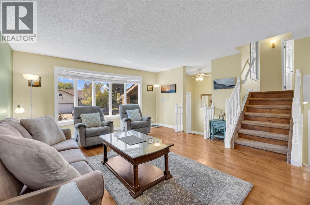 Pride of ownership resonates throughout this ORIGINAL OWNER occupied home in the COVETED community of RIDGEGATE. BACKING onto NOSE CREEK PARK, this absolutely stunning 4 level split will immediately capture your attention with its breathtaking front curb appeal. An immaculately manicured front lawn with shrubs & foliage. Canexel composite siding is bold, beautiful & ready for Alberta's changing weather conditions. The accent brick offers a sophisticated focal point to the home while the RUBBER drive pad is not only beautiful but offers a child friendly buffer for those day to day spills. This home offers over 2600 sq ft of tl developed living space with a total of 4 bedrooms above grade. Sunshine floods through the large front bay & rear windows. A substantial sized living room with beautiful hardwood floors ushering you to a LARGE bright kitchen. Ample counter space, cabinets & pantry. Updated appliances, countertops, sink, garburator & fixtures. The kitchen is open to a spacious dining area. The rear door off the dining room leads to your large low maintenance deck & fully fenced back yard. Stunning mature trees, shrubs & flowers offer a balance of beauty & privacy in this meticulously maintained OASIS. Exceptional outside storage under the deck, corner shed & garden enclosure. Back inside the house you will note a large master with 3 pc ensuite & SKYLIGHT. An exceptional sized 2nd bed, comfortable sized 3rd bed & updated 4 pc main bath with jetted tub & SKYLIGHT. The 3rd level WALK OUT is ideal for someone with a DAYHOME/HOME BASED BUSINESS & is host to the 4th bed, a large family room with stone faced gas FP, 2 pc bath & washer & dryer. The basement offers a generous sized family room, Study/Den/Wine Cellar, 3 pc bath, & Storage room. The 2 lower level rooms could be converted to beds to suit the needs of a large family while the 3rd LEVEL WALKOUT could make this home a candidate to SUITE subject to city approval & permitting. Additional storage adjacent the u tility room. The single oversized attached garage is fully insulated, drywalled & includes a plug in heater. Additional features of this home include all newer windows & doors on the top 3 levels. Triple pain windows on the main rear of the home & built in blinds on the back door. Roof , Canexel siding & furnace app 2014. Hot water tank app 2020. Upgraded attic insulation. Garburator app 2020.. Water softener. Vacu Flo & attachments. Phantom screen at front door. A/C app 2022. Underground sprinklers in the backyard. This GEM is surrounded by the tranquil beauty of NOSE CREEK PARK which is host to various community events including the Christmas Light Celebration. Nose Creek Park is home to Airdrie's largest playground, fishing ponds, pickle ball courts & various trails. Walking distance to the new public library, grocery store, gym & other amenities. Nearby schools & quick access to the highway. (id:6769