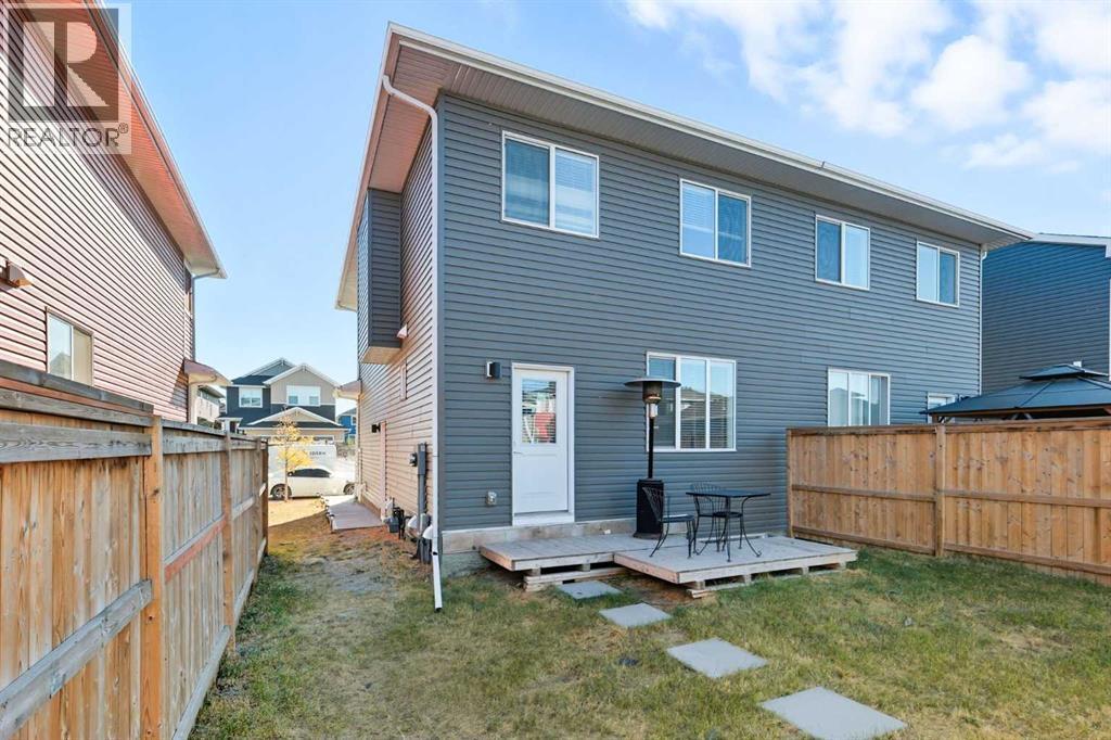 This beautifully maintained semi-detached home in Redstone offers a bright and spacious main floor layout with dedicated dining and living areas, plus a convenient half bathroom. The full-size kitchen features a light colour scheme, quartz countertops, and a complete stainless steel appliance package.Upstairs, you’ll find three generous bedrooms and two full bathrooms, including a primary suite that easily accommodates a king-size bed and features a private ensuite with dual vanity sinks. The second-floor laundry adds everyday convenience.The legal, city-registered basement suite is professionally finished and features high ceilings, a bright open layout, one spacious bedroom, a full bathroom, a modern kitchen with quality appliances, and in-suite laundry — all with a private entrance with a concrete walkway for added privacy.Enjoy the landscaped backyard and deck, perfect for relaxing or entertaining. A detached double garage completes this fantastic property.Located in the vibrant community of Redstone, this home is close to schools, parks, shopping, and all amenities, with quick access to major roads and CrossIron Mills. (id:6769