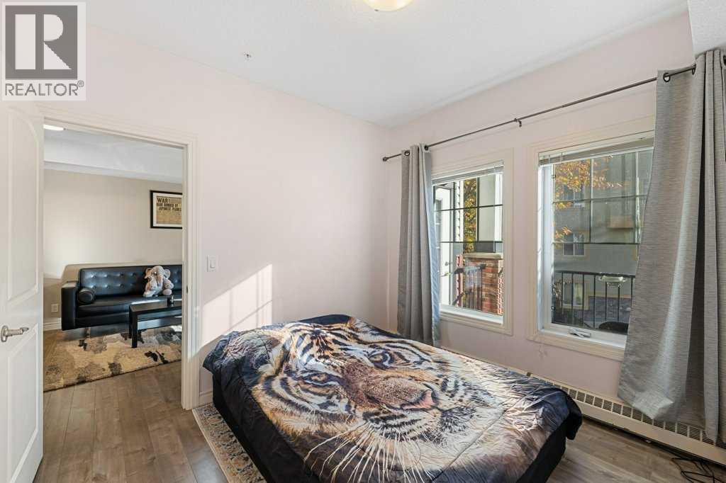 Set on the second floor of Building 60 at Red Haus, this bright, south-facing one-bedroom overlooks a beautiful courtyard and feels instantly welcoming. Laminate flooring flows through the living room and bedroom, while the kitchen shines with maple cabinetry and a raised breakfast bar. The open-concept living/dining area is flooded with natural light and includes a versatile flex nook—perfect for a desk, bookcase, or hutch. The spacious bedroom offers a walk-through closet to a 4-piece bathroom, and the in-suite laundry features a newer washer/dryer. Step out to the private balcony for morning coffee or evening downtime.Practical perks include titled, heated underground parking and a titled storage locker. Condo fees cover heat and water; only electricity and internet are extra. Residents enjoy the on-site Club Haus for fitness and social gatherings.Loved for its European-inspired design, Red Haus sits next to Royal Oak Centre (groceries, cafés, and daily essentials), with quick access to Stoney Trail and an easy bus ride to the Tuscany/Royal Oak LRT. Dont miss this great unit! (id:6769