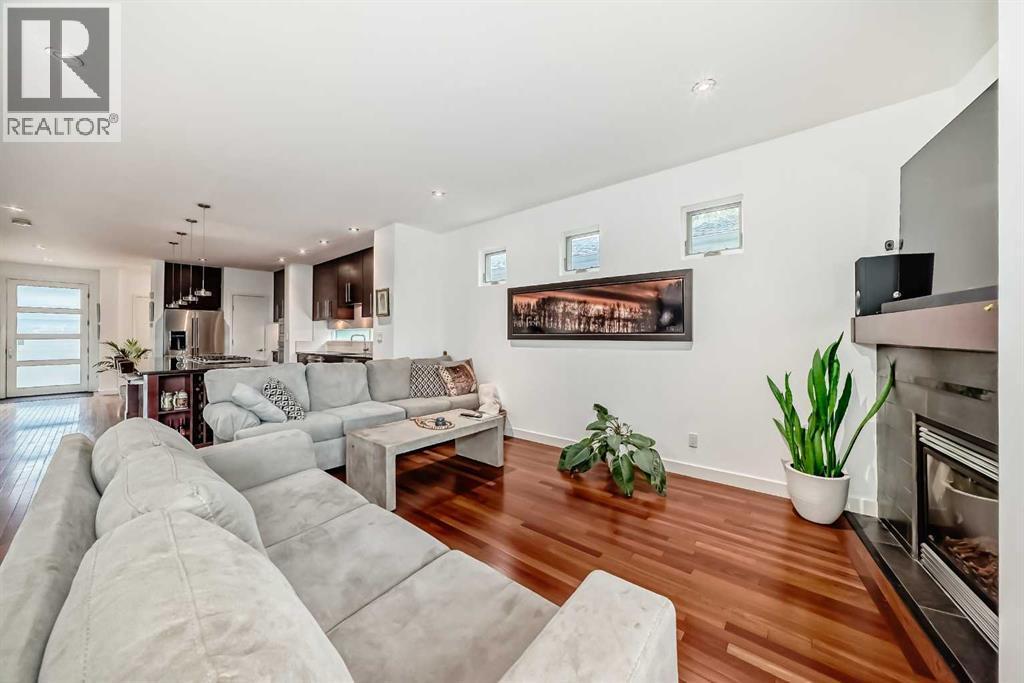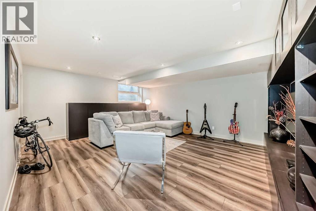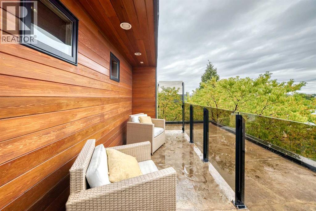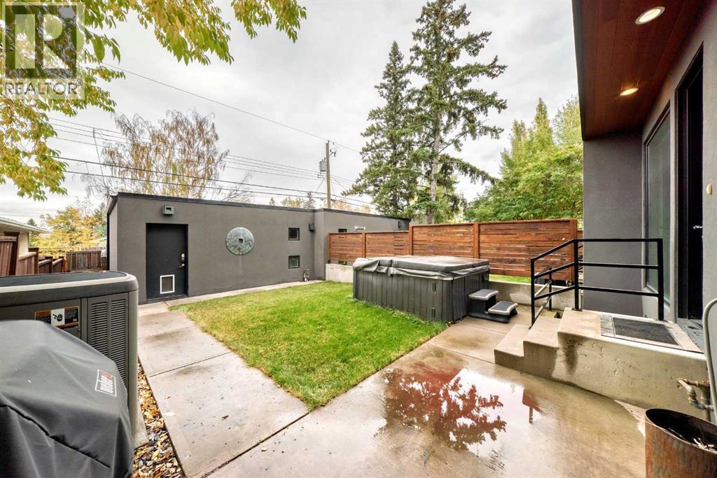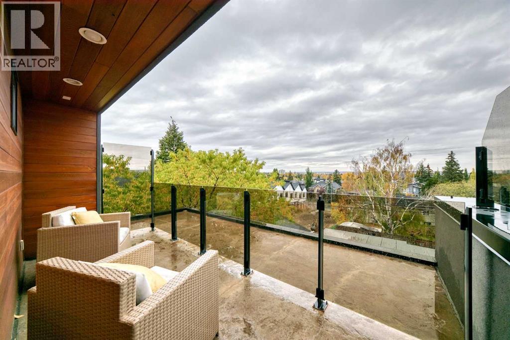 This contemporary, fully developed Inner City Home is loaded with upgrades thru-out and offers over 3200 SqFt of luxury living space complimented with a quiet location and city and mountain views from the Rooftop Patios. With 9 Foot Ceilings on the Main, central A/C and radiant in-floor heating in the Lower Level and all Bathrooms, the open concept floor plan starts with the bright Entry leading to the fully equipped gourmet Kitchen ideal for entertaining, complete with a 10 ft island with built-in wine rack, granite countertops, high-end stainless steel appliances including the gas down-draft cook top and built-in wall ovens, wine fridge and walk in pantry. The Dining area sits in front of a large floor to ceiling window, the Living Room features accent windows and a cozy gas fireplace with access to the backyard and there is the 2pce Guest Bath. The open riser staircase with glass panel wall leads up to the 2nd Level where you’ll find the massive Primary Bedroom offering a 5Pce Ensuite with walk-in shower and Air-Jet corner soaker tub plus, the 15’ walk-in closet with custom California Closet wood built-ins. There is also the 2nd Bedroom with it’s own 4Pce Ensuite, the Den/Flex area and Laundry Room. The Top Level has a 3rd Bedroom complete with a 3Pce Ensuite that can also be used as a Home Gym, Office or a Bonus Room with access to both Rooftop Patios which features stamped concrete with smoked glass panel rails (rails can be pushed out to make a full wrap around patio). The Lower Level is fully developed with a large Media/Family Room, the 4th Bedroom, another Full Bath and a Storage Room. Outside, you’ll find your private backyard oasis ideal for entertaining and the fully finished double detached Garage that’s roughed in for a heater. (id:6769