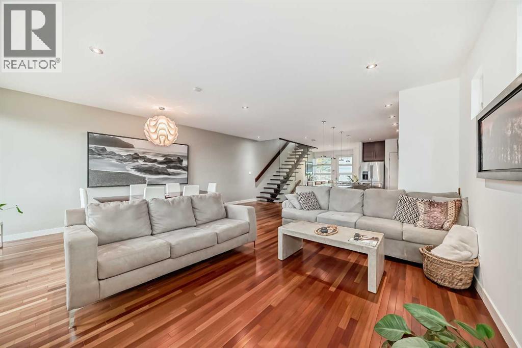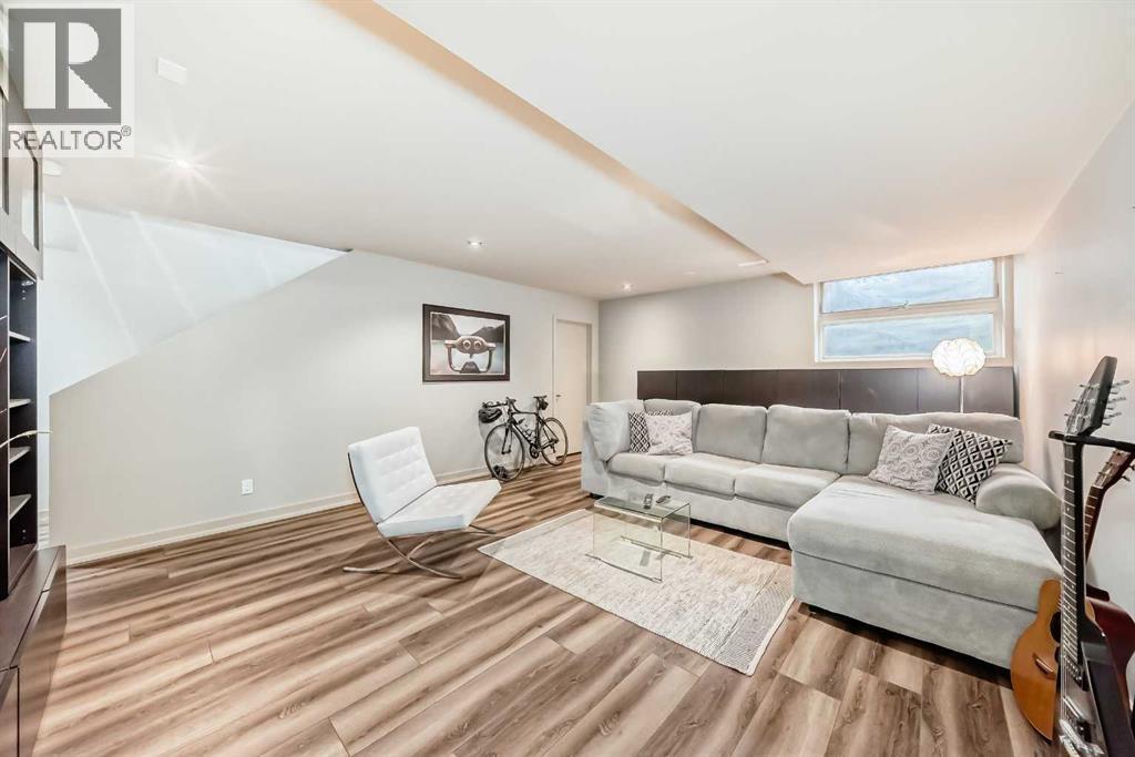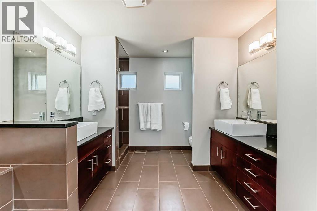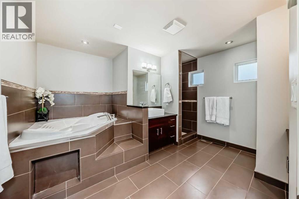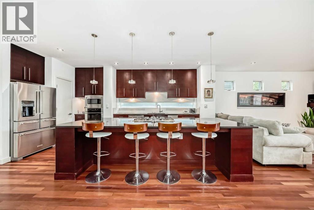 This contemporary, fully developed Inner City Home is loaded with upgrades thru-out and offers over 3200 SqFt of luxury living space complimented with a quiet location and city and mountain views from the Rooftop Patios. With 9 Foot Ceilings on the Main, central A/C and radiant in-floor heating in the Lower Level and all Bathrooms, the open concept floor plan starts with the bright Entry leading to the fully equipped gourmet Kitchen ideal for entertaining, complete with a 10 ft island with built-in wine rack, granite countertops, high-end stainless steel appliances including the gas down-draft cook top and built-in wall ovens, wine fridge and walk in pantry. The Dining area sits in front of a large floor to ceiling window, the Living Room features accent windows and a cozy gas fireplace with access to the backyard and there is the 2pce Guest Bath. The open riser staircase with glass panel wall leads up to the 2nd Level where you’ll find the massive Primary Bedroom offering a 5Pce Ensuite with walk-in shower and Air-Jet corner soaker tub plus, the 15’ walk-in closet with custom California Closet wood built-ins. There is also the 2nd Bedroom with it’s own 4Pce Ensuite, the Den/Flex area and Laundry Room. The Top Level has a 3rd Bedroom complete with a 3Pce Ensuite that can also be used as a Home Gym, Office or a Bonus Room with access to both Rooftop Patios which features stamped concrete with smoked glass panel rails (rails can be pushed out to make a full wrap around patio). The Lower Level is fully developed with a large Media/Family Room, the 4th Bedroom, another Full Bath and a Storage Room. Outside, you’ll find your private backyard oasis ideal for entertaining and the fully finished double detached Garage that’s roughed in for a heater. (id:6769