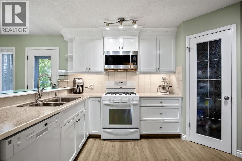 This move-in ready home is situated on a quiet street in the highly sought after family friendly neighborhood of Luxstone. As you approach you will notice the welcoming front porch and the pride of ownership including new siding, new shingles and almost all new windows (Completed in 2015). This well thought out layout offers gleaming vinyl plank flooring throughout and over 1850 developed sq ft. The front living room is a focal point and is flooded with natural light. A spacious “u shaped” kitchen is situated at the back of the home with timeless white cabinets that reach all the way to the ceiling, under cabinet lights, plenty of storage due to the corner pantry, a gas stove, and sink which looks onto the large dining room. Making it easy to entertain and connect. Off the bright dining room is direct access to your low maintenance outdoor oasis. Including a spacious deck, gorgeous stamped concrete patio, mature trees, garden boxes and an OVERSIZED 22x24 HEATED GARAGE! There is a convenient main level laundry room, and powder room tucked away for privacy. Upstairs you will find two well sized bedrooms each with walk in closets, and one with hard surface flooring. The oversized windows, in the primary draw in a ton of natural light, there is also plenty of storage with his and her closets. The oversized main bath has a separate shower, expansive vanity and relaxing soaker tub. The lower level is fully finished with a rec/game area, built in cabinets, and an additional living room. This updated home also offers fresh paint, all new flooring including stain resistant polyester carpet (2020), a newer high efficiency furnace (2020), hot water on demand (2023), as well as the comforts of air conditioning(2020). Perfectly situated close to schools, shopping, restaurants, and just a quick 5-minute drive to Deerfoot for an effortless commute. This home offers tremendous value, schedule your private showing or view the virtual tour today. (id:6769
