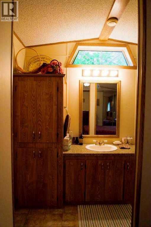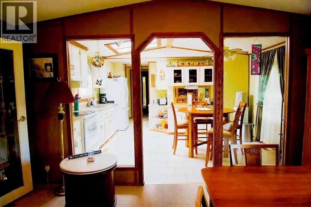 Welcome to 50+ living in this adult community designed with seniors in mind. This single wide mobile home with a generous addition creates a unique floor plan boasting a lovely living/ TV room overlooking the deck, a 4th bedroom (currently used as an office), and a generous foyer complete with large coat closet and ample seating to conveniently change footwear. The irregular shape of this front entry accommodates space to welcome several guests at one time. The original living room is now a semi-formal dining room, featuring a west facing large window, carpet flooring, and French doors to the adjacent living room. Glass partition walls either side of the entrance to the bright eat-in kitchen creates an open flow while delineating the space for furniture placement. The kitchen workspace is flooded with natural light from the skylight and window overlooking the deck. Other features include ample cupboard space , a built in China cabinet, and pantry with slide out shelving for convenience. Down the hall a step or two is the laundry/storage/mechanical room opposite the back door which accesses the generous deck. Here is an outdoor space for B-B-Q, summer suppers in a private space sheltered from northerly and westerly breezes, overlooking the fenced back yard. Back inside the entire south end of the home is the primary bedroom featuring a 3 piece ensuite. The walk-in shower there was created by "Bath Fitter" in 2020 replacing the original tub. Two good sized closets with mirrored doors complete this lovely retreat . At the north end of the home you will find 2 more bedrooms, a 4 piece bath with tub, large linen closet and a smaller utility closet for vacuum etc. This very well thought out floor plan clicks all the boxes for many couples. (id:6769