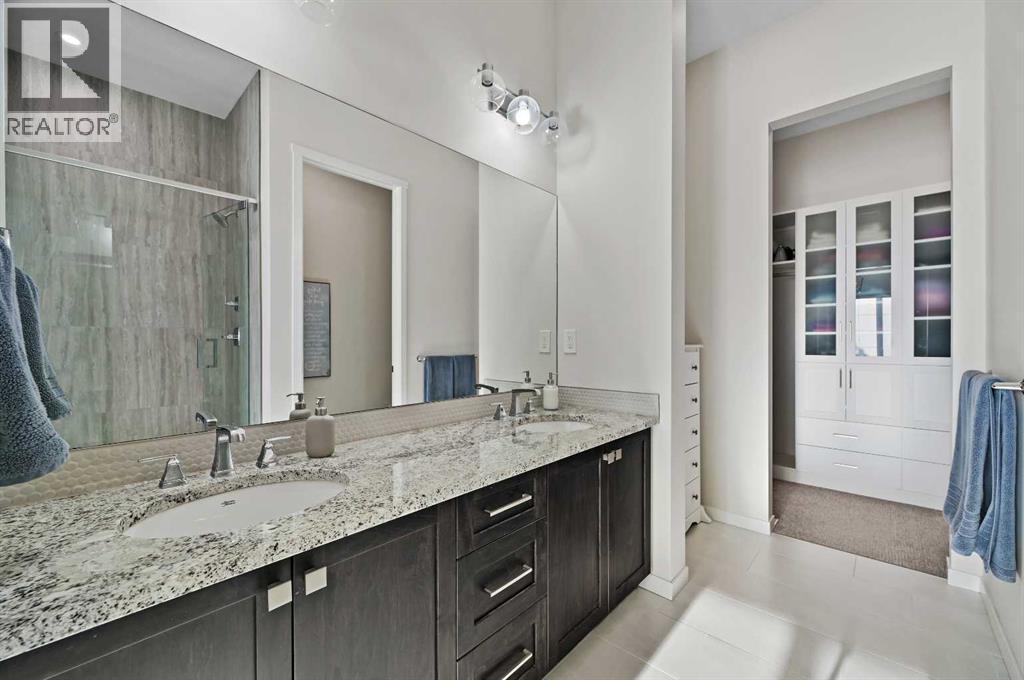 Experience refined living in this luxurious semi-detached villa bungalow, perfectly situated in the prestigious community of Riverstone — just steps from the tranquil Bow River and scenic walking and running paths. From the moment you step inside, you’ll be captivated by the home’s 10-foot ceilings, open-concept design, and abundant natural light that create an atmosphere of effortless elegance. The chef-inspired kitchen is a true showpiece, featuring stainless steel appliances, granite countertops, and an oversized island ideal for both culinary creativity and stylish entertaining. The living room exudes sophistication with its gas fireplace as the focal point and double patio doors leading to a private backyard oasis. The primary suite is a serene retreat complete with a spa-like ensuite featuring a dual vanity, heated floors, water closet, and a beautifully appointed California walk-in closet. Conveniently located off the mudroom/laundry area, a two-piece powder room and double attached garage provide both practicality and ease. Lower level offers exceptional versatility with 2 spacious bedrooms, a full bathroom, and an expansive recreation area perfect for entertaining or relaxing. A dedicated gym, home office, or den adds even more flexibility to suit your lifestyle. Every closet throughout the home is generously sized, offering abundant storage and thoughtful design at every turn. Additional highlights include central air conditioning, professional landscaping, Gemstone exterior lighting, fully finished drywalled garage, underground irrigation, and upgraded dishwasher, washer and dryer. Discover the perfect harmony of comfort, style, and quality craftsmanship in this remarkable Riverstone residence — a home that truly exceeds expectations! (id:6769