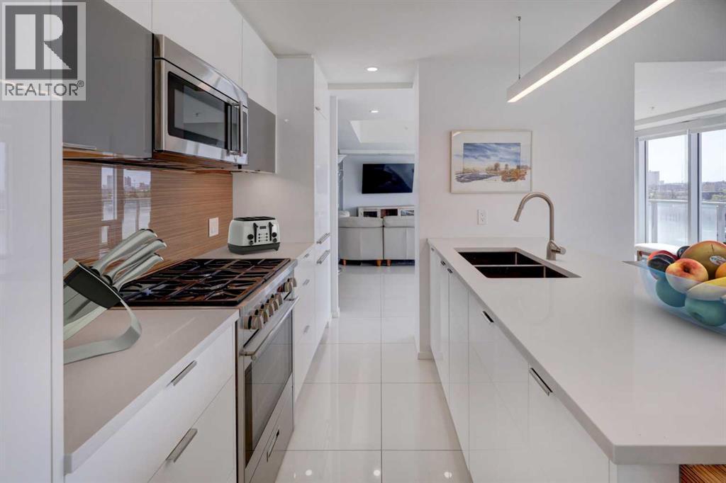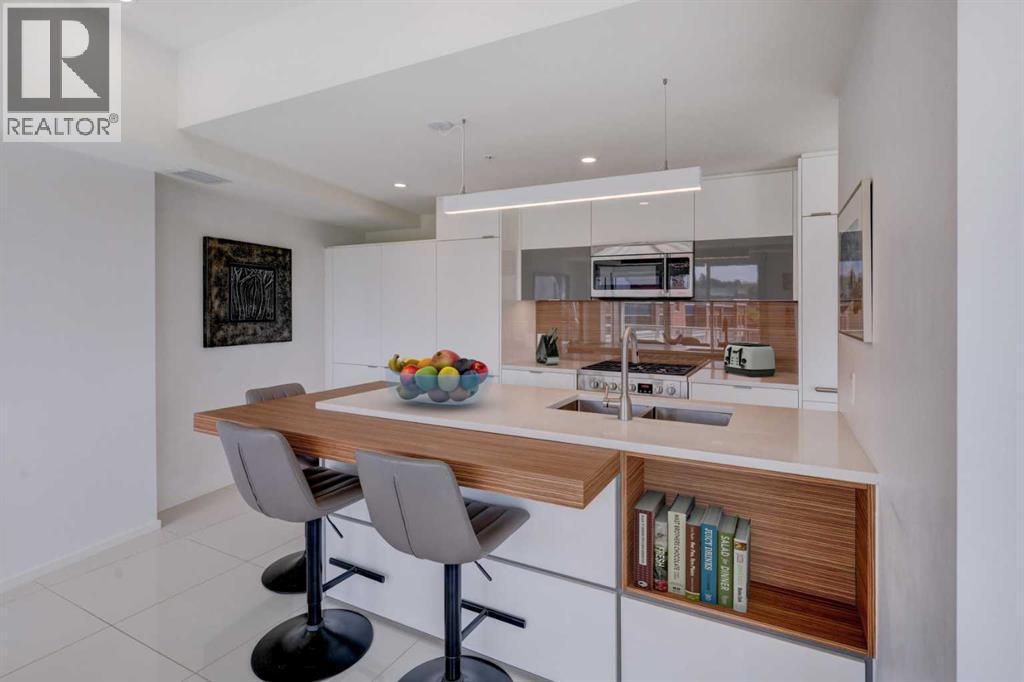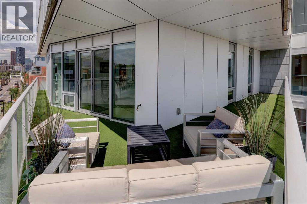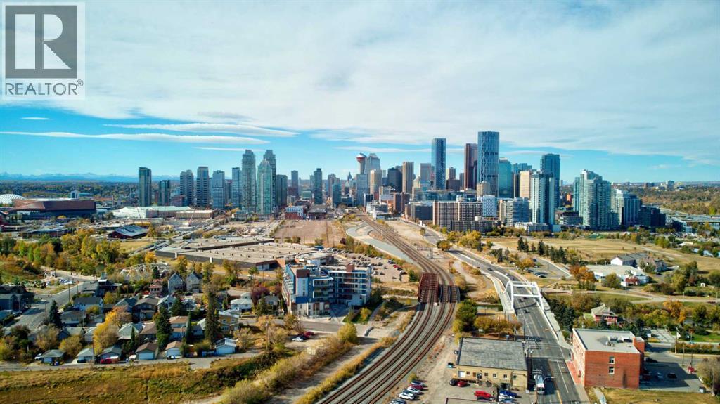 Welcome to unit 601, a stylish 1250+ sq ft sub-penthouse in the modern Avli On Atlantic- a very sleek building in historic Inglewood, steps to great shopping, excellent restaurants, cool pubs and an easy walk to the Bow Valley pathways, Fort Calgary,The Saddledome and downtown. This large 2 bedroom, 2 bathroom, 2 titled parking stall unit features a wall of windows flooding the main living space with natural light, architectural touches - cove ceilings, concrete pillar, gleaming tile floors and custom roller blinds. The European style kitchen has ample counter space, built in pantry, integrated dishwasher & fridge, additional cabinets and an extended quartz island with wooden accent, all over looking the dining and main living area, perfect for entertaining. Dual sliders open to the large 300+ square foot wrap around patio (with n-gas hook up) where you have stunning views of 9th Avenue, Ramsey, Inglewood and downtown. The large primary bedroom has modular storage cabinets and a 4 piece ensuite with floating dual vanity & heated floors, an excellent retreat. This unit has it all including ensuite laundry and storage, additional large storage locker, secure bike storage, visitor parking, guest suite and common furnished terrace (3rd floor) for larger get-togethers. The building is very well taken care of and the location is supreme. (id:6769