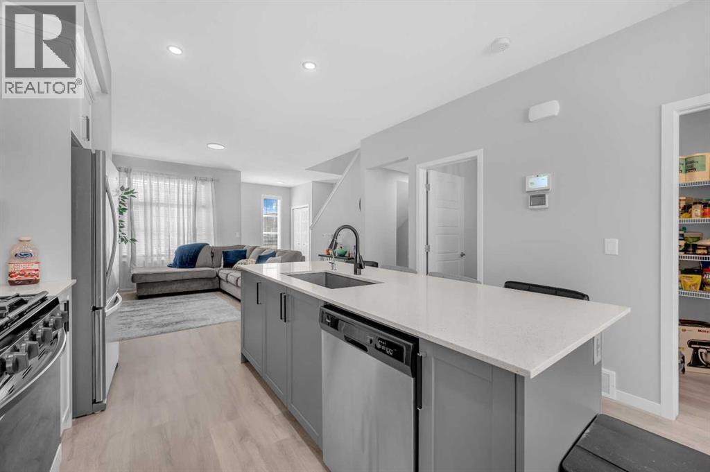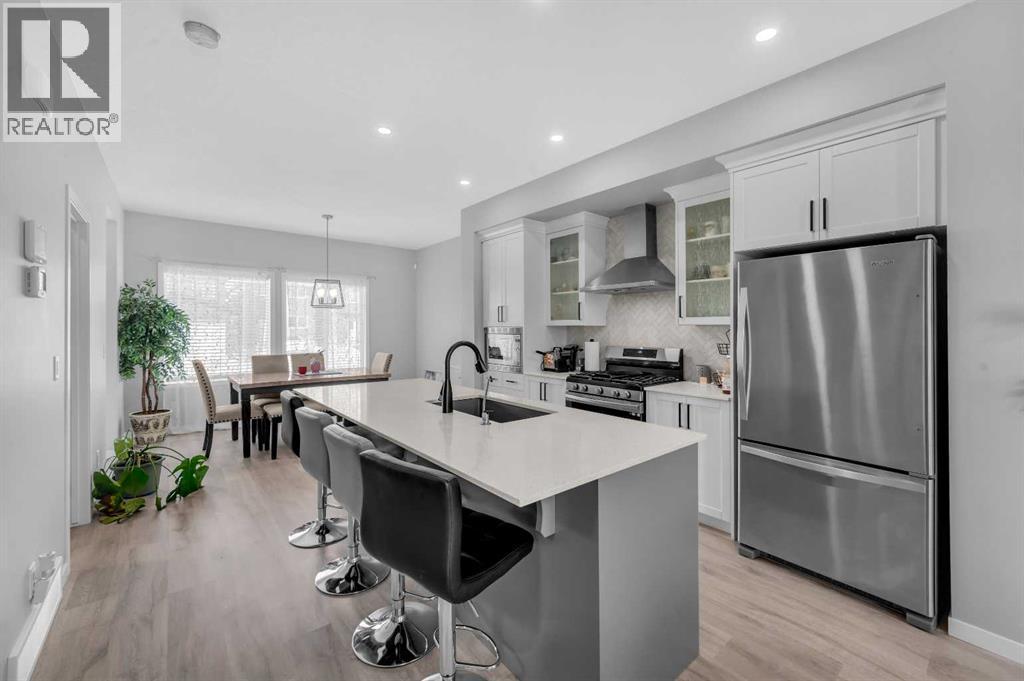 Welcome to this beautifully maintained 2 storey home, located in the Cornerstone community in NE Calgary. This community is well-known for its close- proximity to schools, parks, playgrounds, shopping, groceries, and convenient access to all major highways—making it an ideal place to call home. The main floor features an open-concept design with upgraded flooring; half bathroom, a spacious living and dining area filled with natural light from many large windows. The chef-inspired gourmet kitchen is equipped with stainless steel appliances, built-in microwave, gas stove, and hood fan. Upstairs, you’ll find the primary bedroom with a luxurious ensuite and walk-in closet. Two additional generously sized bedrooms, a full common bathroom, and a convenient laundry room completes the upper floor. The basement boasts a separate entrance, one-bedroom, full bathroom and a large living area which makes it a great option for extended family and guests. Don’t miss this opportunity, call your favorite realtor today…. (id:6769