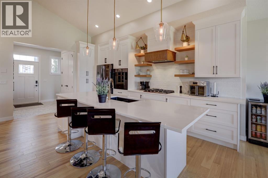 Beautifully Upgraded Bungalow on the Canals! This rare 4 bedroom, 4 bathroom home with a main floor office offers over 3000sqft of thoughtfully designed living space and a desirable west facing backyard overlooking the water. Step inside to find soaring vaulted ceilings, expansive windows that capture the canal views, warm hardwood floors, custom lighting and an abundance of built-in’s throughout. the freshly painted main floor showcases a dream kitchen with quartz countertops, SS appliance package, a statement hood fan, large Island, walk in pantry plus an additional wall pantry. The open concept design flows seamlessly into the dinning and living areas, while patio doors lead to the spacious upper deck complete with gas and water lines. The primary retreat enjoys peaceful canal views, double door entry, walk in closet and a luxurious 5pc ensuite. Another bedroom, a full bathroom, custom mud room and an upgraded laundry room with new cabinetry, pull out racks and countertop compete the main level. The fully finished lower level is perfect for entertaining or relaxing, featuring a large Rec room with wet bar, west facing windows and walkout access to the covered patio and fire pit area. Two additional bedrooms are located downstairs including one with a private ensuite, plus a versatile flex room with barn doors, ideal for a gym, office or hobby space. Upgrades includes new appliances, some new cabinetry throughout, main floor lighting and LED pot lights, new A/C, new water softener and more! This Canal front property combines modern updates with exceptional functionality and is an absolute must see! Book a showing today (id:6769