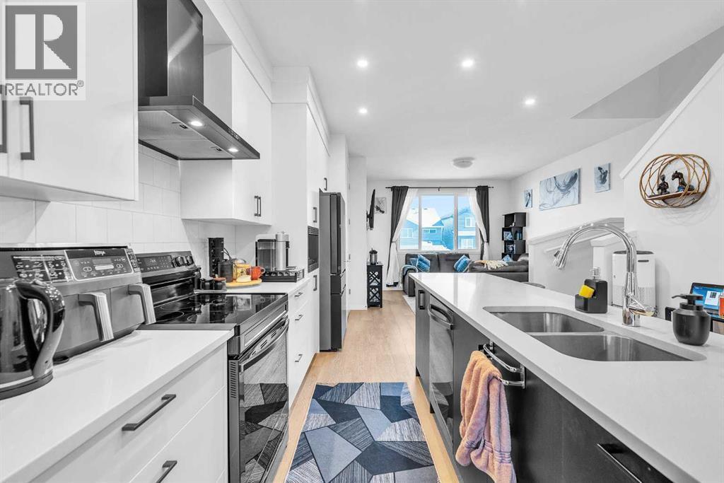 Welcome to your dream home in Glacier Ridge! This beautiful duplex with a finished basement and detached double garage offers over 2,200 sq. ft. of developed living space in one of NW Calgary’s most desirable communities. Step inside and be greeted by 9’ ceilings, 8’ doors, and luxury vinyl plank flooring throughout the main level. The open-concept layout includes a versatile flex space—perfect for a reading nook, home office, or small formal living area—plus a spacious dining nook, stunning kitchen, and inviting great room. The chef-inspired kitchen features quartz countertops, white soft-close cabinetry, a bold black island, ample pot lighting, and upgraded high-end appliances. The great room is ideal for entertaining family and friends, with direct access to the completed deck with privacy screen via the convenient mudroom. Upstairs, you’ll find three bedrooms, two bathrooms, and a dedicated laundry room with built-in linen storage. The primary suite includes a walk-in closet and a private ensuite with a walk-in shower, while both additional bedrooms also feature walk-in closets. The professionally finished basement offers even more living space, including a large rec room, wet bar, fourth bedroom, and full 4-piece bath—perfect for guests or family movie nights. Located close to shopping, restaurants, Costco, and Symons Valley Ranch Market, this home combines luxury, functionality, and location. (id:6769