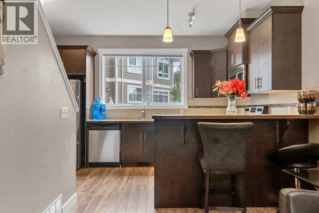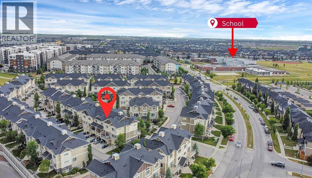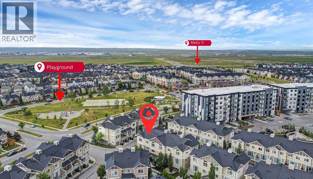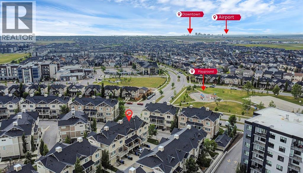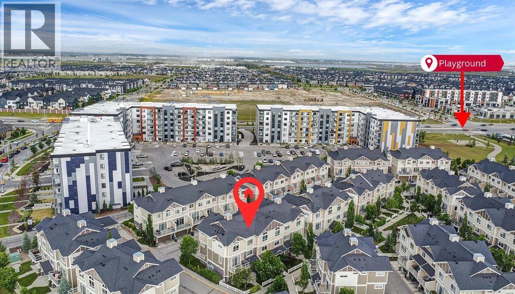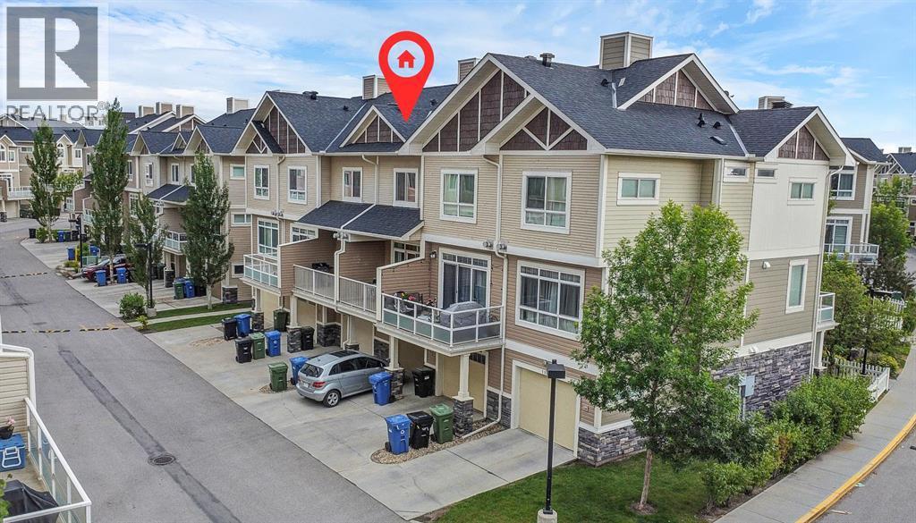 Welcome to this stylish and well-appointed 2-bedroom townhome in the vibrant community of Skyview Ranch. Thoughtfully designed for modern living, this multi-level home offers exceptional comfort, functionality, and convenience, complete with an attached single garage and two private balconies.The bright and open main living area features a spacious layout with large windows, allowing for an abundance of natural light. The contemporary kitchen is equipped with sleek cabinetry, stainless steel appliances, and ample counter space, making meal preparation a pleasure. The adjacent dining and living areas flow seamlessly, perfect for entertaining or everyday living. Step out onto the first of two balconies to enjoy fresh air and sunshine—ideal for morning coffee or evening relaxation.Upstairs, you'll find two generous bedrooms, including a primary suite with beautiful transom windows and 4-pc ensuite. A full bathroom, convenient upper-level laundry, and ample closet space complete the upper floor. The entry level offers room for a home office or flex room and direct access to your attached single garage, providing both security and ease in all seasons.Located in a well-maintained complex close to parks, playgrounds, schools, shopping, and transit, this townhome offers a perfect opportunity for first-time buyers, young professionals, or investors. Don’t miss your chance to own a beautiful home in the growing and family-friendly community of Skyview Ranch. Book your private viewing today! (id:6769