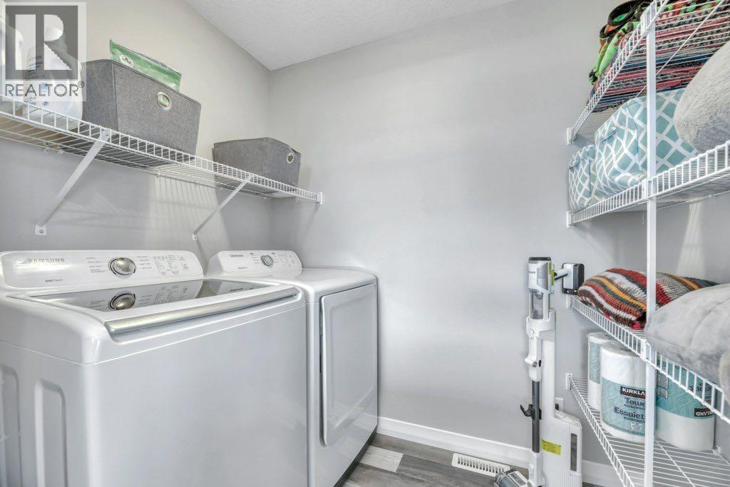 Check out this beautiful house with an amazing layout! Fall in love with your new home in the vibrant, family oriented community of Evanston. This unique side by side home offers modern stylish finishes and a super functional layout on a prime corner lot. Striking red siding, contemporary architecture, well maintained landscaping and the coolest weather resistant fence made from bamboo make this property stand out from the crowd. You’ll feel at home right away as you step into the bright and sunny living space with its soaring vaulted ceilings and spacious open concept layout with tons of windows. You’ll love the well planned kitchen with popular white cabinetry, gleaming stainless steel appliances, quartz counters and a centre island with seating for friends and family to gather. A cute little coffee or appliance station leads to your oversized pantry / storage room. The kitchen is also open to the dining area and a back door leads to your deck for easy access for grilling and outdoor dining. 2 more closets on this level provide ample storage for outer wear and other items. The second level of this home has one bedroom plus a full bath creating a perfect private space for a child or teen’s room, guest room or maybe a home office. The spacious owner’s retreat is on the top level. The 5 pc ensuite includes his and hers sinks, a good sized soaker tub and a separate shower plus there is a generous walk in closet. You’ll love the convenience of upstairs laundry and the vaulted open hallway takes advantage of the many windows on the main level creating a bright and open feel. You can expand your living space as needed in the clean, dry and unspoiled basement. Big windows give you the opportunity to add additional bedrooms if desired. The backyard has a nice deck and plenty of grassy area for kids and pets to play plus there is room to add a garage with back alley access. You are going to love living in Evanston. This modern suburban community offers an abundance of gre en spaces, great local schools and access to all urban amenities and major roadways. Don’t miss your chance to call this one home. New siding October 2025 (id:6769