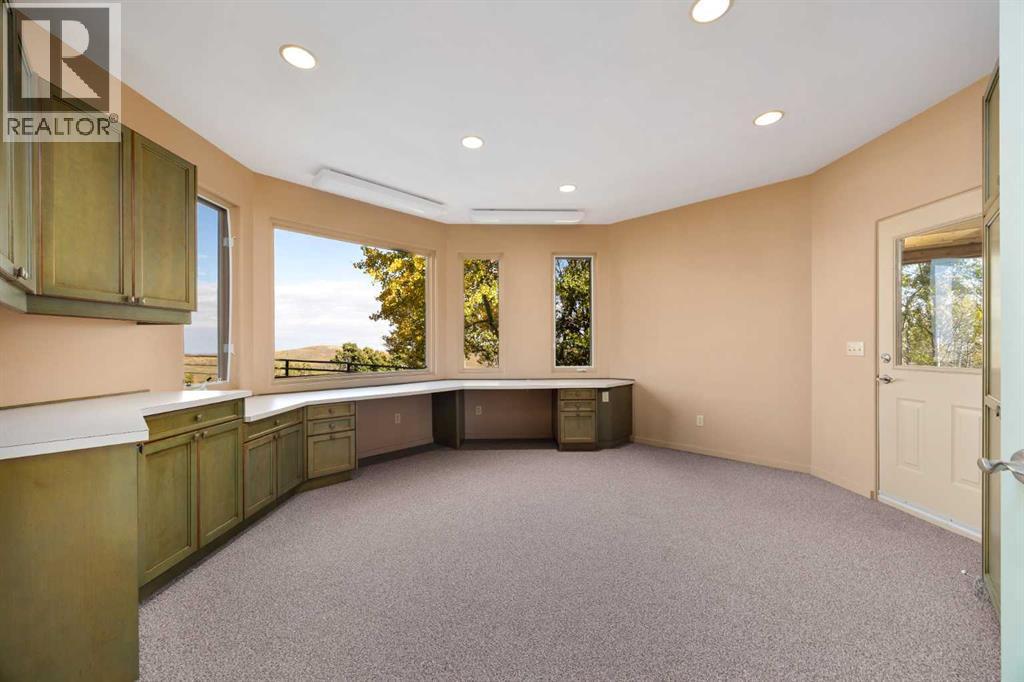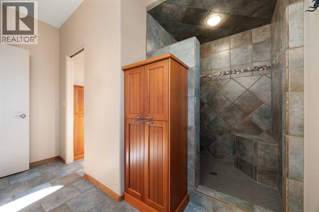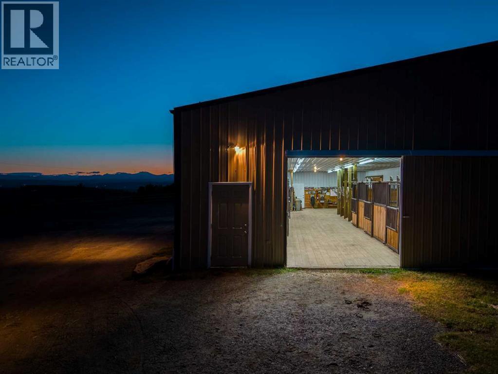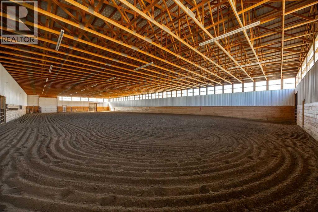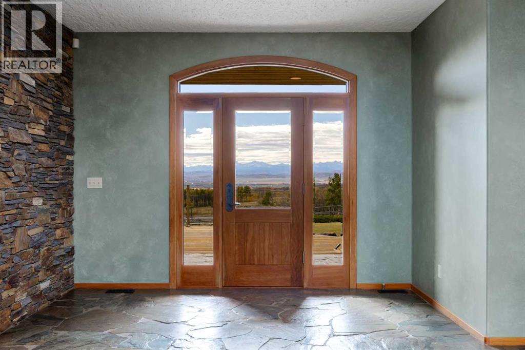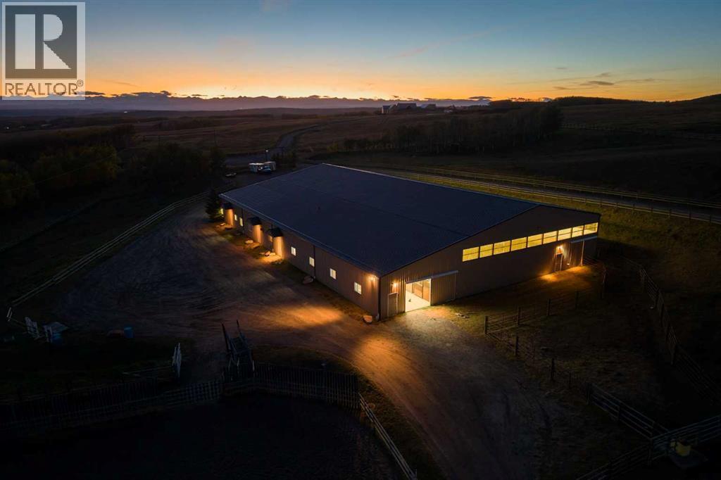 Welcome to an extraordinary 160-acre country estate where luxury, privacy, and equestrian excellence unite within a natural wildlife corridor. Panoramic views of the Rocky Mountains and Calgary skyline provide a breathtaking backdrop to this serene yet conveniently located property.A gated, rail-lined drive leads to a striking 3,483 sq.ft. custom walkout bungalow with over 6,200 sq.ft. of developed living space. Designed with light, proportion, and warmth in mind, this five-bedroom, five-bath residence features soaring ceilings, expansive windows, cherry hardwood floors, and handcrafted millwork. The flagstone foyer opens into a great room centered around a wood-burning stone fireplace that embodies both comfort and sophistication.The gourmet kitchen is a showpiece of design and function with granite countertops, bird’s-eye maple cabinetry, hand-forged hardware, high-end appliances, a copper hood fan, and cedar-lined vaulted ceiling. It flows seamlessly into the dining and living areas, extending to a wraparound cedar deck that frames sweeping mountain and pasture views—perfect for entertaining or quiet evenings outdoors.The spacious primary suite overlooks the Rocky Mountains and offers a private retreat with a gas adobe-style fireplace, deck access, walk-in closet, and spa-inspired ensuite. Thoughtful utility spaces include a custom mudroom, oversized pantry, and an exceptional laundry room. The fully developed walkout level provides a large recreation area with a second stone fireplace and abundant natural light.The home’s timeless exterior features low-maintenance adobe-style stucco, natural stone accents, a clay tile roof, and covered verandas surrounded by professionally landscaped grounds with underground irrigation. Every element reflects an effortless blend of elegance, practicality, and connection to the land.Beyond the home lies a world-class equestrian facility designed for year-round enjoyment. A 70’x160’ indoor riding arena with excellent footing and natural light adjoins a main working barn featuring six box stalls, four tie stalls, a wash rack, heated tack room, and comfortable viewing lounge with full kitchen, laundry, and bathroom. A large garage bay provides ample room for trailers and equipment.A separate hip-roof barn includes 2,400 sq.ft. of inviting living quarters—ideal for staff, guests, or extended family—above a fully insulated and heated shop with additional stalls. Outdoor amenities include a 100’x150’ arena, multiple rail-lined paddocks, each with heated waterers and shelters and hay storage. A seasonal creek, rolling pasture, and aspen groves weave through private riding trails that invite exploration.A 3,000-gallon cistern, two wells, and a rainwater catch system support residential, agricultural, and equine needs, ensuring efficiency and sustainability.Only 28 minutes from South Calgary, 15 to Okotoks, 20 to Spruce Meadows, and 10 to Strathcona-Tweedsmuir School, this estate redefines country living. (id:6769