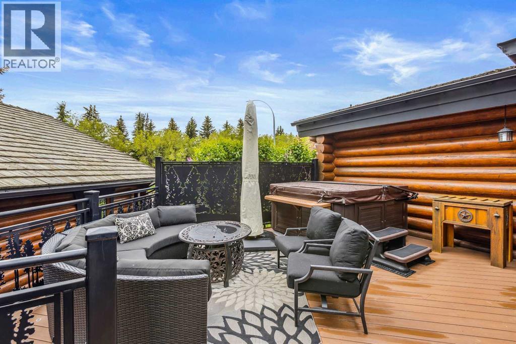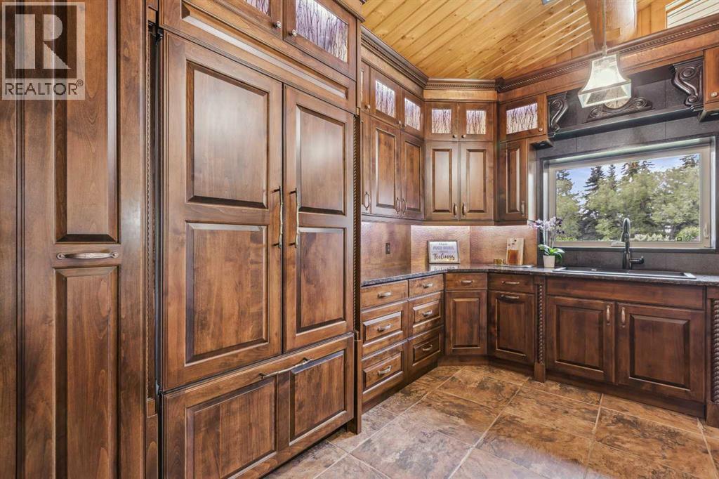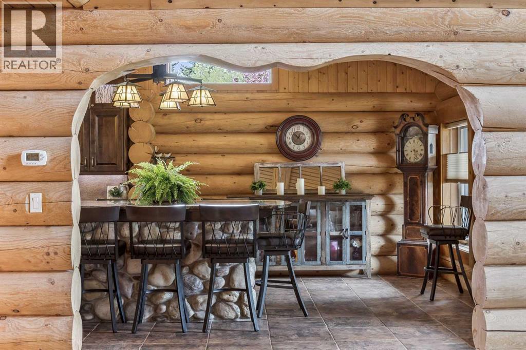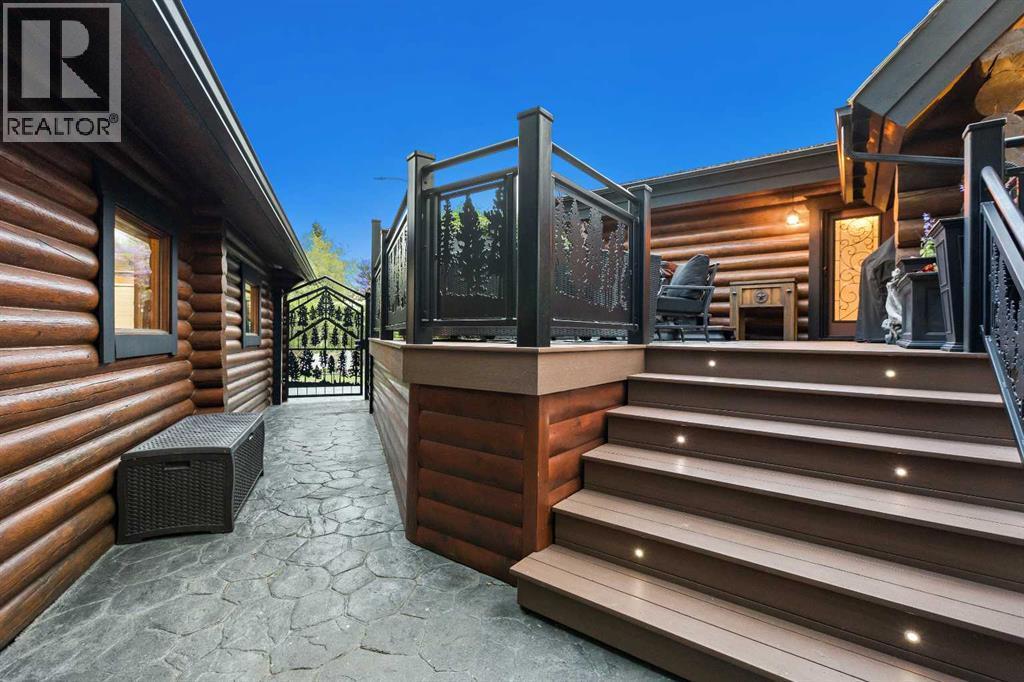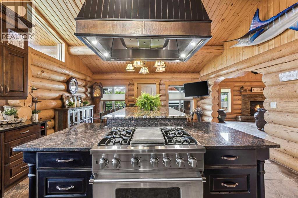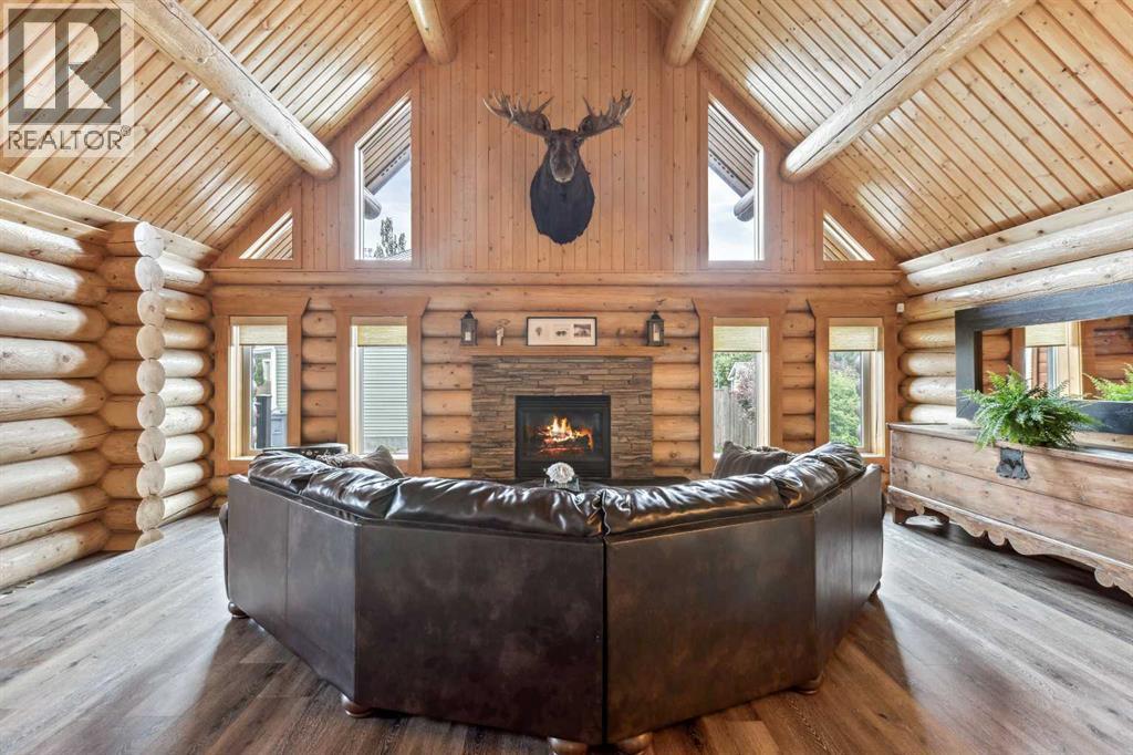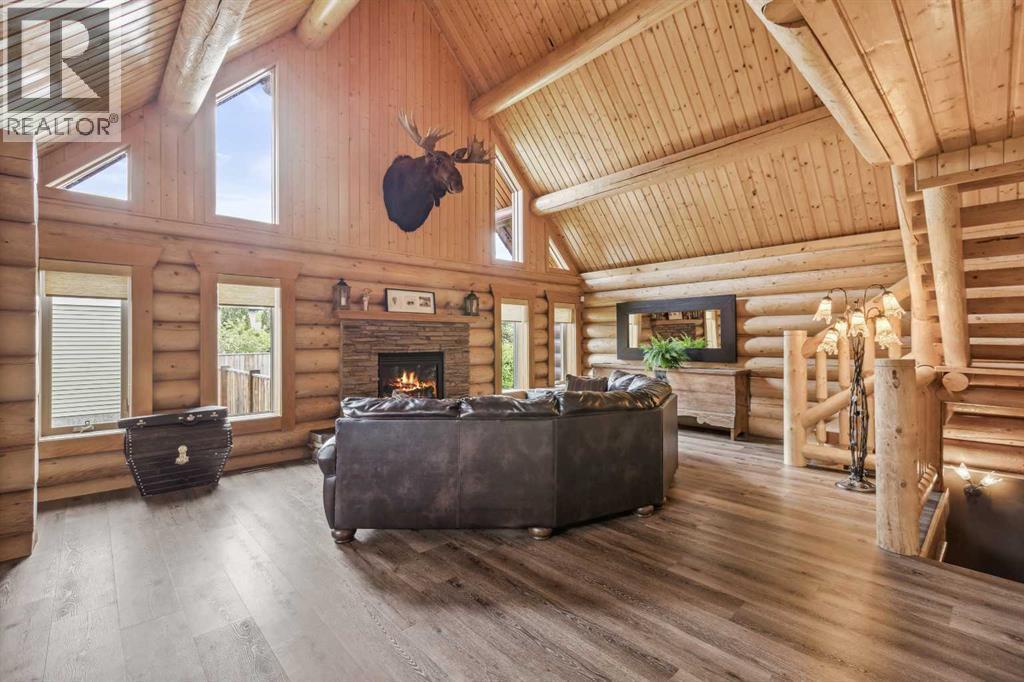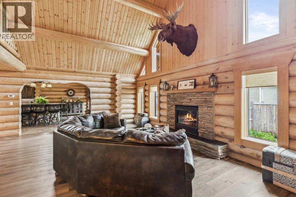 Discover luxury living in this custom immaculate home, nestled on just over 1/3 acre in a private cul-de-sac location and backs onto a 4 acre dry pond. This stunning pristine property offers over 3,400 square feet of developed space, thoughtfully designed to cater to the desires of discerning buyers who appreciate the charm of log homes and the privacy of a secluded location. Constructed with precision and artistry, this log home showcases the beauty of natural wood in every corner. The grand entrance leads you into a space where exposed log beams and walls exude rustic elegance, blending seamlessly with modern amenities. With 5 bedrooms and 3 full bathrooms, this home provides ample space for family and guests. The loft-style primary bedroom with skylights is a true retreat, featuring a luxurious copper soaker tub and seated vanity in the ensuite bathroom. The heart of the home boasts a custom kitchen equipped with high-end appliances and cabinets. The island seats 7 with river rock brazilian granite. Perfect for culinary enthusiasts and entertaining guests. Enjoy cozy evenings by the fireplace, take in the soaring ceilings and experience the comfort of in-floor heating throughout the home on every level. Two main floor bedrooms, a full bathroom, Main floor laundry, spacious mud room and a plethora of storage options add to the convenience and functionality of this home. The fully developed basement includes a spacious family room with a wet bar, built in's, an exercise space, 2 bedrooms, and a full bathroom with a hydrotherapy tub. The yard is a masterpiece of landscaping, featuring mature trees and shrubs, nighttime lighting, and a custom firepit area with backlit steel engraved panels and built-in benches. Enjoy outdoor gatherings in the custom firepit area or relax on the spacious deck soaking in the hot tub or lounging in the sun. There's also RV parking and two large storage sheds. Perfect for car enthusiasts, the tandem triple oversized garage provides ample space for vehicles and storage. Strathmore offers a full range of amenities, including excellent schools, sports facilities, parks, and pathways. This property combines the tranquility of a private retreat with the convenience of nearby urban amenities. This exceptional log home is a rare find, offering the perfect blend of rustic charm and modern luxury. Whether you are looking for a peaceful retreat or a place to entertain family and friends, this property has it all. Schedule your private viewing today and step into a world of unparalleled beauty and comfort. Don’t miss the opportunity to make this home your reality. (id:6769