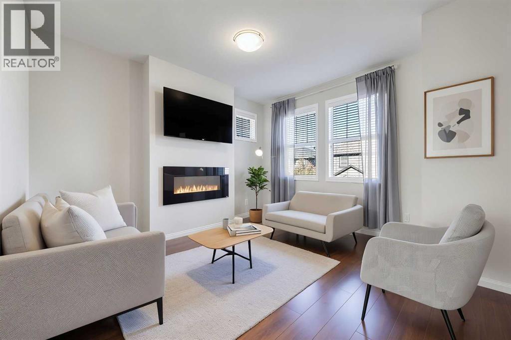 BRIGHT END UNIT | DOUBLE GARAGE | FINISHED WALKOUT BASEMENT | SCHOOL & NATURE PRESERVE STEPS AWAY! This spacious end unit in the family and pet-friendly Bridges at Williamstown complex offers an exceptional location with a south-facing balcony and enclosed yard that overlook the central courtyard. This property also provides easy access to an absolute abundance of amenities including playgrounds, parks, pathways, sports fields, Herons Crossing School just steps away, direct access to Williamstown Nose Creek Preserve right from the complex and close proximity to Reunion Pond, Woodside Golf Course and the shops, services, restaurants and retail along Veterans Boulevard.As you enter the property you will discover a main floor designed for both comfort and functionality. The spacious front foyer welcomes you with a large closet and easy access to the main and lower walkout levels of the home. Wide plank laminate floors flow throughout, enhancing the open-concept layout. The well-appointed kitchen offers rich cabinetry, stainless steel appliances, a pantry closet, ample granite countertop space, island with sit up breakfast bar, nook and a stylish stacked tile backsplash. The main living room is connected to the designated dining room and is warm and welcoming with bright windows and an attractive electric fireplace, perfect for relaxing evenings or gathering with friends. The main floor is completed with a half bathroom and a functional flex space that is ideal as a sitting room, reading area or computer station and provides direct access to the balcony. Upstairs, the home continues to impress, the spacious primary bedroom is a true retreat offering room for a king-sized bed, a generous walk-in closet and a 4-piece ensuite with a double vanity and a fully tiled shower. There are 2 additional bedrooms that offer size and versatility - ideal for kids/teens or a home office. Finishing off the upper level is a 4-piece bathroom with a large vanity and full tub/show er combination and a convenient laundry closet. The fully finished lower walkout level is as versatile as it is welcoming. It can easily serve as a 4th bedroom with a separate entrance and dedicated bathroom, or as a multi-use space for a home theatre or games room. Highlights include a modern 3-piece bathroom with in-floor heating, privacy door separating the space and oversized windows. From this level, you’ll also find access to the utility room and the attached double garage.The outdoor living areas are outstanding with a sunny, south-facing raised balcony on the main level that overlooks the courtyard and a good-sized lower concrete patio and fenced yard off the lower level, perfect for sipping your morning coffee or just relaxing and enjoying the space. Additional features include 9’ ceilings on the main level, new stove and over the range microwave (2024), new paint (2025), large driveway with room for 2 vehicles, ample visitor parking close to the unit and more. Welcome Home. (id:6769
