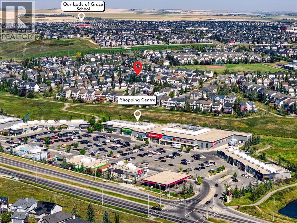 Move your family in before Christmas and enjoy the holidays in your new home. This well-maintained two-storey offers over 2,080 sq.ft. above grade with a fully developed walk-out basement, set on a quiet street in the Creekside area of Evanston. Families will appreciate being a very short walk to Kenneth D. Taylor School, with three additional schools located within the community, making daily routines easy and convenient. The main floor features a practical layout with a front office, refinished hardwood floors that continue up the staircase and throughout the upper level, and the removal of popcorn ceilings in favour of a modern textured finish. The kitchen offers quartz counters, new tile backsplash, stainless steel appliances and a walk-through pantry connecting to the laundry and garage entry, while the living room centers around an upgraded gas fireplace and the dining area opens to an oversized Duradek-covered deck with a gas line and BBQ included. Upstairs are three bedrooms plus a spacious enclosed bonus room that works well as a family or media room, or could easily serve as a fourth bedroom. The primary suite is generous in size and features a walk-in closet and an updated ensuite with dual sinks, a soaker tub and a separate shower. The walk-out basement provides a comfortable media and entertainment space with built-in TV, speakers, gas fireplace and wet bar, leading to a covered patio with privacy shades and a landscaped yard with grass and trees. Recent updates include a new roof (2024) and hot water tank (2022). Located steps from parks, pathways and nearby shopping at Creekside and Evanston Towne Centre, with quick access to Stoney Trail, Shaganappi and major routes, this home combines space, function and family convenience. (id:6769