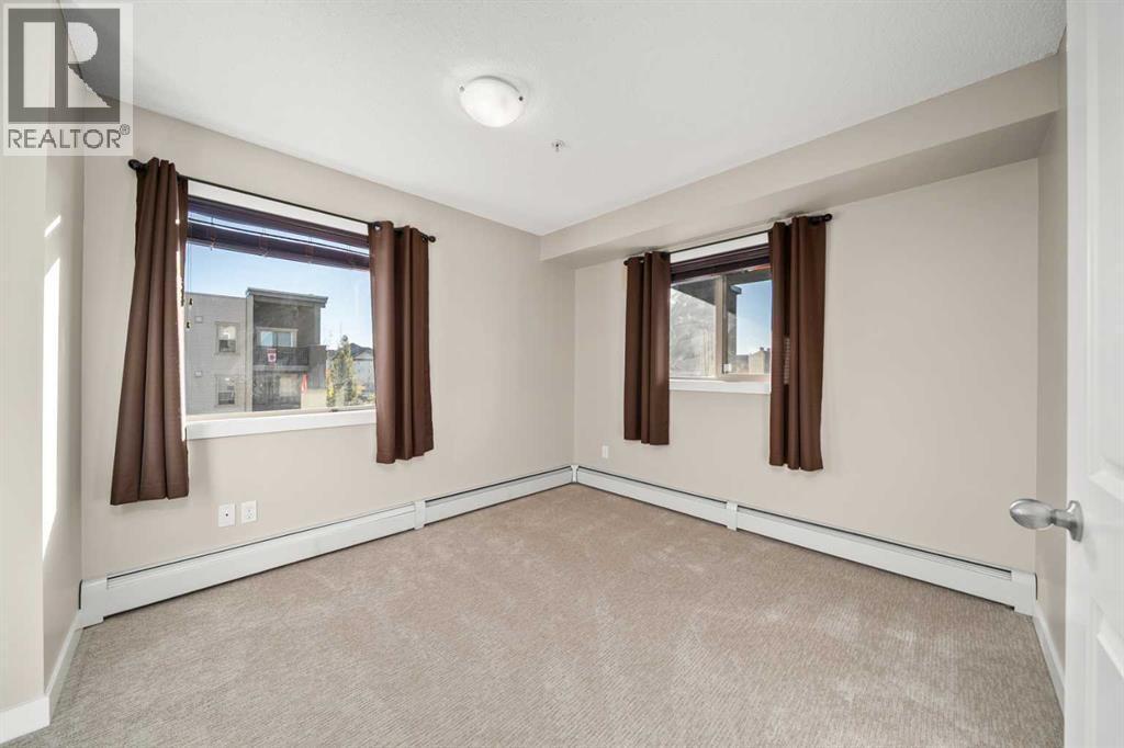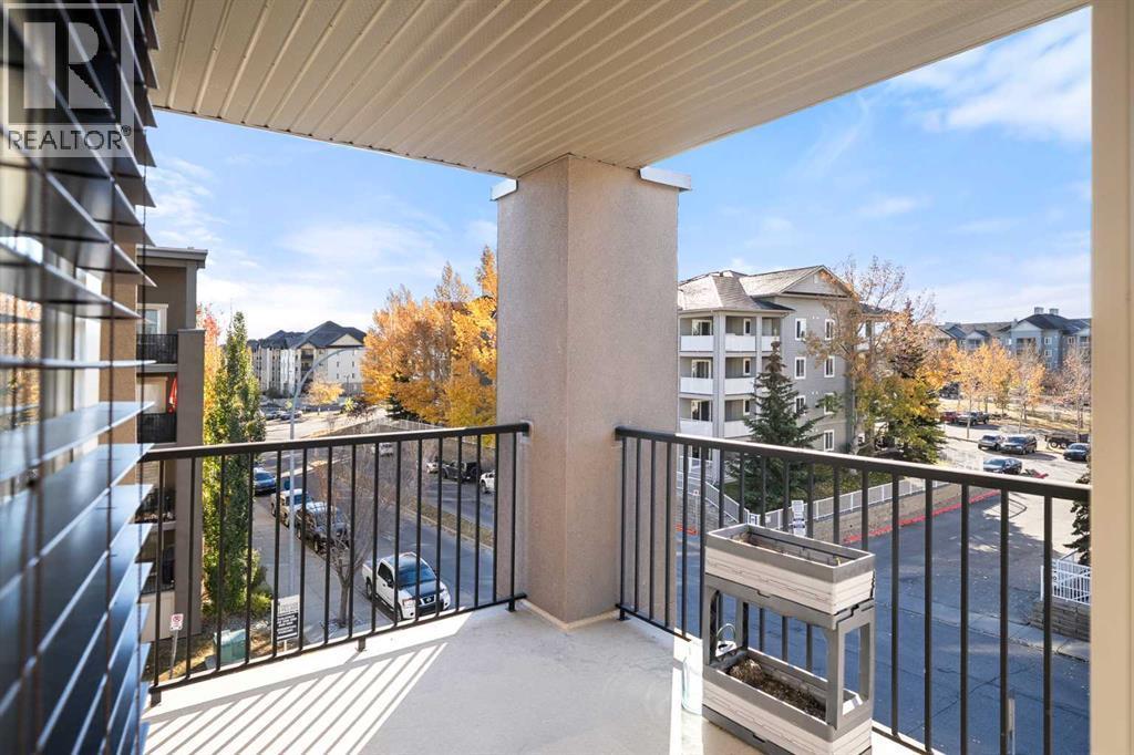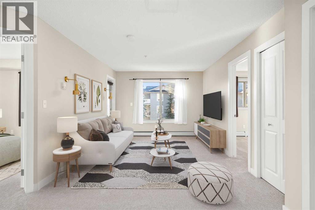 Attention first-time home buyers, down-sizers and investors! This 761 sq ft, 2 BEDROOM, 2 BATH, CORNER UNIT CONDO is AFFORDABLE AND MOVE-IN READY with FRESH PAINT AND BRAND NEW CARPET. Upon entering, you are greeted by an open-concept design. To the right, is a flex space that could be used as a dining area, an office or for your favorite hobby. A front closet, a 4 piece bathroom and in-suite laundry complete this corner of the condo. To the left, the kitchen offers modern cabinetry, granite counter tops, trendy black/stainless steel appliances and a sit-up eating area and is open to the bright living room. On one side of the living room is the main bedroom featuring a walk-through closet and a 4pc ensuite. The second, good-sized bedroom is located on the opposite side of the living room. The living room is bright and welcoming. Step out the living room door onto your covered balcony which is a great place to barbeque, relax or entertain. The complex is PET FRIENDLY, allowing one dog or cat. This condo is complete with one underground, heated, titled parking spot and visitor parking is available outside the main doors. Creekside Crossing condo building is conveniently located in the center of Airdrie and is close to shopping, Nose Creek walking trails, Iron Horse Park and all that downtown Airdrie has to offer. Easy access to highway QE2. Call your favorite realtor today to view. (id:6769