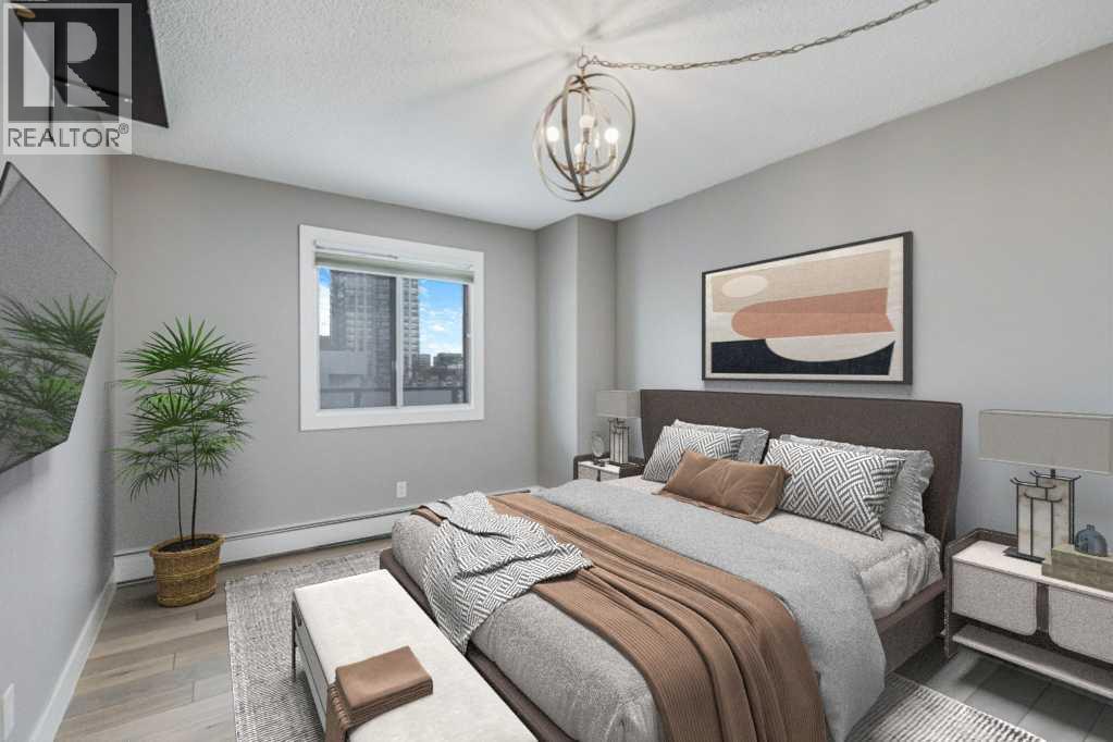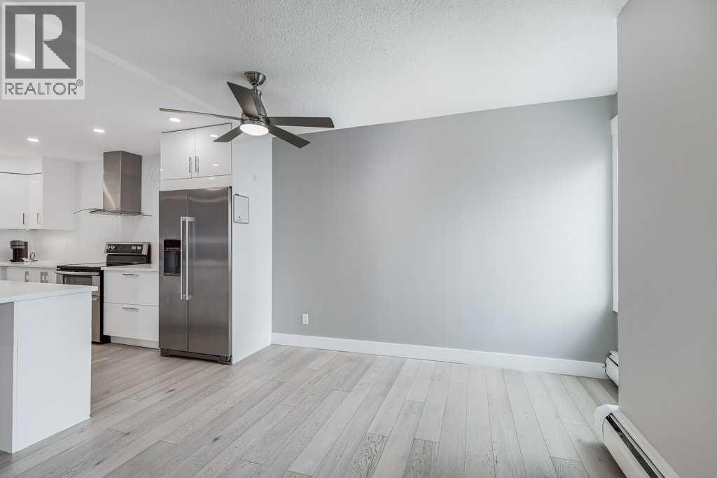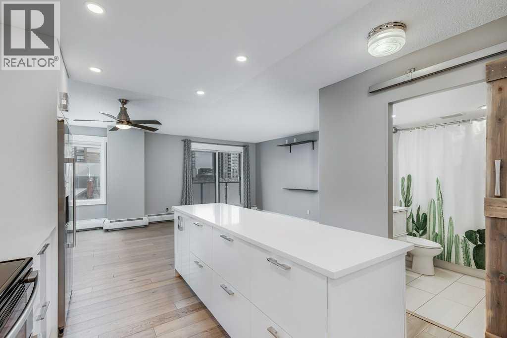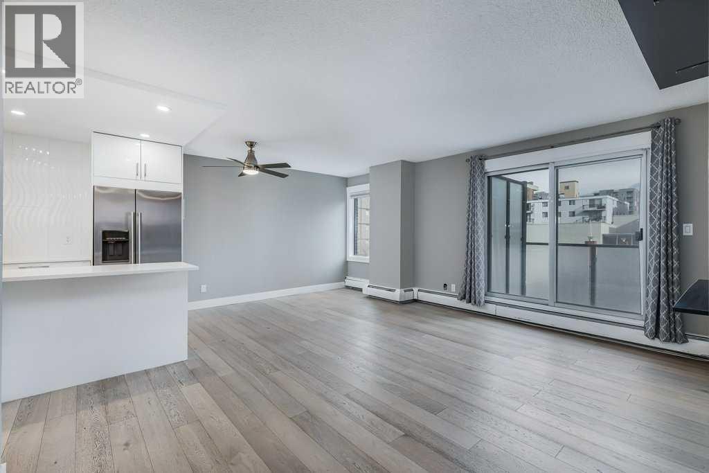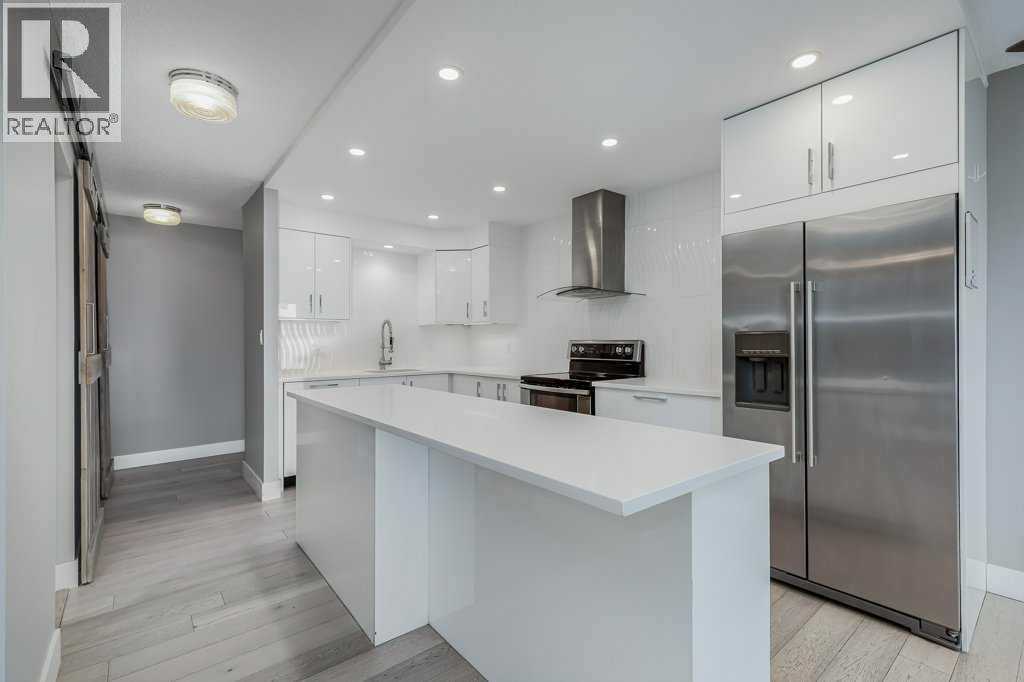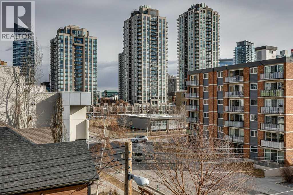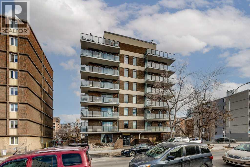Modernly updated 2 bedroom unit with outstanding city views. Phenomenally located kitty-corner from Connaught Park and off-leash area (perfect since the building is pet-friendly upon board approval), mere steps to the infinite amenities on 14th Street and the vibrancy of 17th Ave! The perfect inner-city lifestyle awaits with nightlife, dining, pubs, cafes, diverse shops and much more just moments away then come home to a quiet treelined street. Inside this beautifully updated unit are gleaming hardwood floors, a neutral colour pallet, trendy barn sliding doors, designer finishes and cleverly incorporated storage solutions. The open floor plan is bright and spacious with clear sightlines amongst all the principal rooms encouraging unobstructed conversations. Culinary adventures are inspired in the stunning kitchen featuring full-height sleek cabinetry, stainless steel appliances, quartz countertops and a large island with casual breakfast bar seating. A dedicated dining area easily hosts larger gatherings, while the adjacent living room invites you to sit back and relax. The expansive “L” shaped, covered balcony entices warm weather barbecues, peaceful morning coffees and unlimited people watching with the city lights as the enchanting backdrop. Both bedrooms are generously sized with large closets and easy access to the stylish 4-piece bathroom. In-suite laundry too for ultimate convenience. Assigned underground parking adds to your comfort, allowing you to leave your vehicle at home while you explore Calgary’s premier entertainment district. Everything is close at hand plus just a quick bike ride to the river, downtown and beyond! Truly an outstanding location for this move-in ready home. (id:6769
