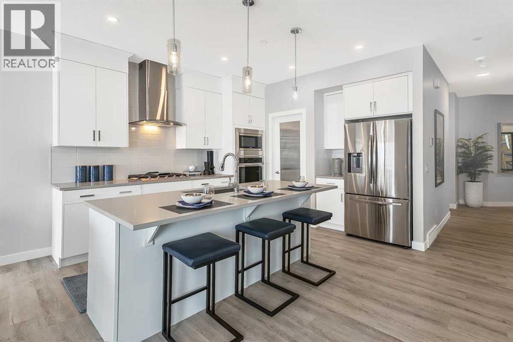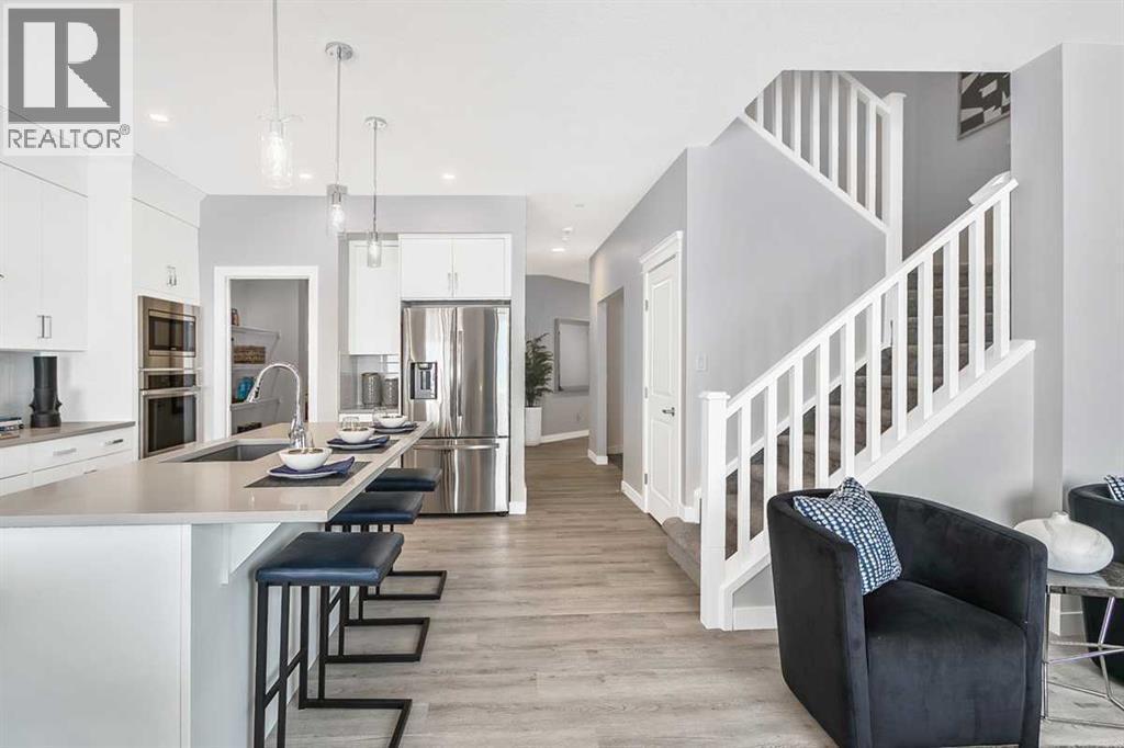 Welcome to your new home in one of Calgary's newest and most accessible communities - Hotchkiss. This beautifully designed 2040 SF home with a double car front attached garage and rear deck offers the perfect balance of comfort, style, and convenience—a short 5 minute drive to Seton amenities and quick access to Stoney and Deerfoot Trail. Step inside to find an open-concept floor plan filled with natural light, high ceilings, and modern finishes throughout. The spacious main floor features a large flex room suitable for a home office, and flows seamlessly into a gourmet kitchen complete with upgraded Samsung stainless steel appliances, quartz countertops, and a generous island—perfect for entertaining or casual meals. Upstairs, the primary bedroom is your personal retreat with large windows, a WIC and ensuite. Two extra bedrooms and a spacious bonus room provide ample space for entertaining, as well as comfortable accommodations for family and guests. (id:6769