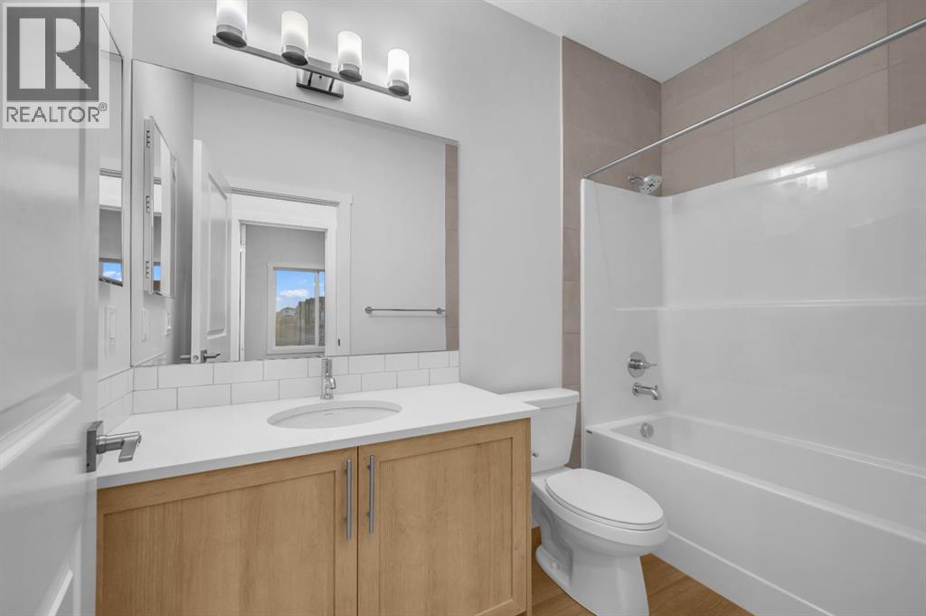 Welcome to this beautiful brand-new 2-storey detached home with a double front-attached garage, located in the fast-growing and highly desirable community of Homestead NE Calgary. Thoughtfully designed for modern family living, this home offers a total of 5 bedrooms and 3 full bathrooms across a bright, functional layout with high-end finishes and thoughtful upgrades throughout. As you enter, you’re greeted by a welcoming mudroom with closet space, leading into an open-concept main floor featuring a spacious living area, a contemporary kitchen with stainless steel appliances, sleek cabinetry, and a large pantry, and a dining area perfect for family gatherings or entertaining guests. Two good-sized bedrooms and a full 4-piece bathroom on this level provide excellent flexibility — ideal for guests, extended family, or even a home office. Upstairs, retreat to your private primary suite, complete with a large walk-in closet, and a luxurious 5-piece ensuite bathroom. Conveniently located laundry on the upper level adds ease and functionality to your daily routine. The fully finished basement comes with a separate side entrance and features a large family/living room, 2 additional bedrooms, a 4-piece bathroom, and a third den that can easily be converted into another bedroom. The layout is perfect for a future LEGAL secondary suite (subject to City of Calgary approval), offering excellent rental income potential or extra space for your growing family. Situated in a prime location with easy access to Stoney Trail, McKnight Blvd, 80 Ave NE (future transit), Airport Trail, and Country Hills Blvd, this community offers unmatched convenience. Homestead is also close to future schools, parks, shopping, and local amenities — including a newly operational strip mall with Esso and more coming soon. Whether you plan to live up and rent down or enjoy the entire home for yourself, this property delivers versatility, comfort, and incredible value in one of Calgary’s most promising new neighborhoods. (id:6769