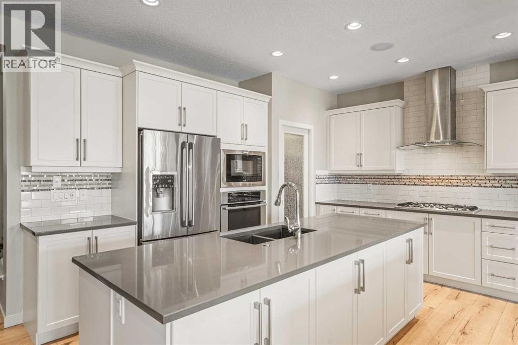 Welcome to 220 Auburn Meadows Crescent, a beautifully curated home that blends timeless design, everyday function, and a coveted location in the heart of Auburn Bay.Offering more than 2,500 square feet of refined living space, this three-bedroom, two-and-a-half-bathroom home captures the essence of comfortable luxury. Set on a peaceful street with no rear neighbours and backing directly onto Prince of Peace School and a quiet walking path, it offers the perfect balance of privacy, convenience, and community connection.Step inside and feel an immediate sense of calm. Wide-plank laminate flooring flows throughout the main level, setting a warm, contemporary tone. The kitchen anchors the home with dual quartz islands, built-in stainless-steel appliances, and generous storage. It is a space designed as much for conversation as for cooking. The open living and dining areas invite gathering, centered around a gas fireplace and a built-in stereo system that enhances every moment, whether it is a quiet evening in or a lively dinner with friends.From the dining area, step out onto your spacious deck and then down to the beautiful stamped-concrete patio, surrounded by thoughtfully landscaped gardens. This serene outdoor retreat extends your living space and offers a seamless connection to the greenspace beyond. Whether you’re enjoying your morning coffee or hosting an evening under the stars, it’s a setting designed for both relaxation and connection.Upstairs, a bright and spacious bonus room provides a versatile retreat for work or play. The primary suite feels like a private sanctuary with dual walk-in closets and a spa-inspired ensuite featuring quartz-topped double vanities and a deep soaker tub. Two additional bedrooms share a beautifully designed bathroom with double sinks and a separate shower and toilet area, offering both function and privacy for family or guests. Upper-level laundry completes the space, ensuring that practicality meets elegance at every turn .Additional highlights include central air conditioning, a double attached garage, and an unspoiled basement ready to be finished to your taste. Whether you envision a gym, media room, or guest suite, the possibilities are endless.Life in Auburn Bay means more than just a home. It is a lifestyle. Enjoy year-round lake access, parks and pathways, schools, boutique shops, restaurants, and the nearby South Health Campus.This is a home that truly has it all. Elevated design, thoughtful layout, and an irreplaceable location within one of Calgary’s most vibrant lake communities.Welcome home. (id:6769