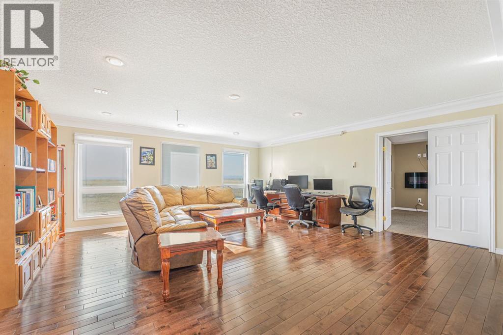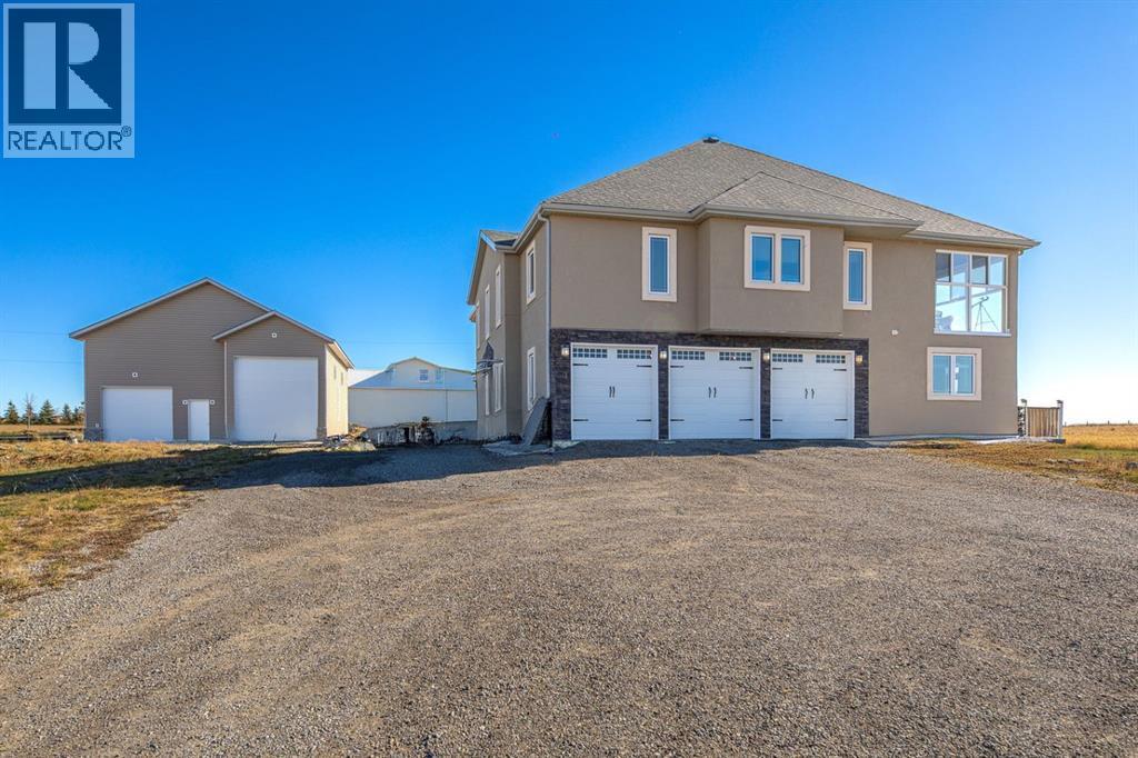 Stunning 18-Acre Estate with Panoramic Mountain Views, Geothermal Heating & Executive WorkshopWelcome to an extraordinary country retreat just minutes south of Okotoks and a short drive to Calgary — a one-of-a-kind residence combining cutting-edge construction, elegant design, and breathtaking mountain vistas. Set on 18 serene acres along Clear Mountain Drive, this grand home showcases superior energy efficiency, exceptional craftsmanship, and room to live, work, and play.Impeccable Construction & Design.Built to impress, the home features ICF (Insulated Concrete Form) basement walls and SIP (Structural Insulated Panel) construction on the first and second floors, ensuring remarkable strength and energy efficiency. Triple-pane windows throughout the home enhance comfort and quiet. Inside, enjoy 10-foot ceilings in the grand room, 9-foot ceilings throughout the main level, and elegant coved ceilings on every floor, including the dining room and office.Elegant InteriorsThe main floor is graced with marble and hardwood flooring, a welcoming two-storey vaulted foyer, and a sunken living room warmed by a cozy gas fireplace. The spacious dining area flows into a gourmet kitchen boasting an oversized island with built-in beverage cooler, double built-in ovens, a gas cooktop, elegant crown moulding, and abundant cabinetry. A main-floor office provides an ideal workspace.Luxurious Upper LevelUpstairs, a bright and generous loft offers a retractable screen for a home theatre. The primary suite includes a four-piece ensuite bath, walk-in closet, and a private enclosed balcony framing panoramic mountain views. Two additional bedrooms share a Jack-and-Jill bath, and a convenient upper-floor laundry completes the level.Expansive Lower LevelThe basement includes a second kitchen, two more bedrooms, a finished gym, storage area, and a poured, partially completed indoor swimming pool, awaiting your finishing touches. A sprinkler system is roughed in on all levels for added peace of mind.Exceptional Energy EfficiencyThe entire home is heated and cooled by a 6-ton geothermal energy system, offering environmentally friendly comfort year-round.Triple Garage (suspended, with pool underneath) & Professional Workshop in a separate buildingFor the hobbyist or business owner, a 1,500 sq. ft. shop awaits — large enough to accommodate a 40-foot RV. Also has a mezzanine level. Ready for power and water hookups.Country Living, City ConvenienceEnjoy the best of both worlds — country privacy and space paired with city proximity. Whether you envision a country estate, family compound, or simply room to breathe, this property offers endless potential. (id:6769