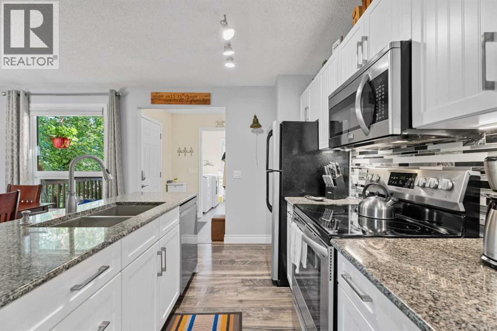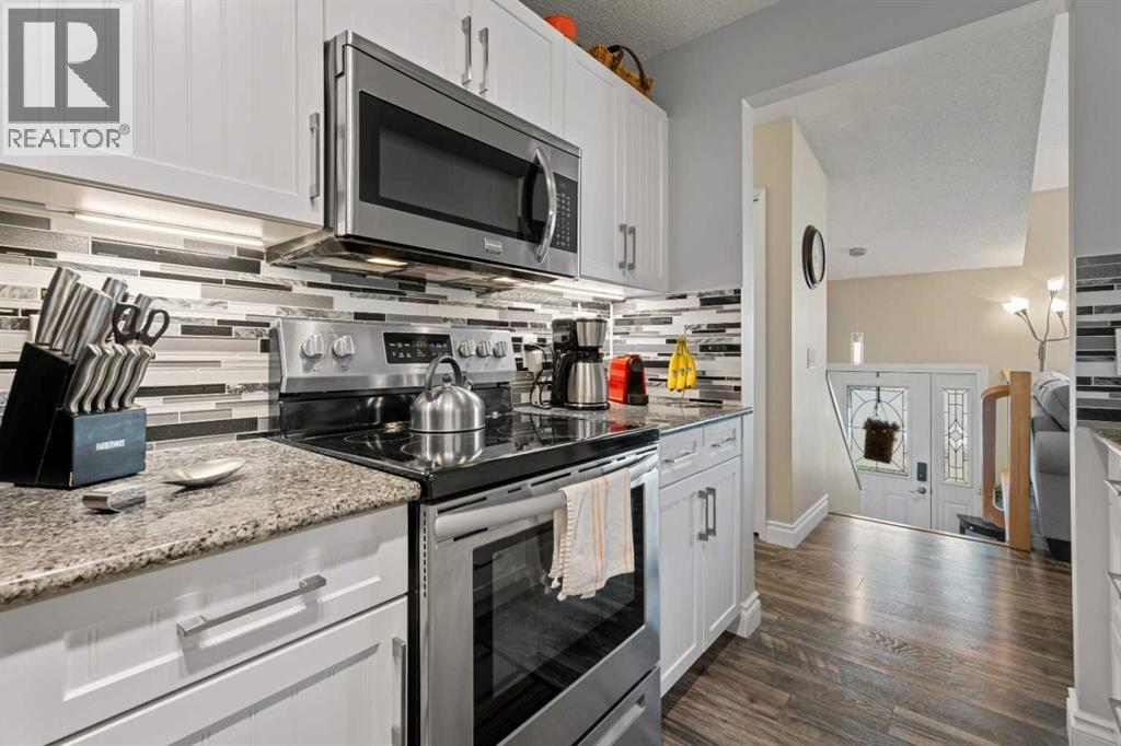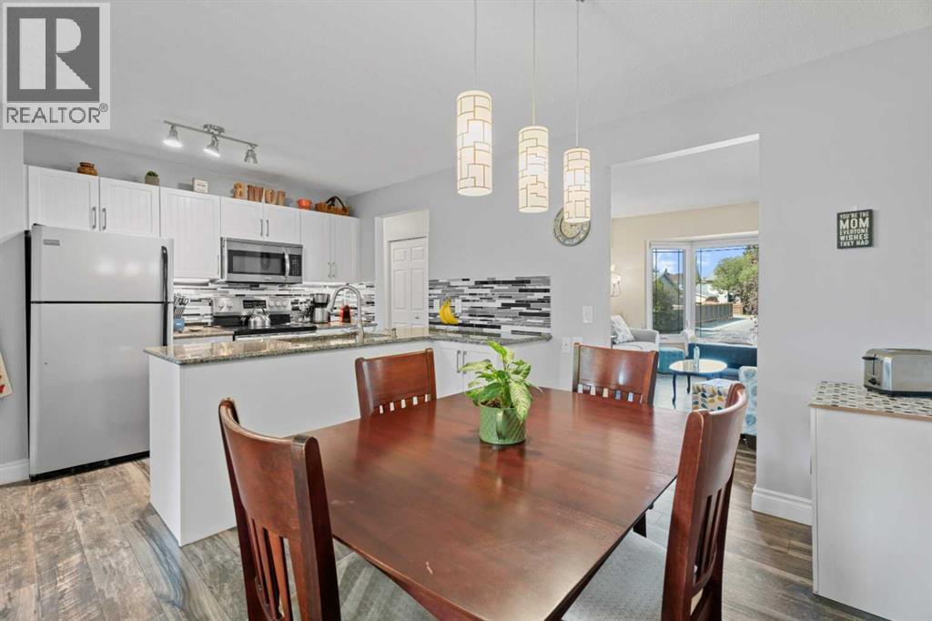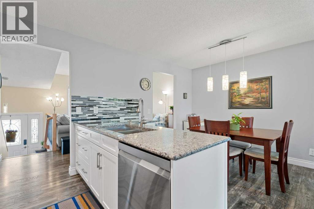 Nestled in the heart of the mature community of Meadowbrook, this beautifully maintained 5-bedroom, 2-bathroom bi-level offers a perfect blend of timeless charm and modern updates. Situated on a generous lot rarely found in newer communities, this home is ideal for families seeking space, comfort, and convenience. Step inside and be greeted by vaulted ceilings and a bright, open living room – perfect for both entertaining and everyday living. The renovated kitchen (2016) features granite countertops, timeless cabinetry, stainless steel appliances (2019), and a cozy dining nook that flows seamlessly into the living area. The main level offers three spacious bedrooms, an updated 4-piece bathroom (2017), and a convenient laundry/mudroom off the rear entrance after parking in the oversized 2-car garage – perfect for busy family life. Downstairs, you'll find large windows that flood the space with natural light, making the lower level feel warm and inviting. This level includes a spacious family room, two more bedrooms, and a second full bathroom – ideal for guests, teenagers, or a home office setup. Notable Updates Include: roof, siding, and exterior (2014), full kitchen renovation (2016), Upstairs bathroom (2017), Front and back doors, dining area window (2017), deck (2018), laminate flooring (2018), appliances (2019), washer & dryer (2021), and all basement windows (2022). Enjoy the tranquility of nature-filled walking paths, proximity to schools (R.J. Hawkey Elementary, Meadowbrook Middle, Bert Church High School), and quick access to Genesis Place, hockey arenas, East Lake Blvd, Yankee Valley Blvd, and Highway 2 – making this a dream location for commuters and active families alike. Don’t miss your chance to own this turn-key home in one of Airdrie’s best-established neighborhoods – homes like this don’t come up often! (id:6769